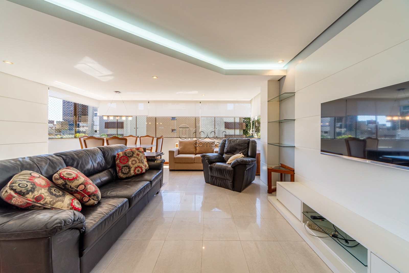 A área social conta com living amplo para dois ambientes, com janelões em toda a extensão que garantem excelente ventilação e iluminação natural. Possui cozinha planejada, área de serviço separada, banheiro social e espera para churrasqueira e Lareira