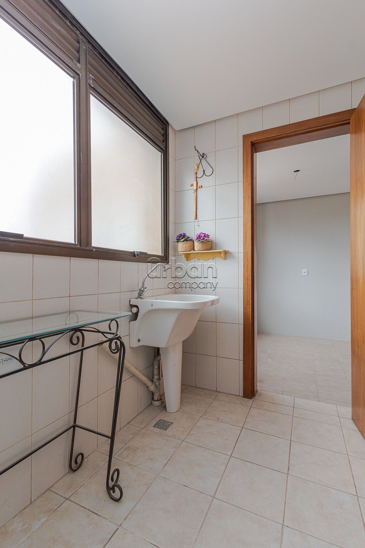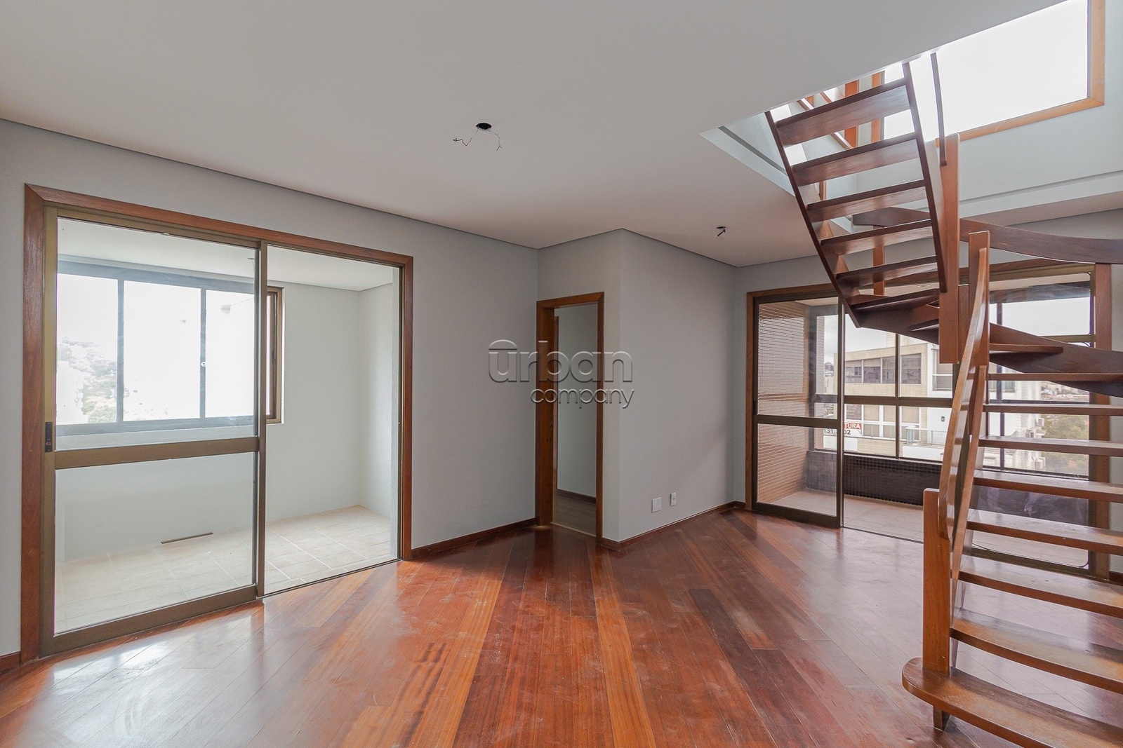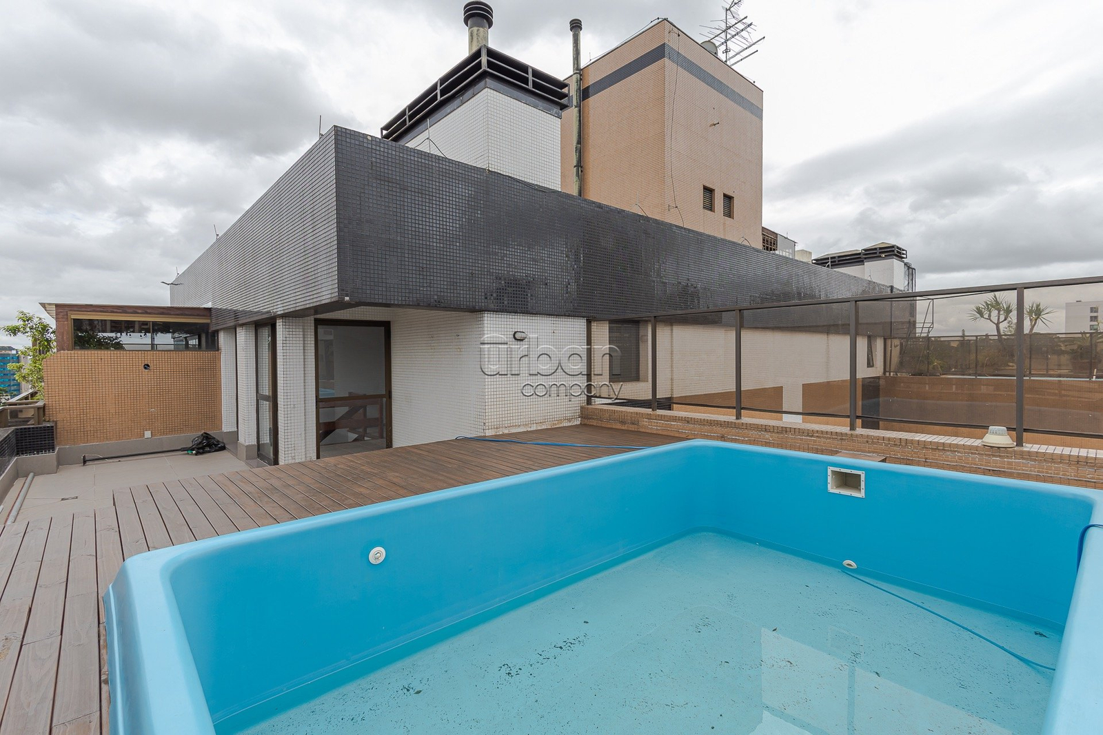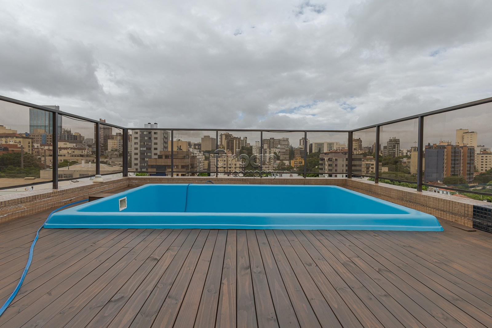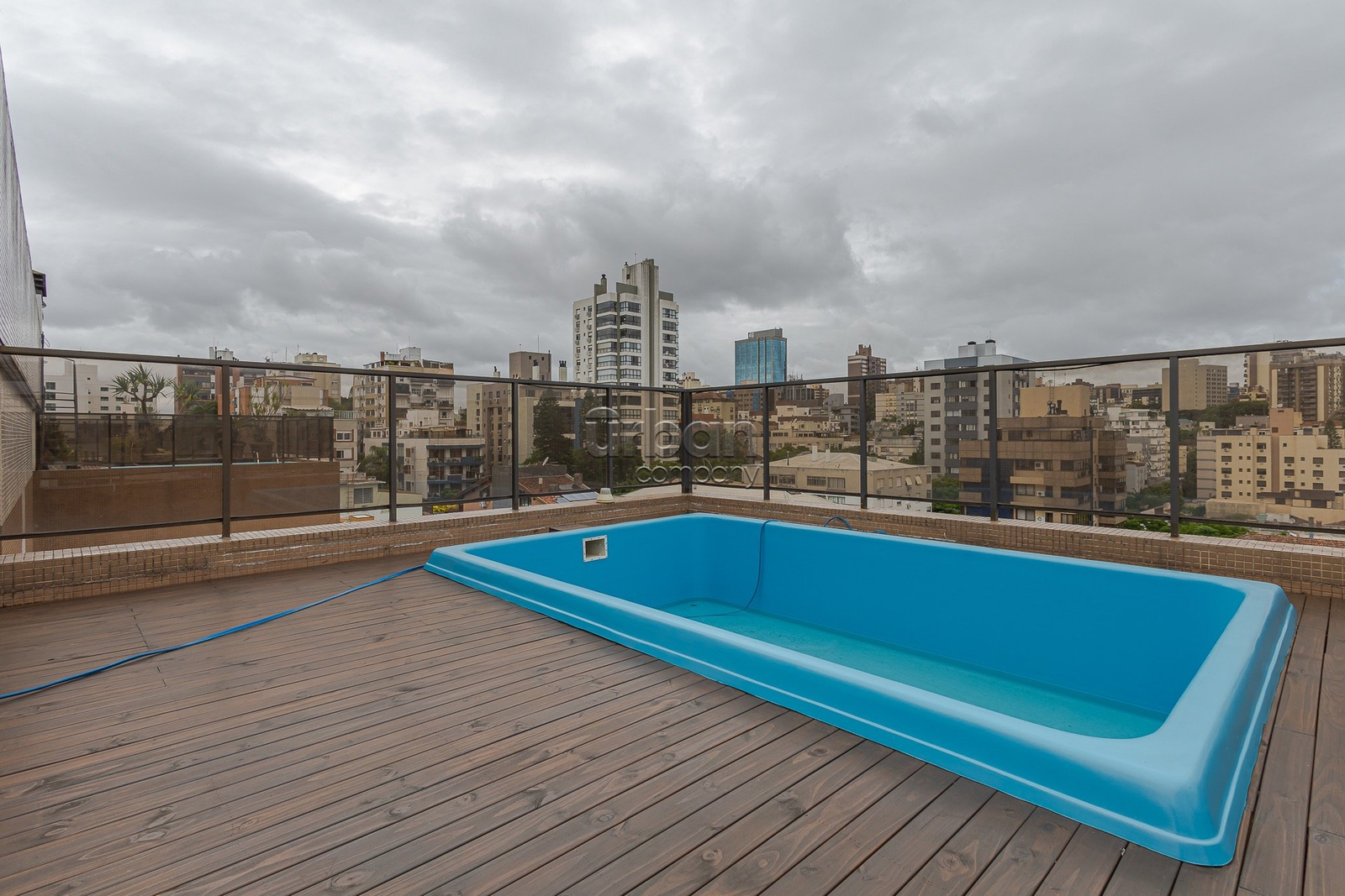 No pavimento superior, conta com amplo terraço com piscina privativa, além de um excelente espaço gourmet com churrasqueira, espaço ideal para confraternizar com família e amigos. Amplo living no pavimento superior com lareira. Conta com quatro banheiros ao total, distribuídos entre a suíte, banheiro social, de serviço e lavabo na cobertura.
