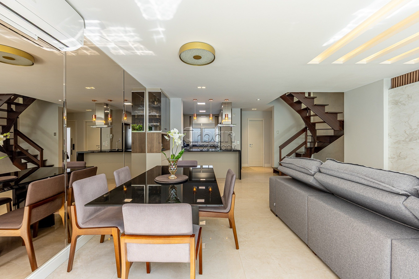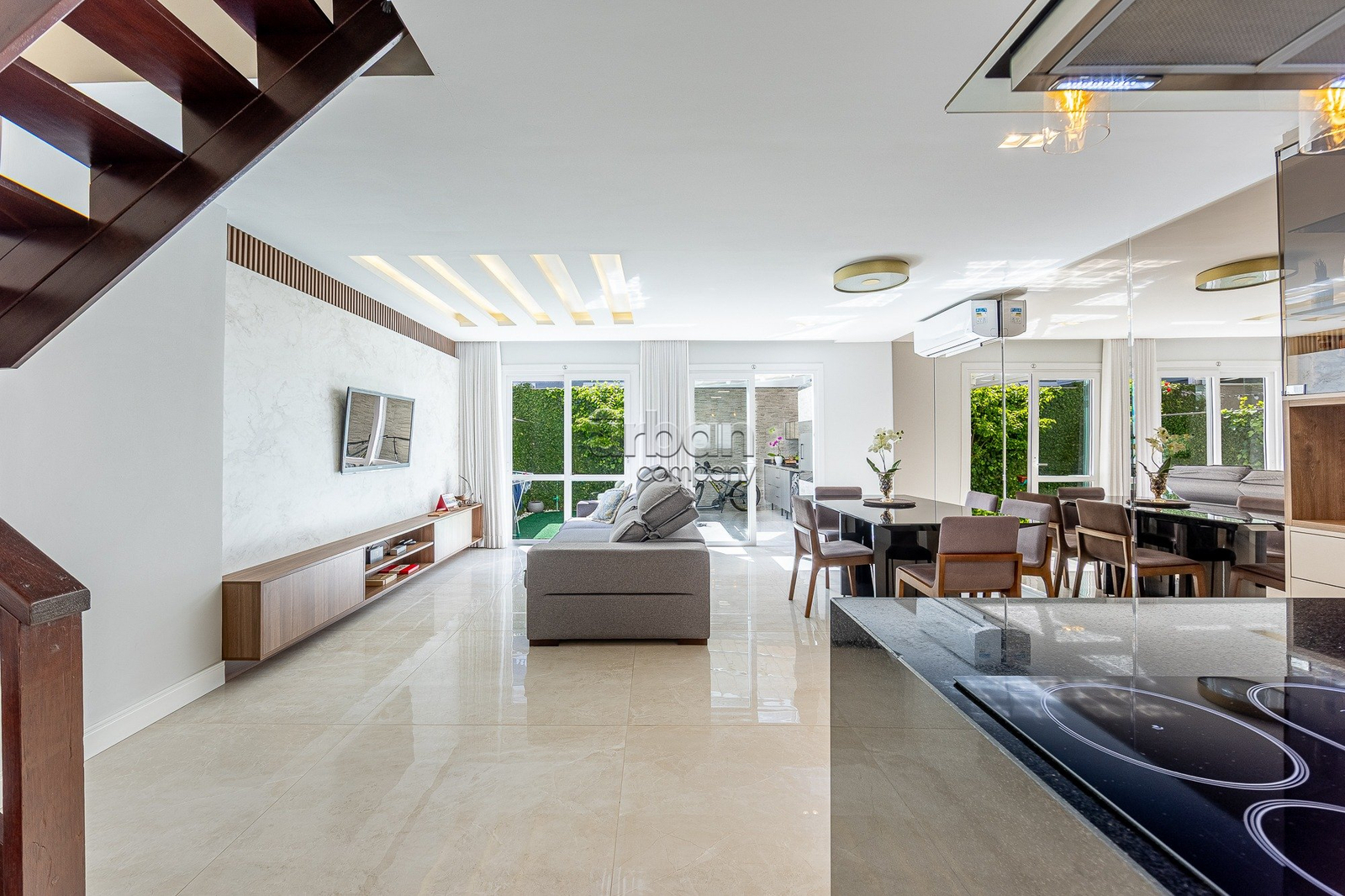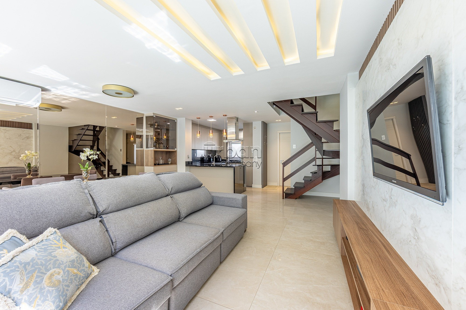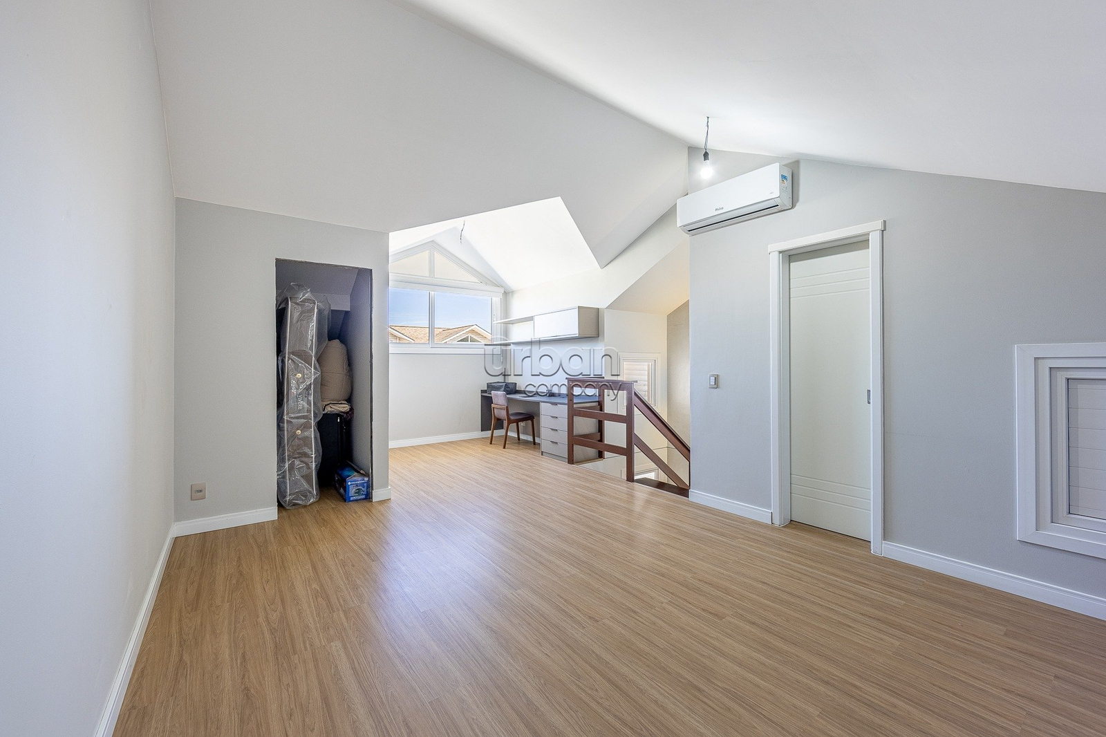 No segundo pavimento, estão três suítes com móveis sob medida e bem iluminadas. Já o sótão oferece um espaço multiuso versátil, que pode ser adaptado como quarta suíte, escritório ou brinquedoteca, além de contar com banheiro e dois depósitos, proporcionando ainda mais funcionalidade. A casa dispõe de duas vagas de garagem e está totalmente climatizada, com cinco aparelhos de ar-condicionado tipo split instalados.
