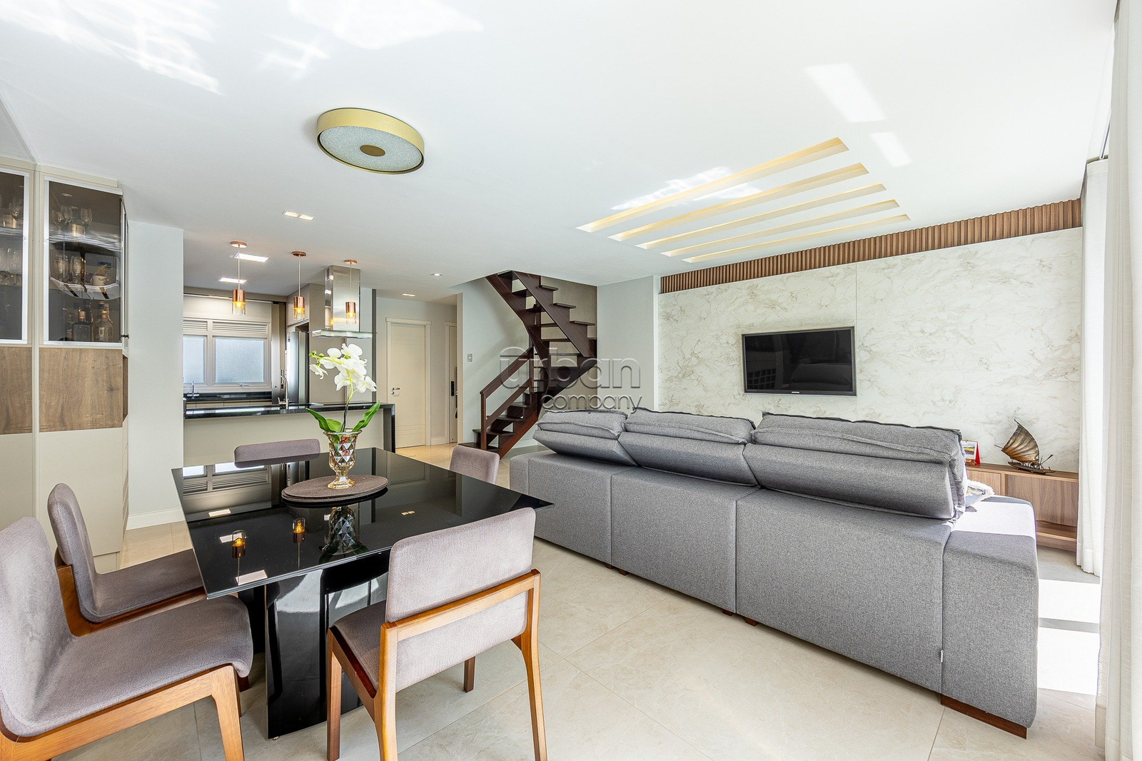 Casa elegante e acolhedora, distribuída em três pavimentos que aliam conforto, praticidade e bom gosto. No térreo, um amplo living para dois ambientes integra-se à cozinha sob medida, equipada com forno e micro-ondas embutidos, criando um espaço perfeito para receber. O ambiente conta ainda com lavabo, área de serviço com aquecedor de água instalado e um agradável pergolado com churrasqueira, ideal para momentos de lazer em família.