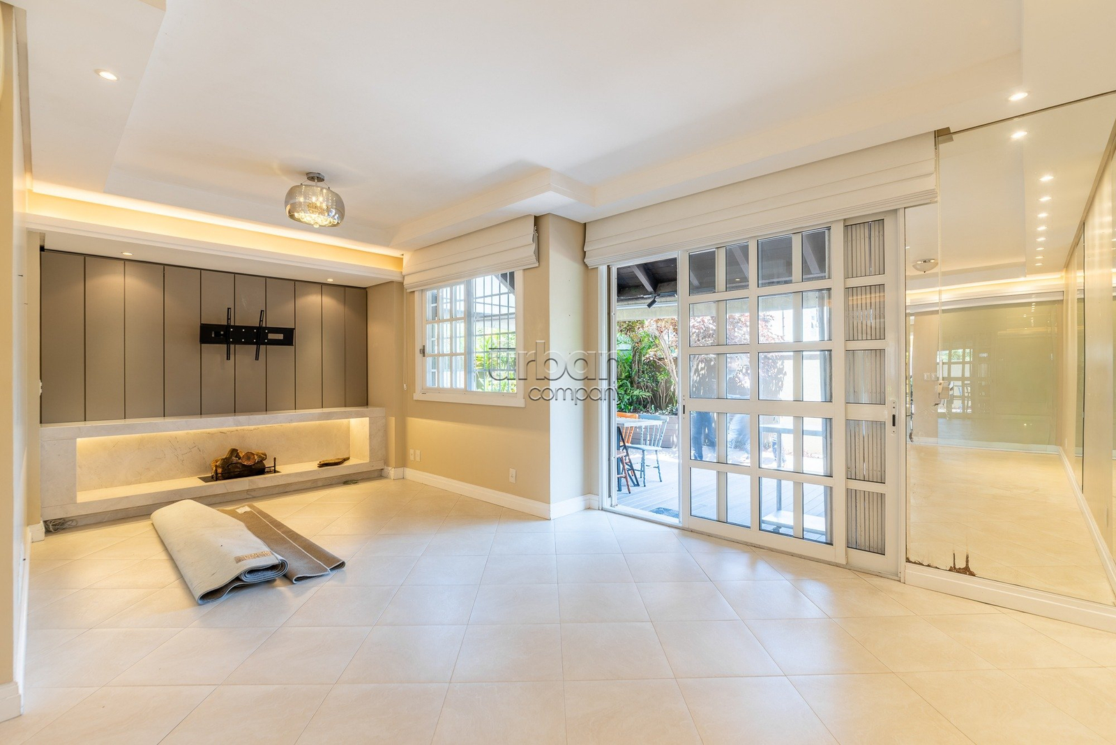 Casa em condomínio com 338 metros privativos, 3 dormitórios, 1 suite com closet, living para três ambientes com sala de estar e jantar definida, com lareira e deck com churrasqueira.