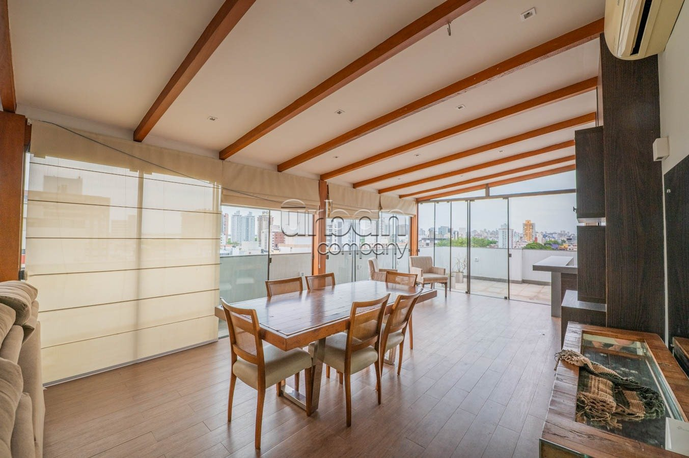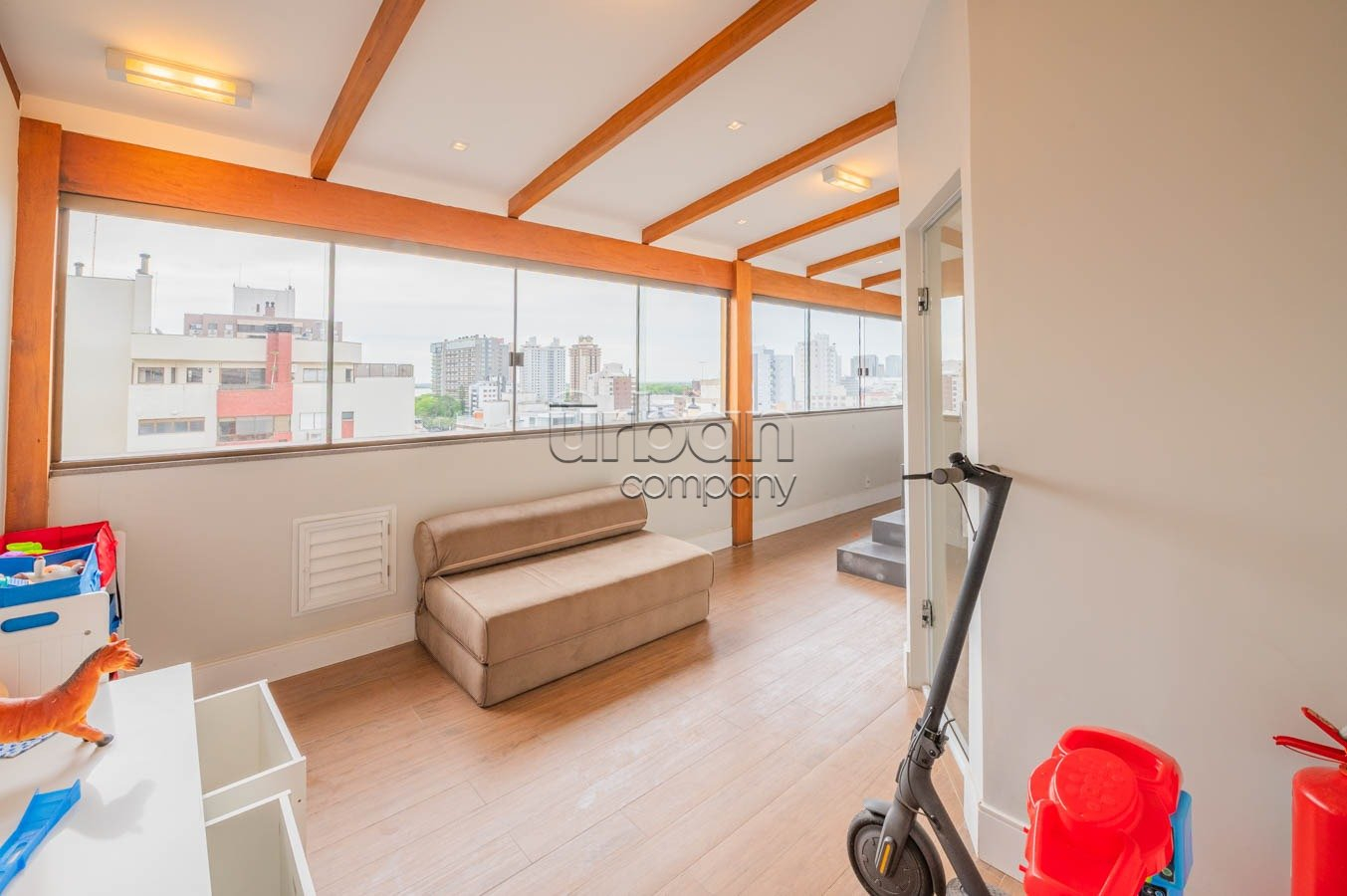 No segundo pavimento, o destaque fica para o living com lareira integrado ao espaço gourmet com churrasqueira, envidraçado e com uma vista deslumbrante para o Rio Guaíba. Há ainda lavabo, um ambiente de relaxamento com jacuzzi e sauna, além de terraço aberto. Todos os cômodos são climatizados com ar-condicionado split e o imóvel será entregue completamente mobiliado, pronto para morar.