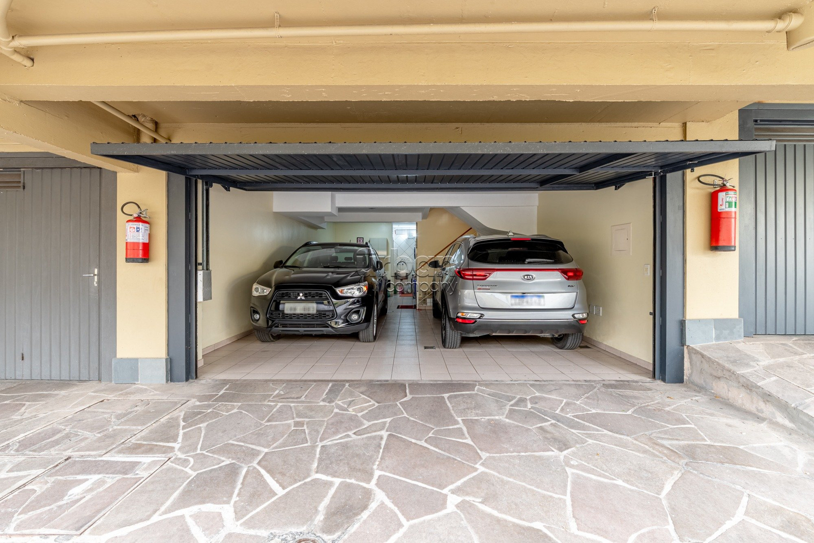 No subsolo conta com vagas que comportam até 4 carros, lavanderia, despensa e mais um banheiro