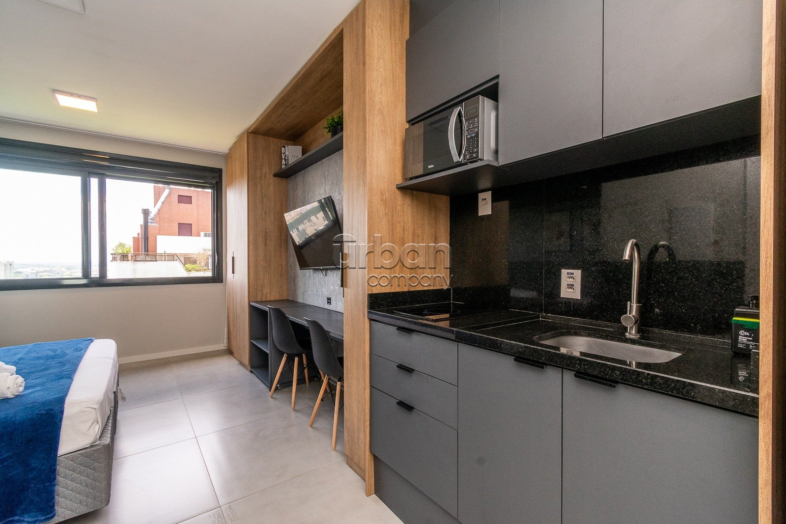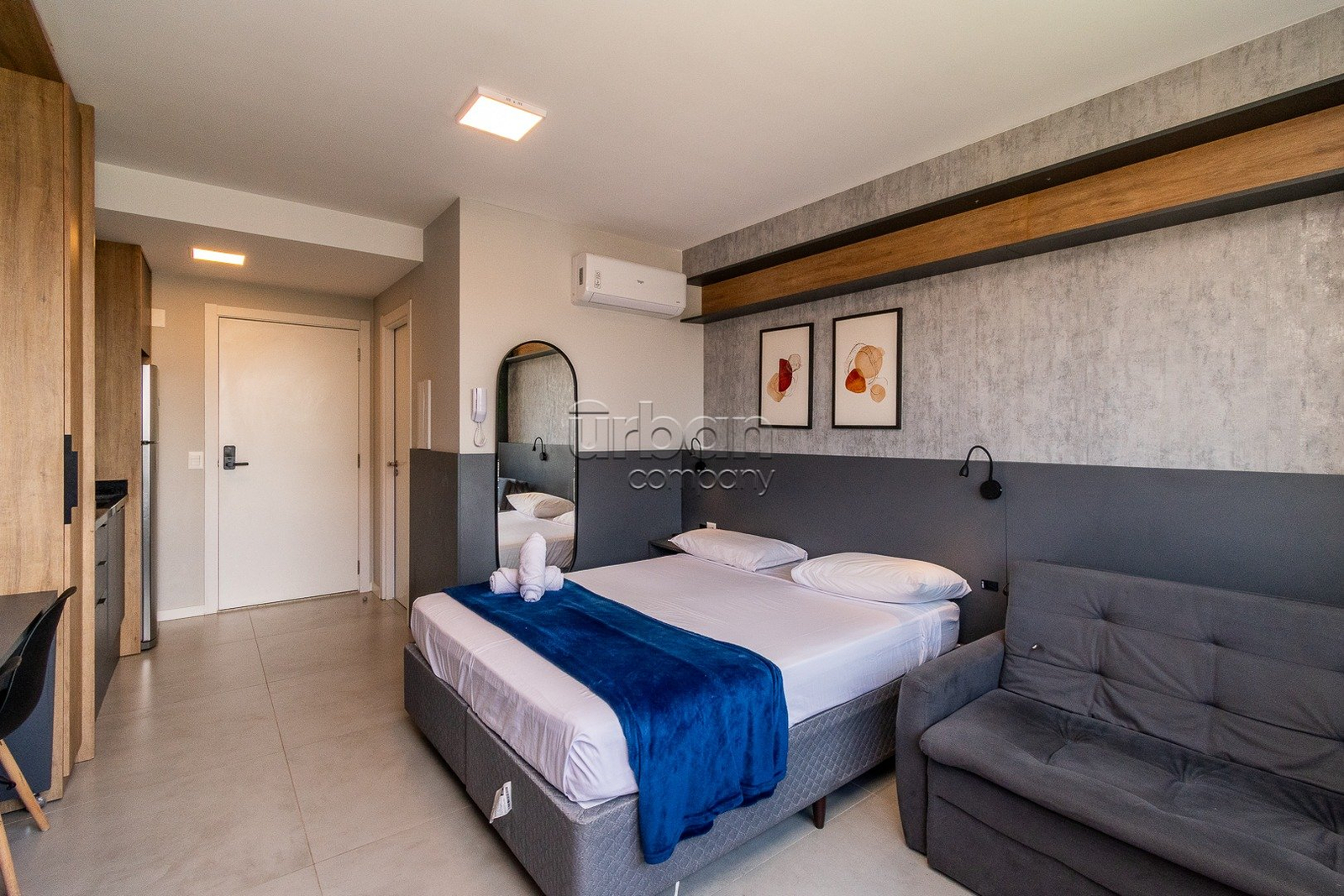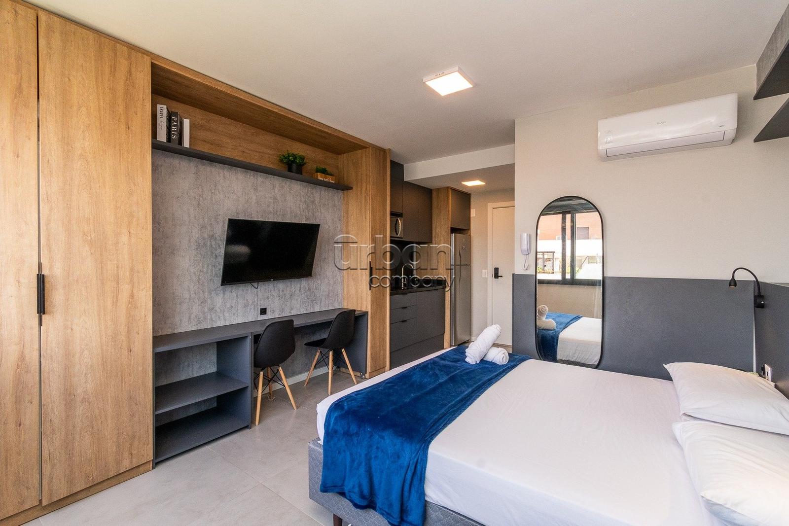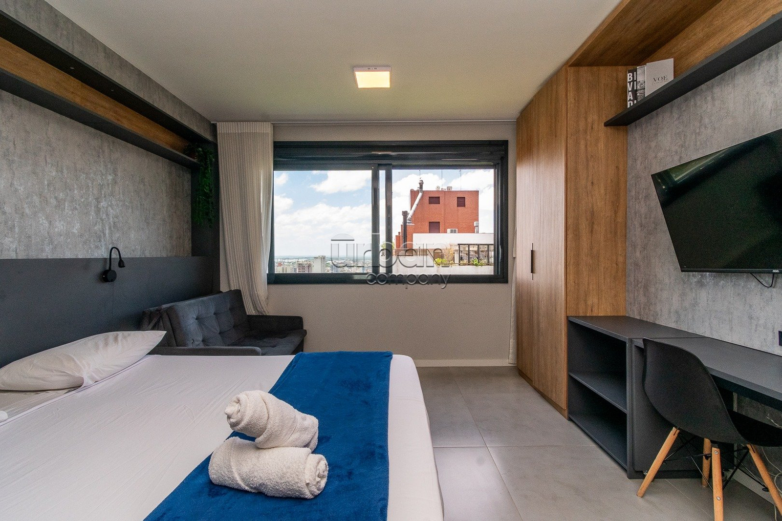 Possui 1 dormitório, 1 banheiro, 1 vaga de estacionamento, mobiliado e equipado. Perfeito para quem busca morar bem com comodidade. Prédio com elevador, churrasqueira coletiva, espaço gourmet, piscina coletiva, playground, sala fitness e salão de festas. Próximo a comércios e serviços do bairro Petrópolis. Agende sua visita!