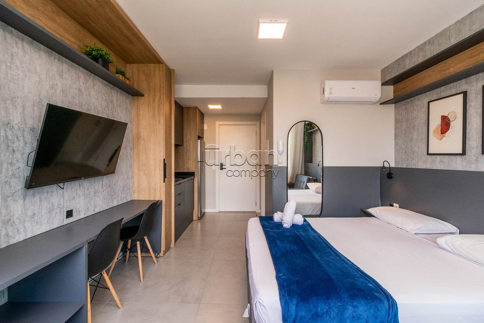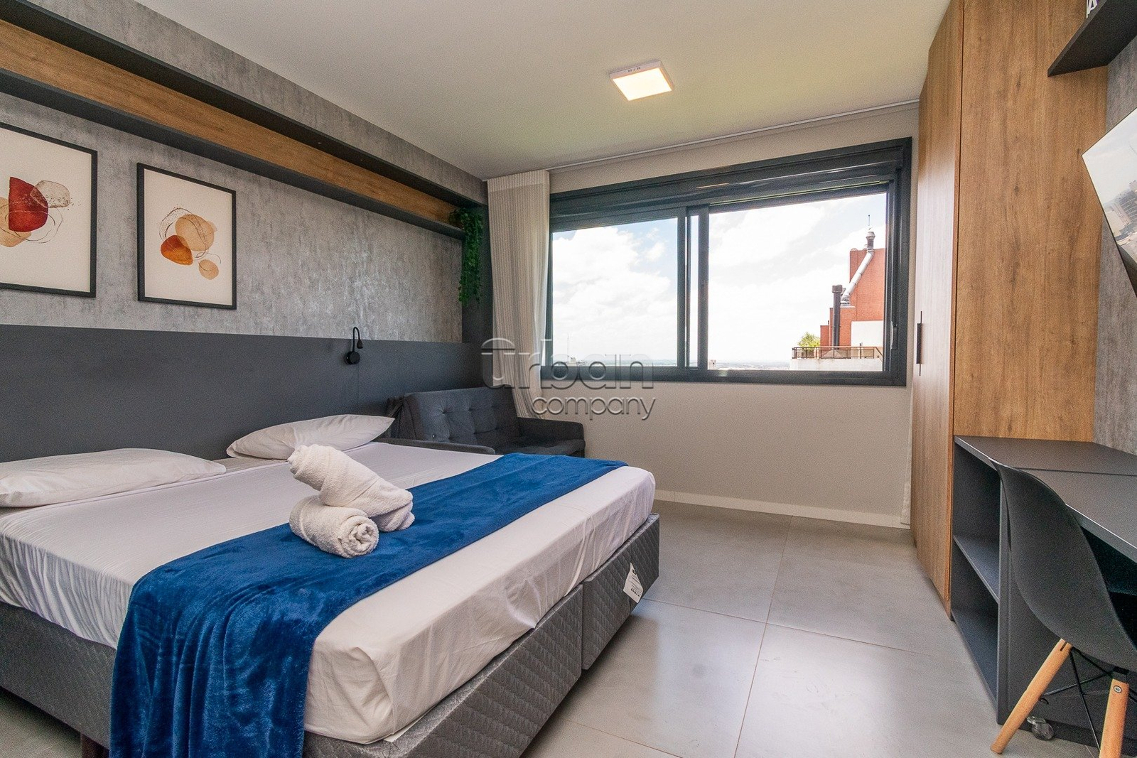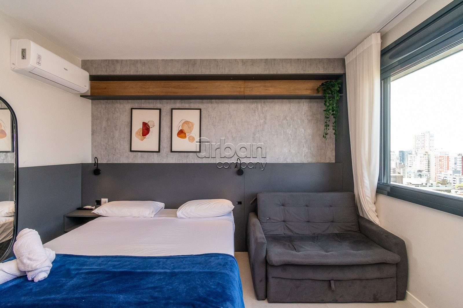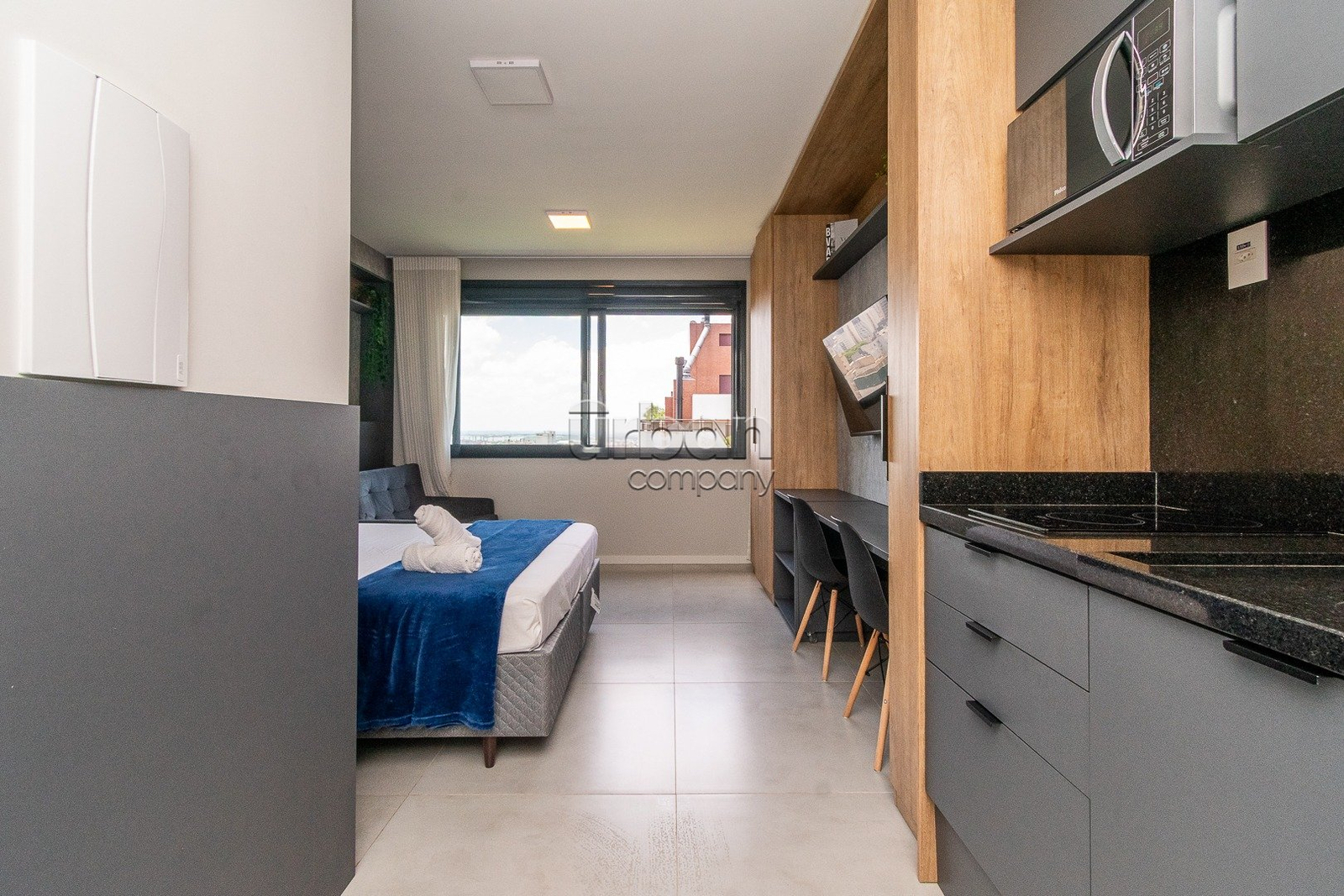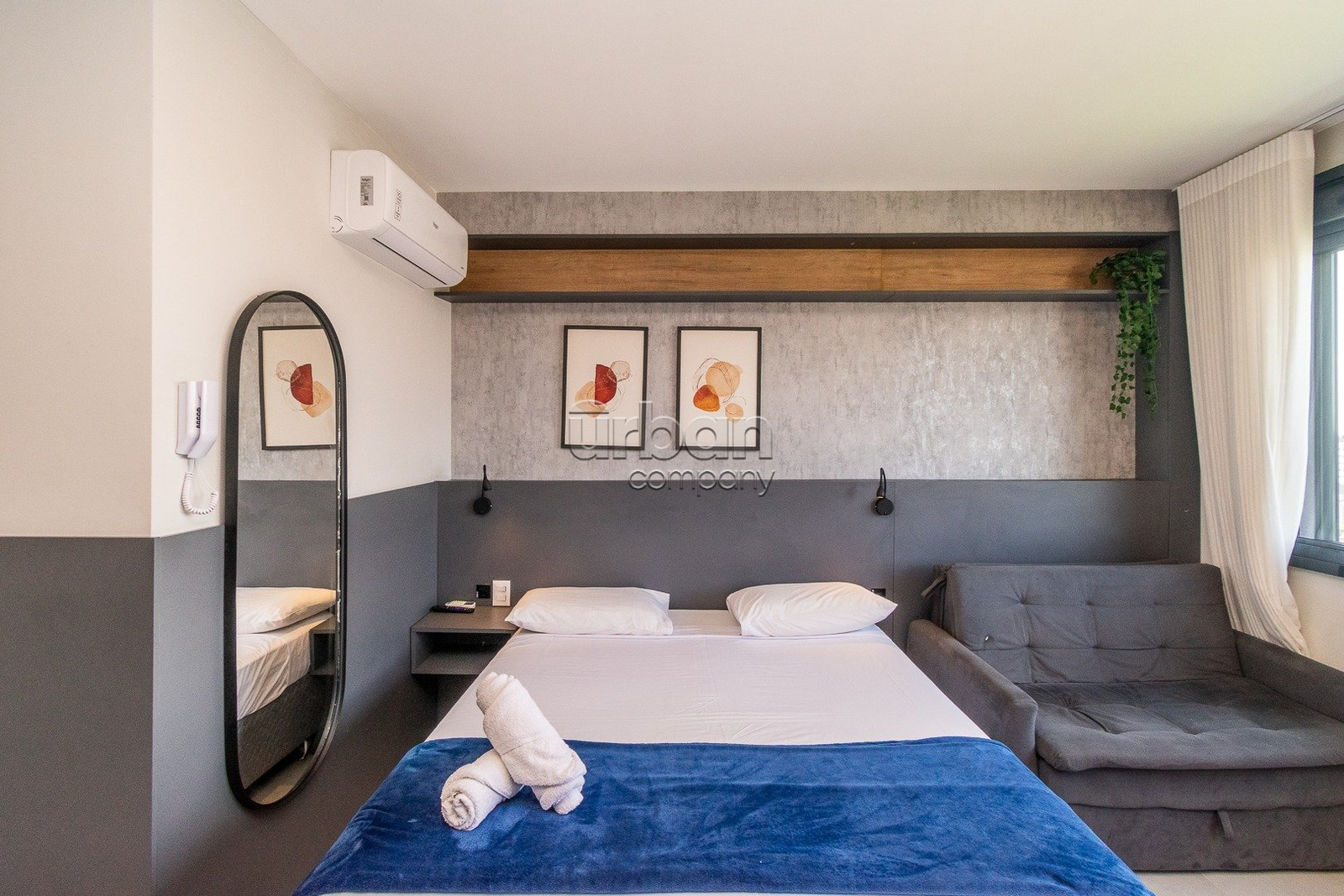 Possui 1 dormitório, 1 banheiro, 1 vaga de estacionamento, mobiliado e equipado. Perfeito para quem busca morar bem com comodidade. Prédio com elevador, churrasqueira coletiva, espaço gourmet, piscina coletiva, playground, sala fitness e salão de festas. Próximo a comércios e serviços do bairro Petrópolis. Agende sua visita!