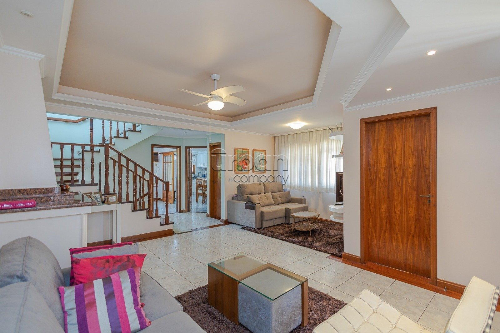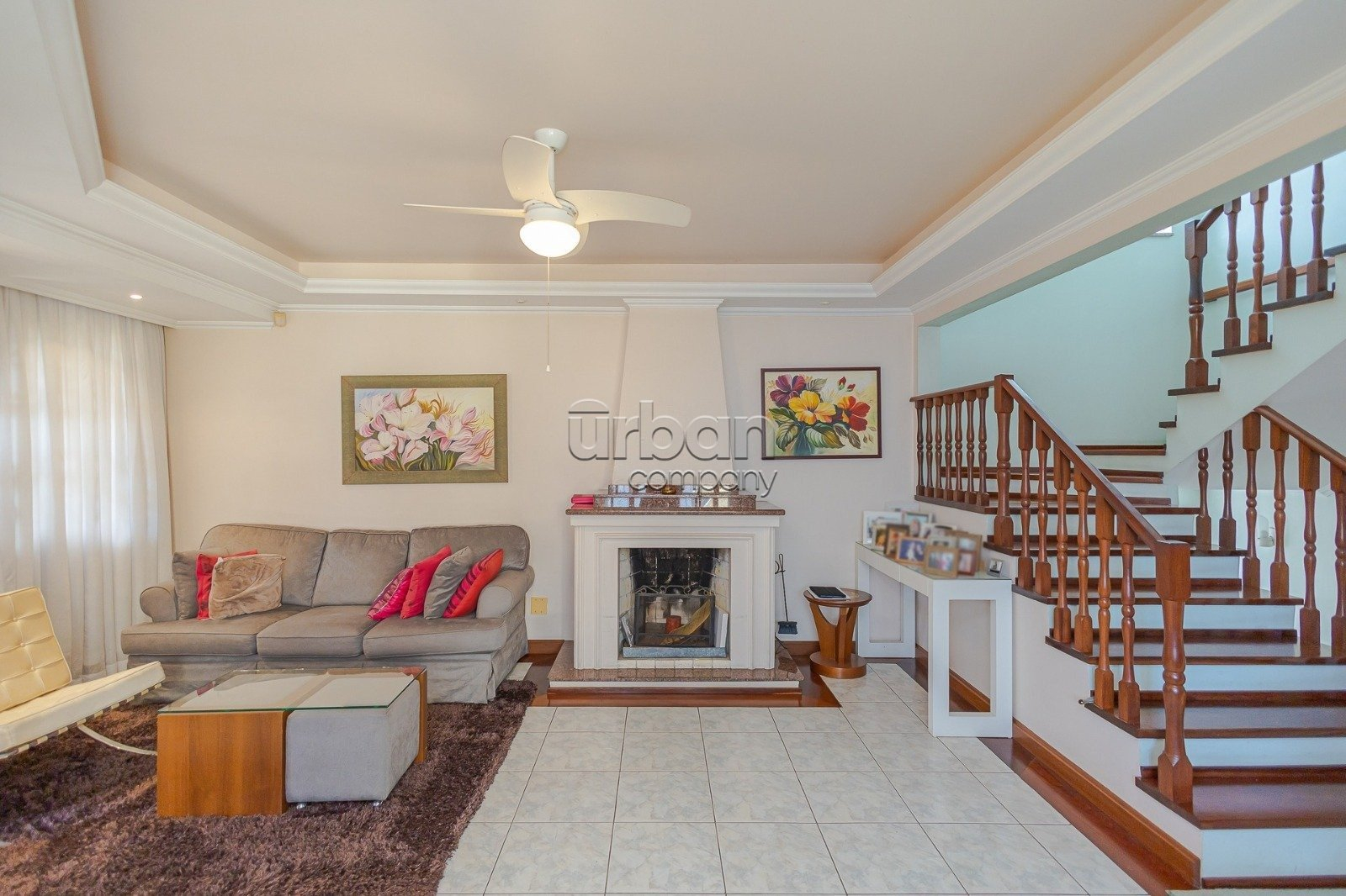 A casa conta com três dormitórios amplos, todos com sacadas e vista encantadora, incluindo uma suíte aconchegante. A sala de estar possui três ambientes bem definidos e uma charmosa lareira, perfeita para os momentos de descanso e convívio. Um gabinete amplo com vista para a rua oferece o espaço ideal para home office, garantindo tranquilidade e funcionalidade no dia a dia.