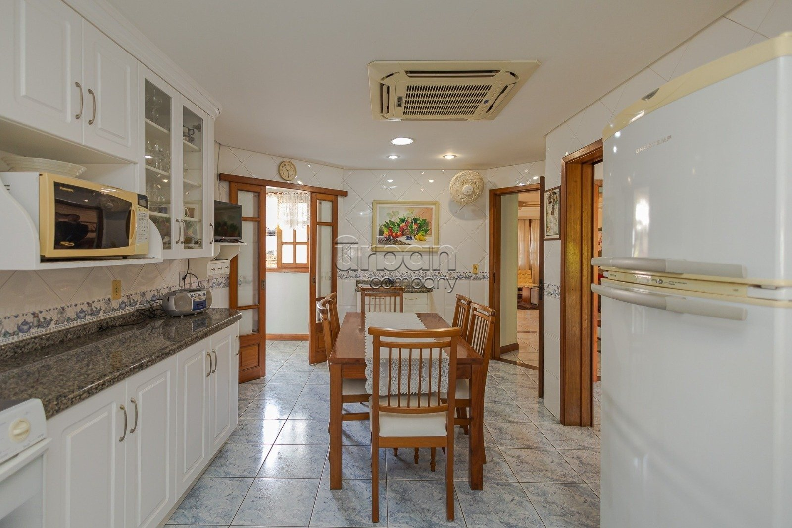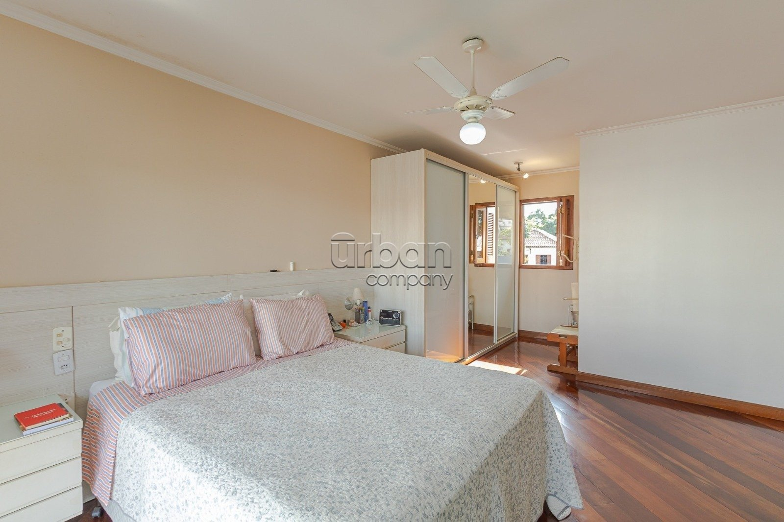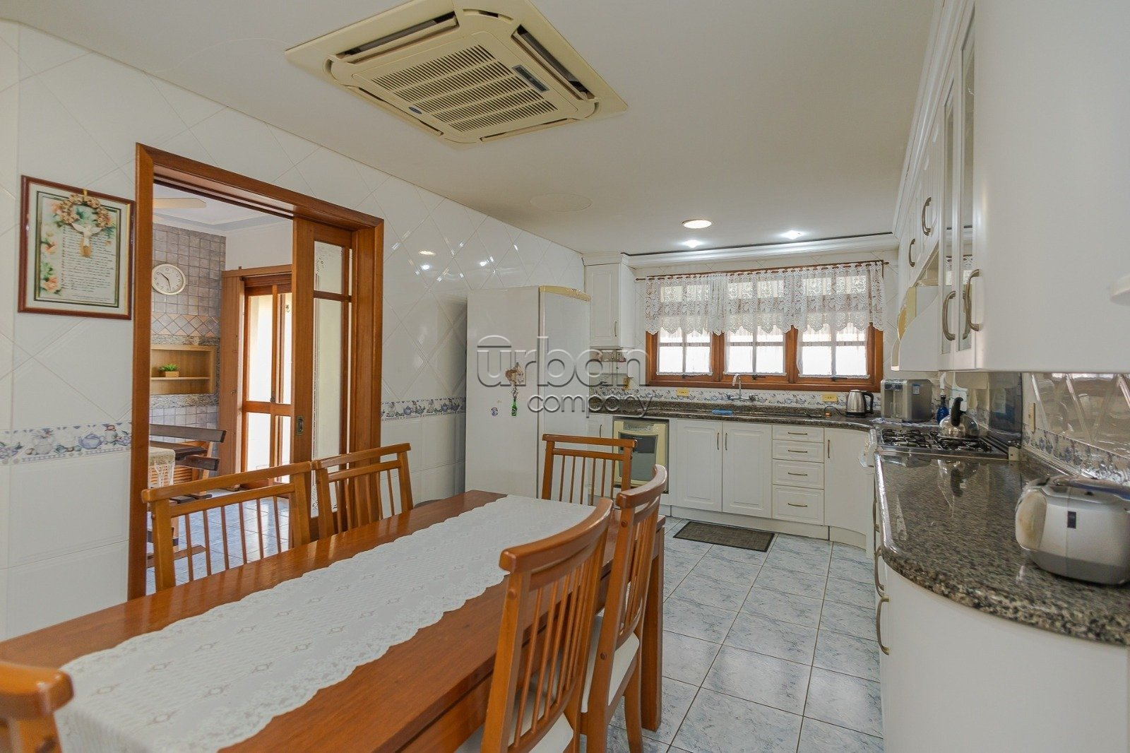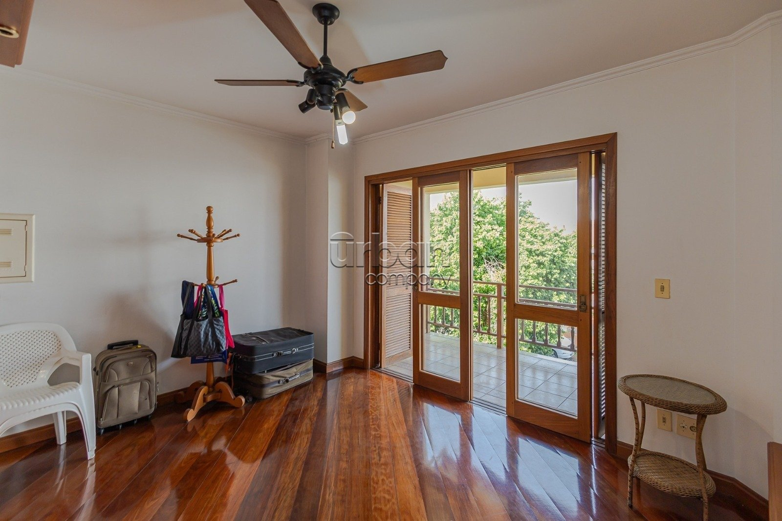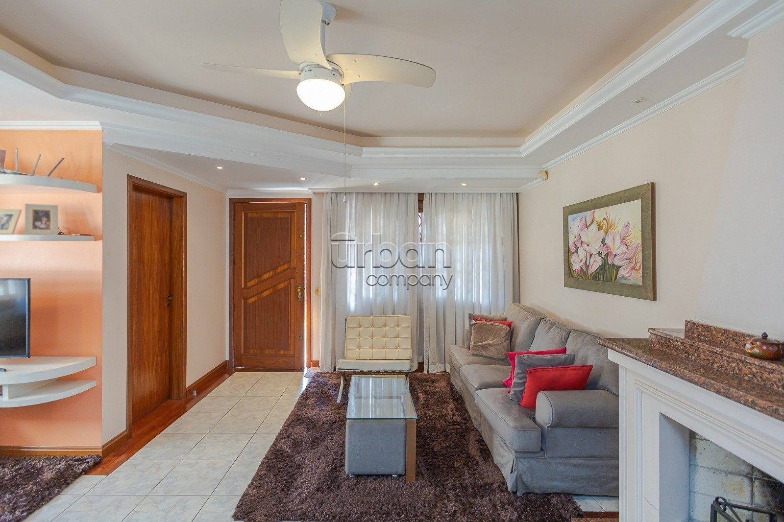 A garagem comporta até três veículos e conta com mais uma churrasqueira, com saída direta para o pátio dos fundos. O pátio, com gramado e árvores frutíferas, é perfeito para aproveitar o ar livre com total privacidade.