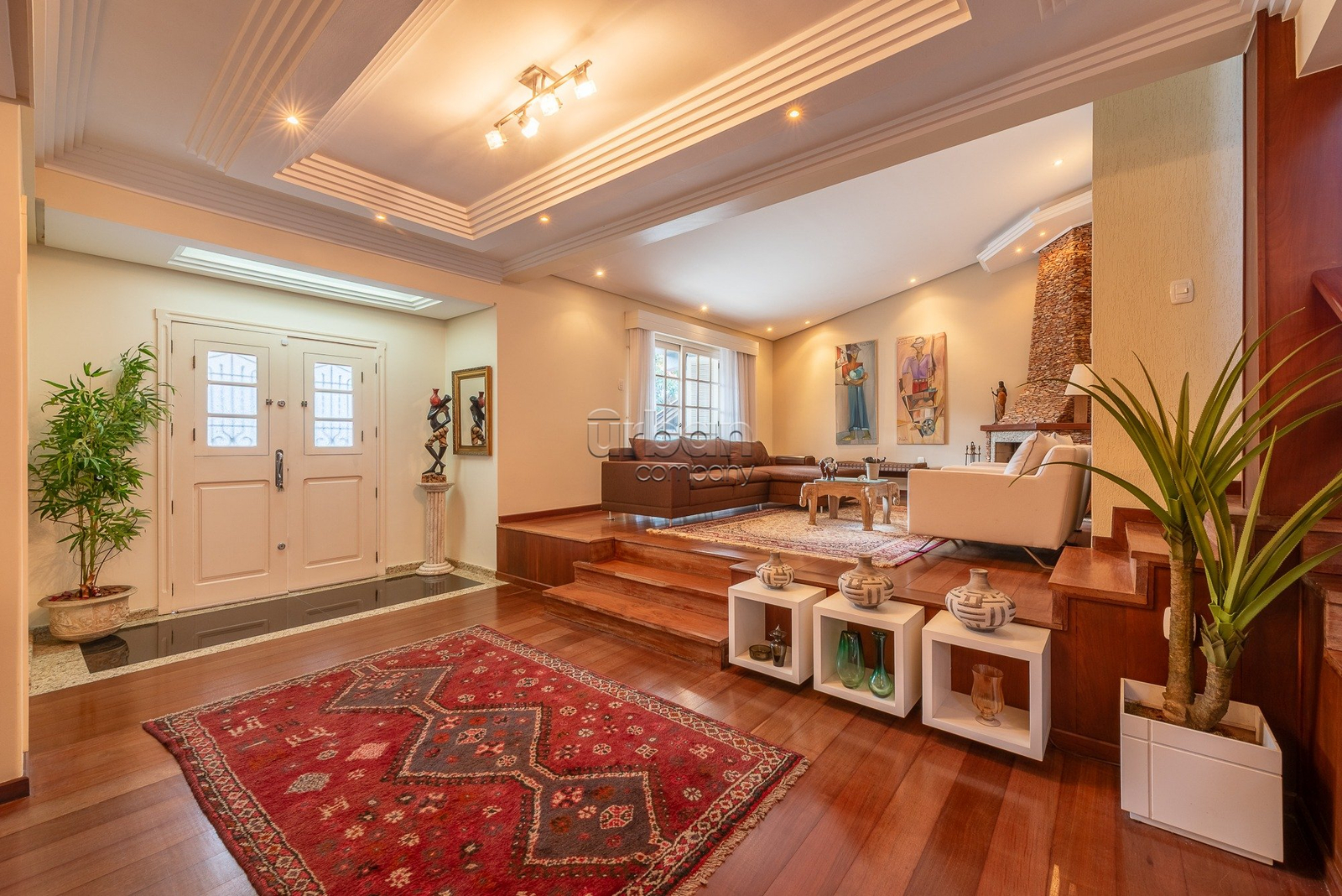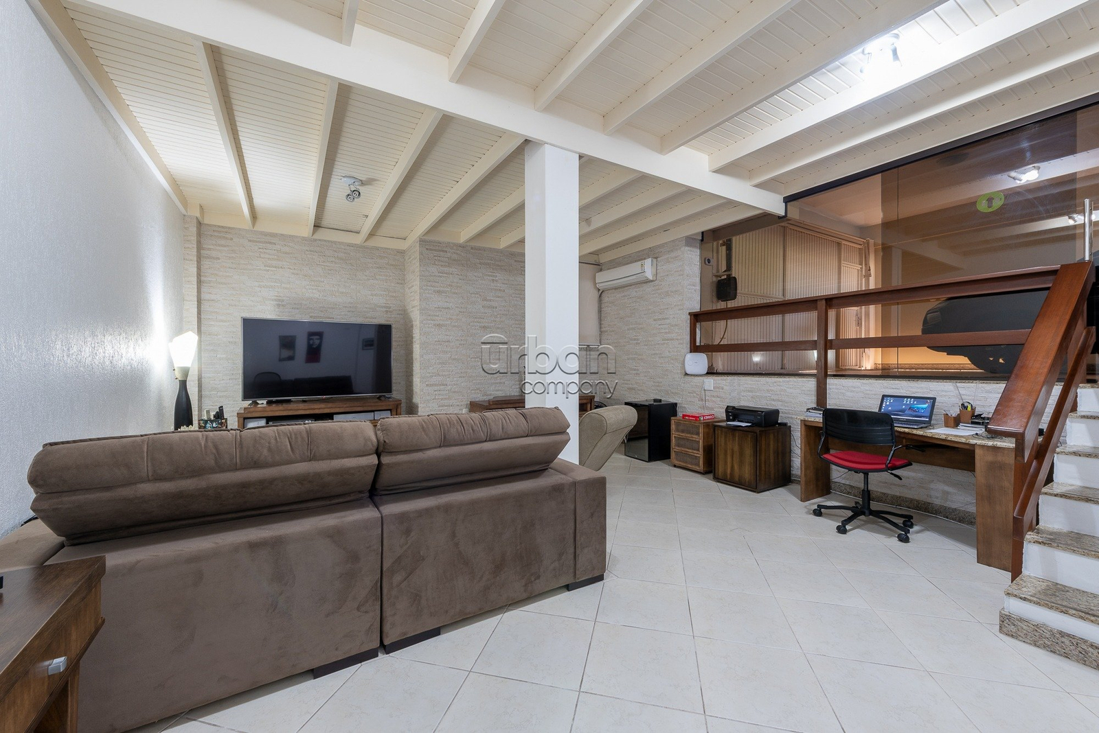 No piso térreo, conta com living para 2 ambientes, gabinete, lavabo e copa cozinha.