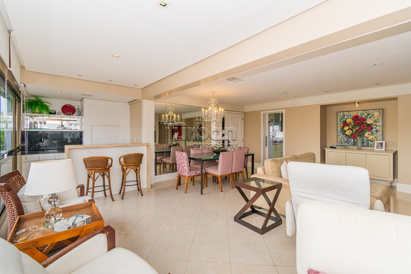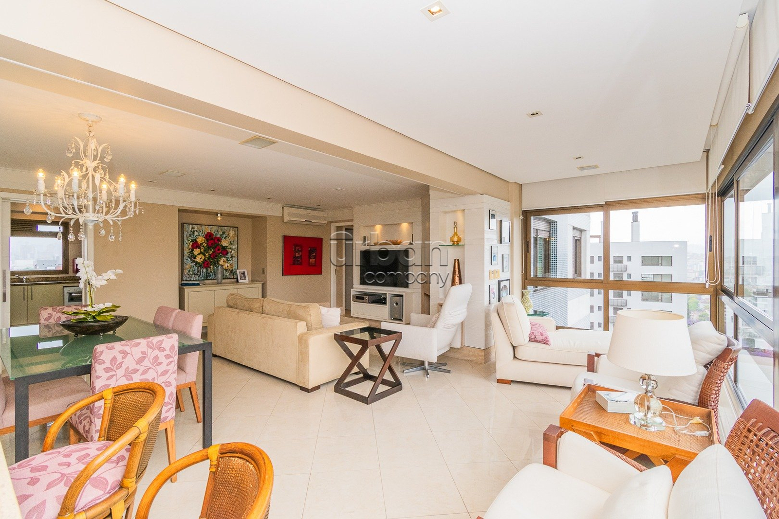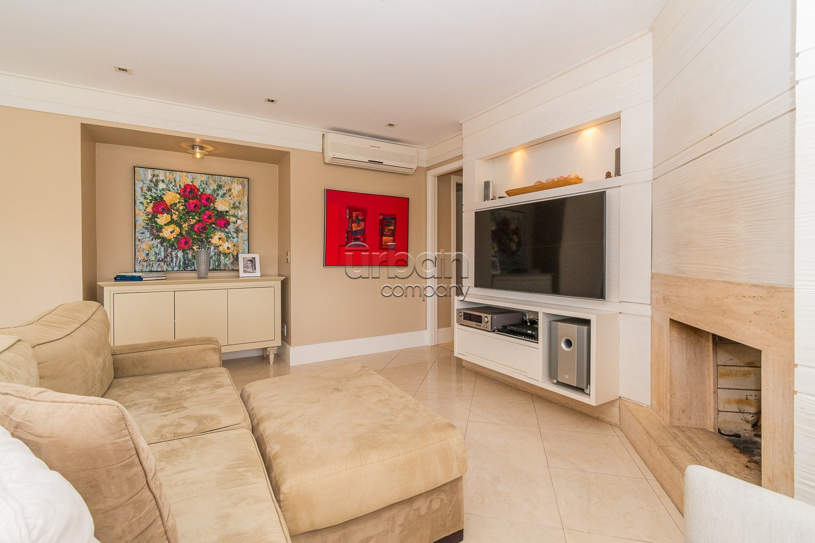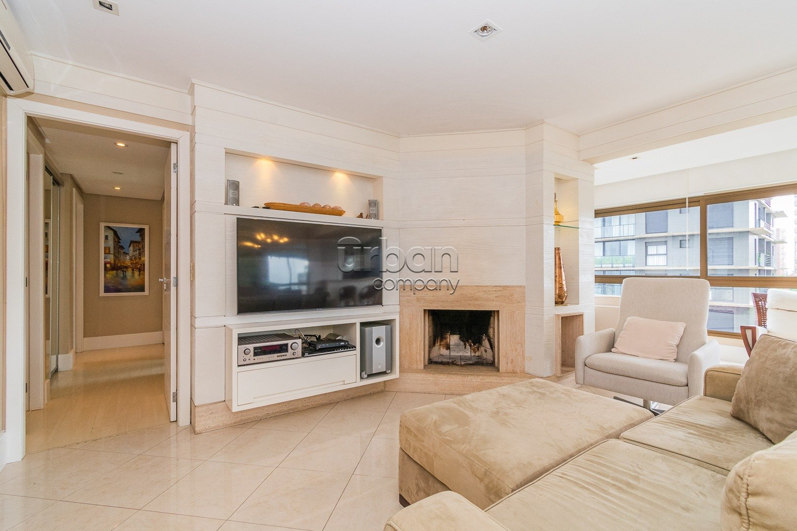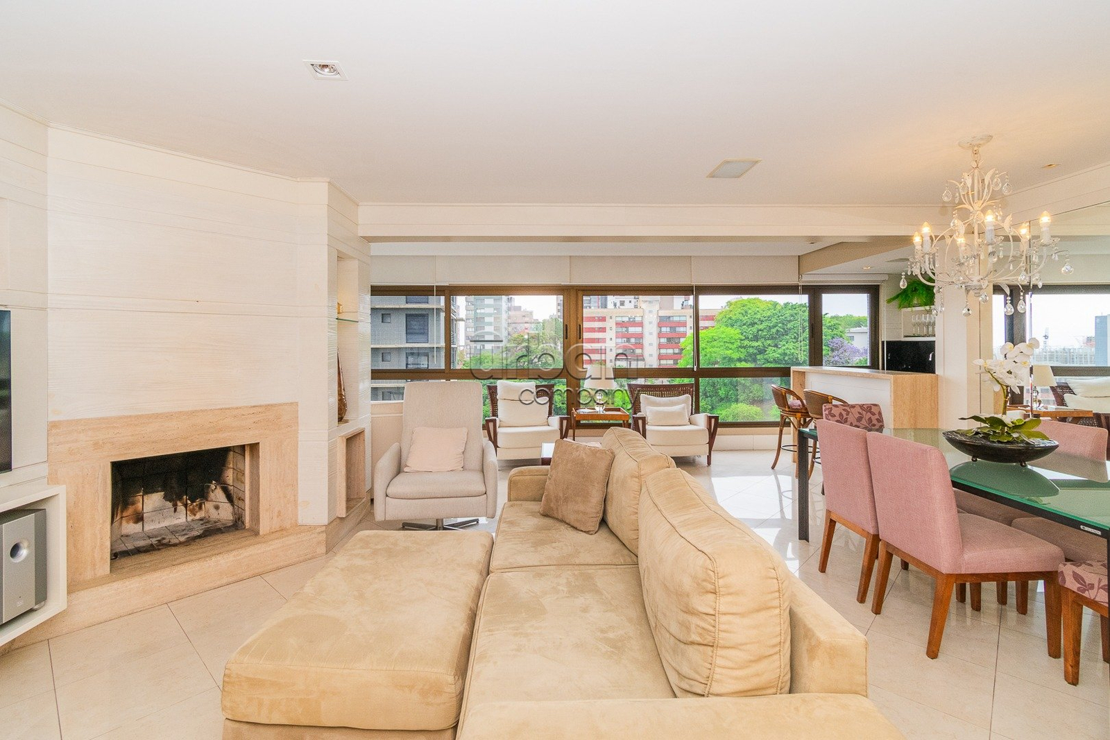 Apartamento semi mobiliado com 125m2 privativos, 3 dormitórios, sendo1 suíte com hidromassagem, amplo living com sala de estar e jantar definida, lareira, espaço churrasco, cozinha montada e área de serviço separada com banheiro auxiliar.