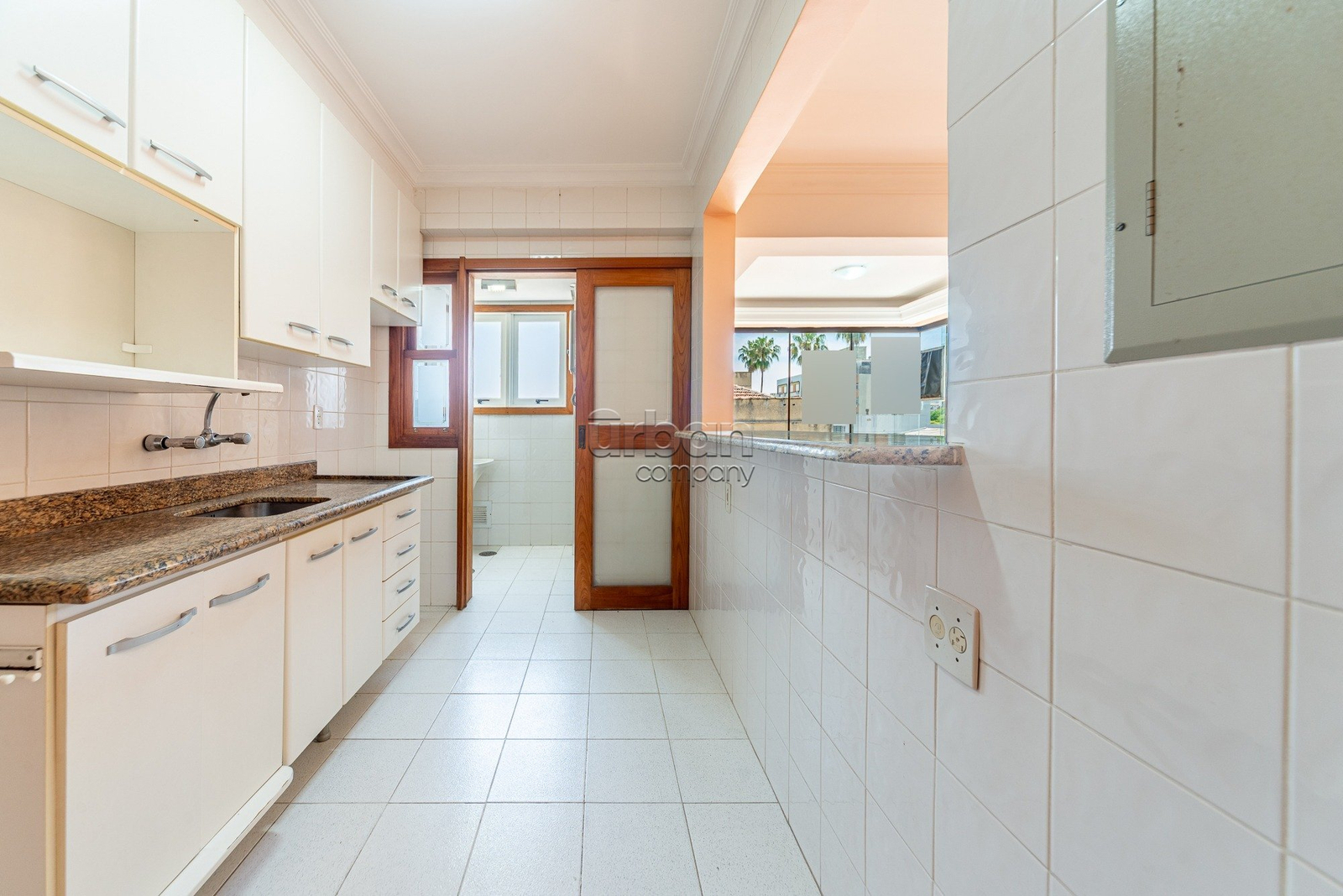 O living é amplo e bem iluminado, integrado à cozinha montada e à área de serviço separada, que inclui churrasqueira e aquecedor Rinnai.