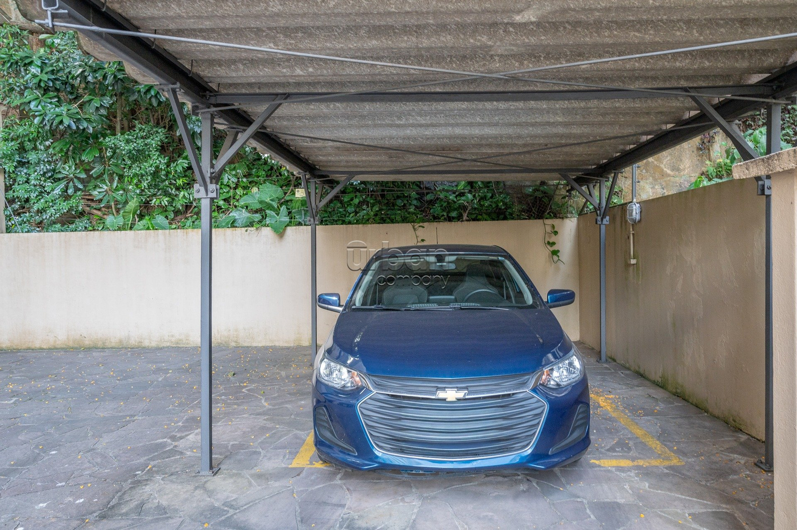 Possui uma vaga de garagem coberta e escriturada, com possibilidade de alugar uma segunda vaga no condomínio.