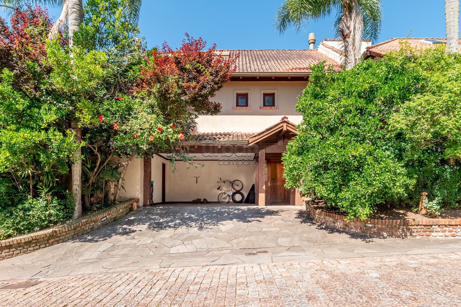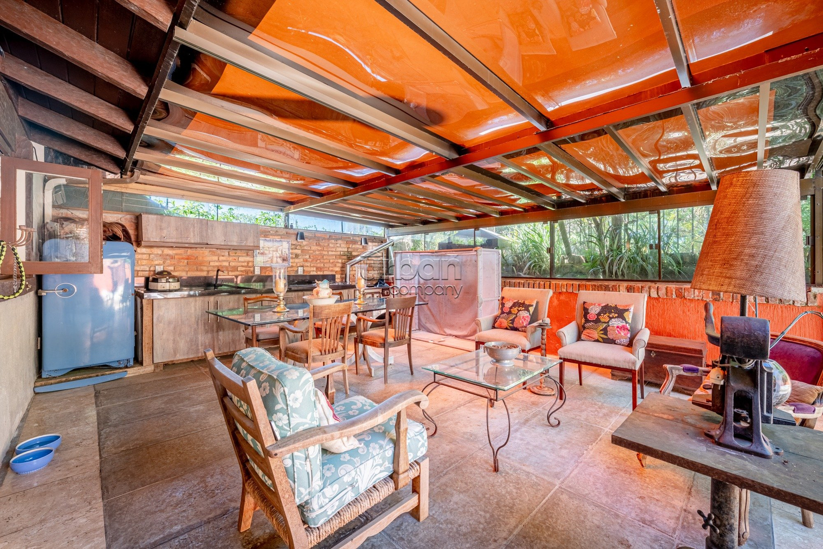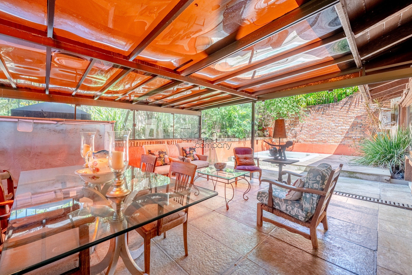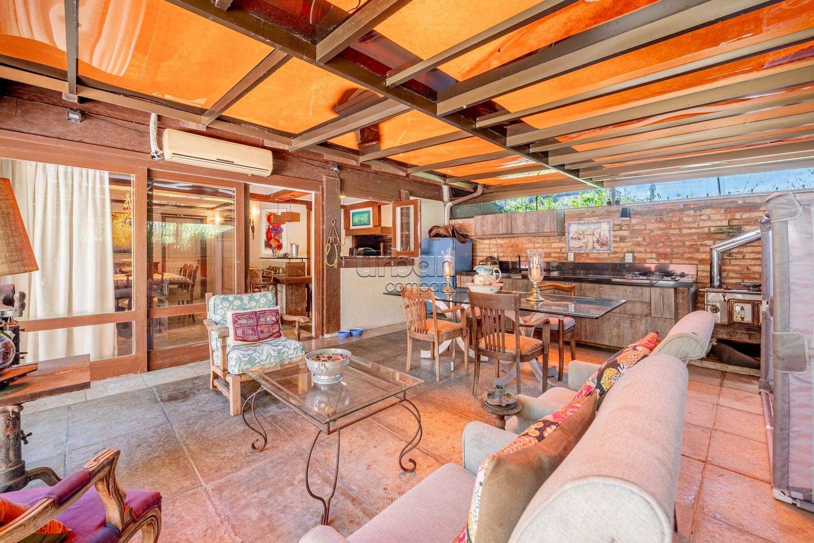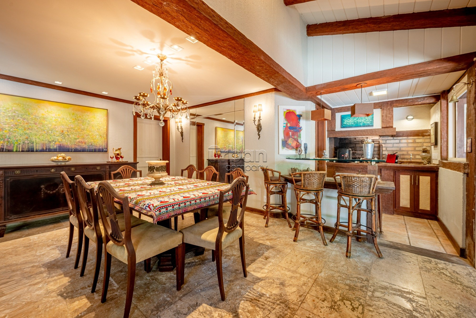 São 386,61 privativos, sendo que no térreo há uma generosa sala com lareira, sala de jantar, espaço gourmet com churrasqueira, jardim de inverno coberto com fogão à lenha e spa (jacuzzi com deck), lavabo, gabinete, cozinha com copa e área de serviço.