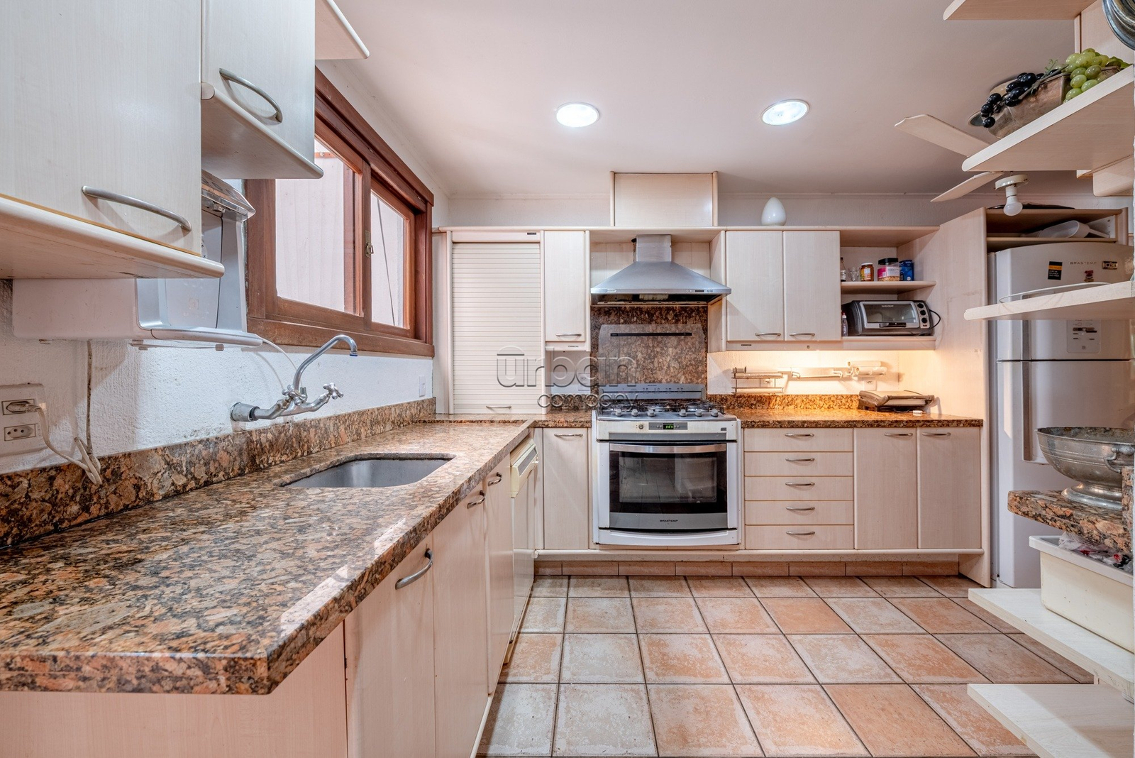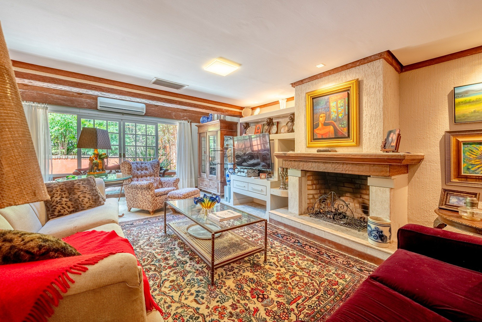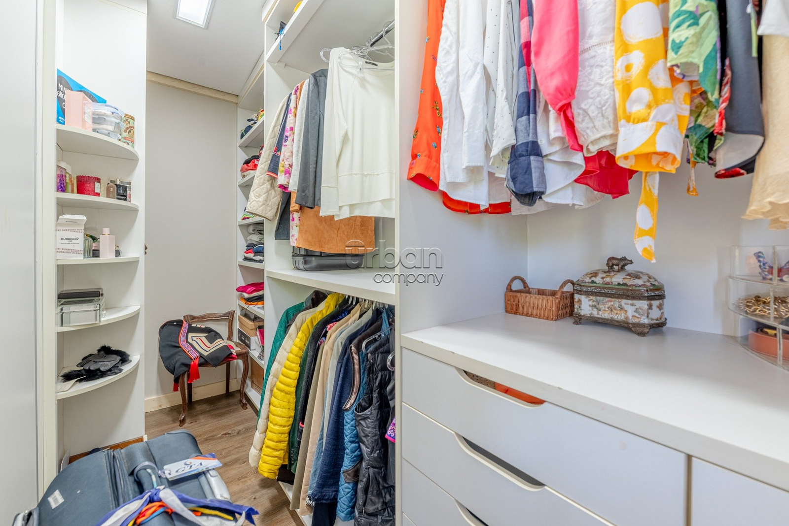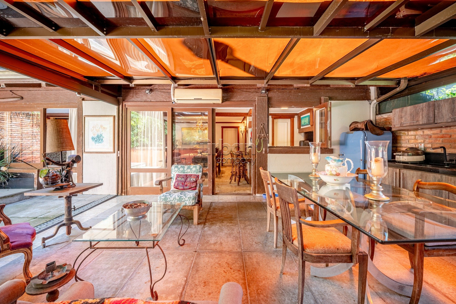 São 386,61 privativos, sendo que no térreo há uma generosa sala com lareira, sala de jantar, espaço gourmet com churrasqueira, jardim de inverno coberto com fogão à lenha e spa (jacuzzi com deck), lavabo, gabinete, cozinha com copa e área de serviço.