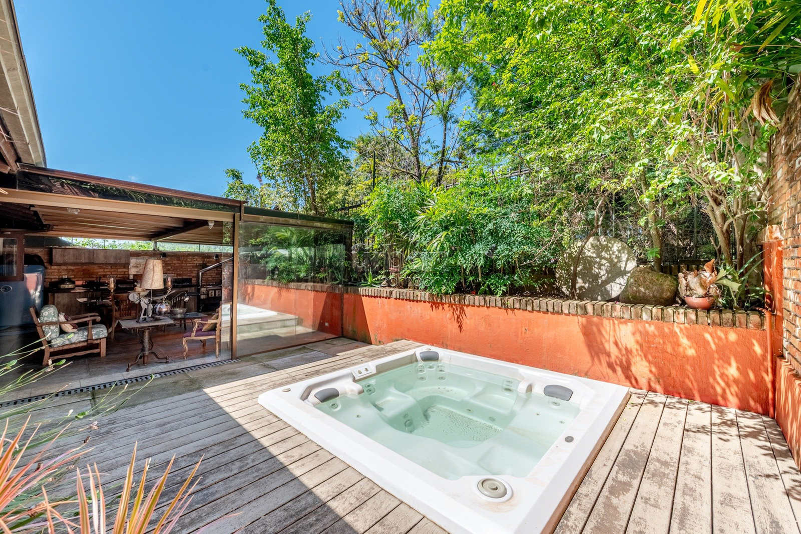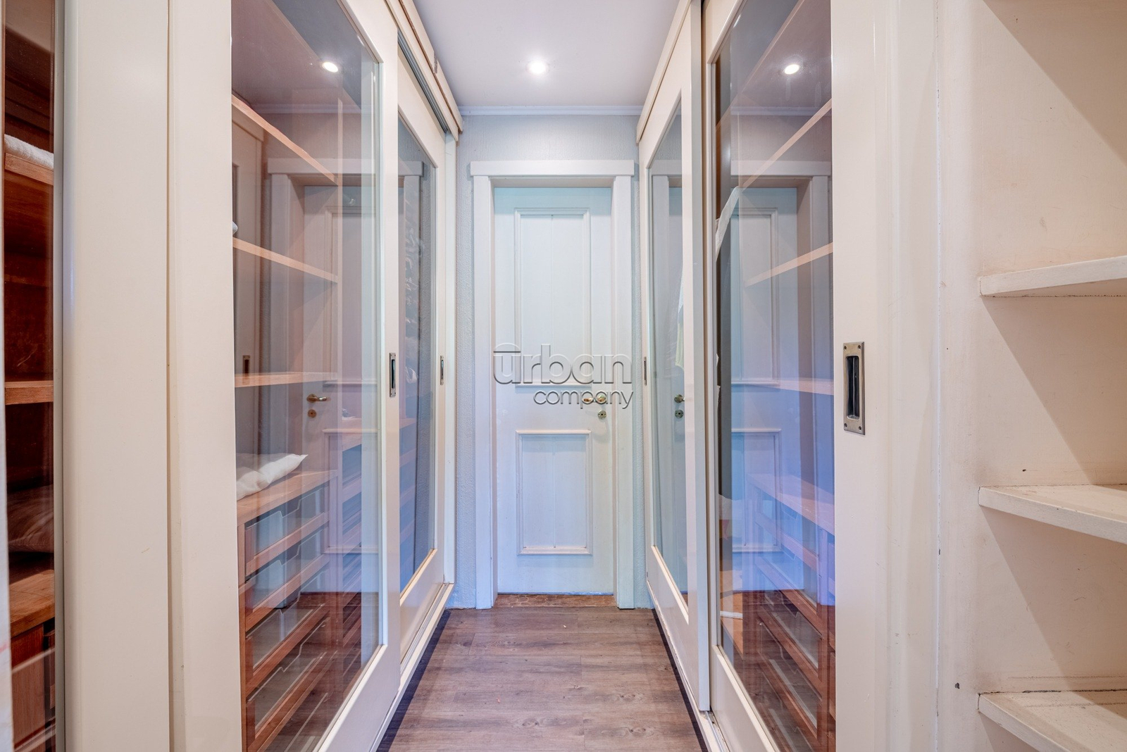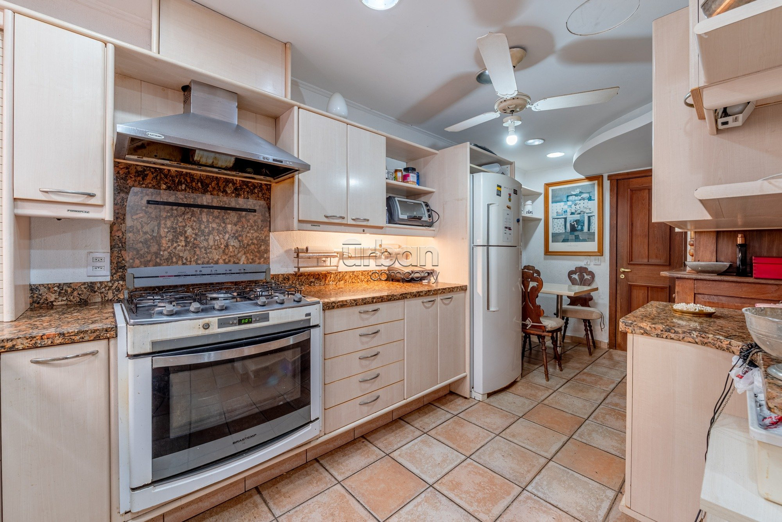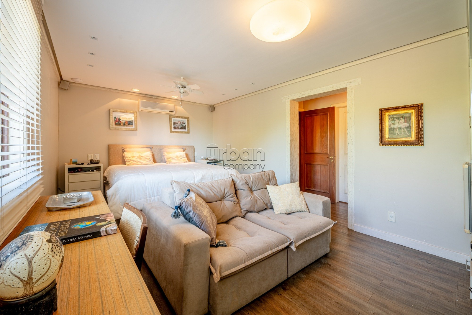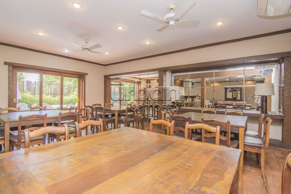 São 386,61 privativos, sendo que no térreo há uma generosa sala com lareira, sala de jantar, espaço gourmet com churrasqueira, jardim de inverno coberto com fogão à lenha e spa (jacuzzi com deck), lavabo, gabinete, cozinha com copa e área de serviço.