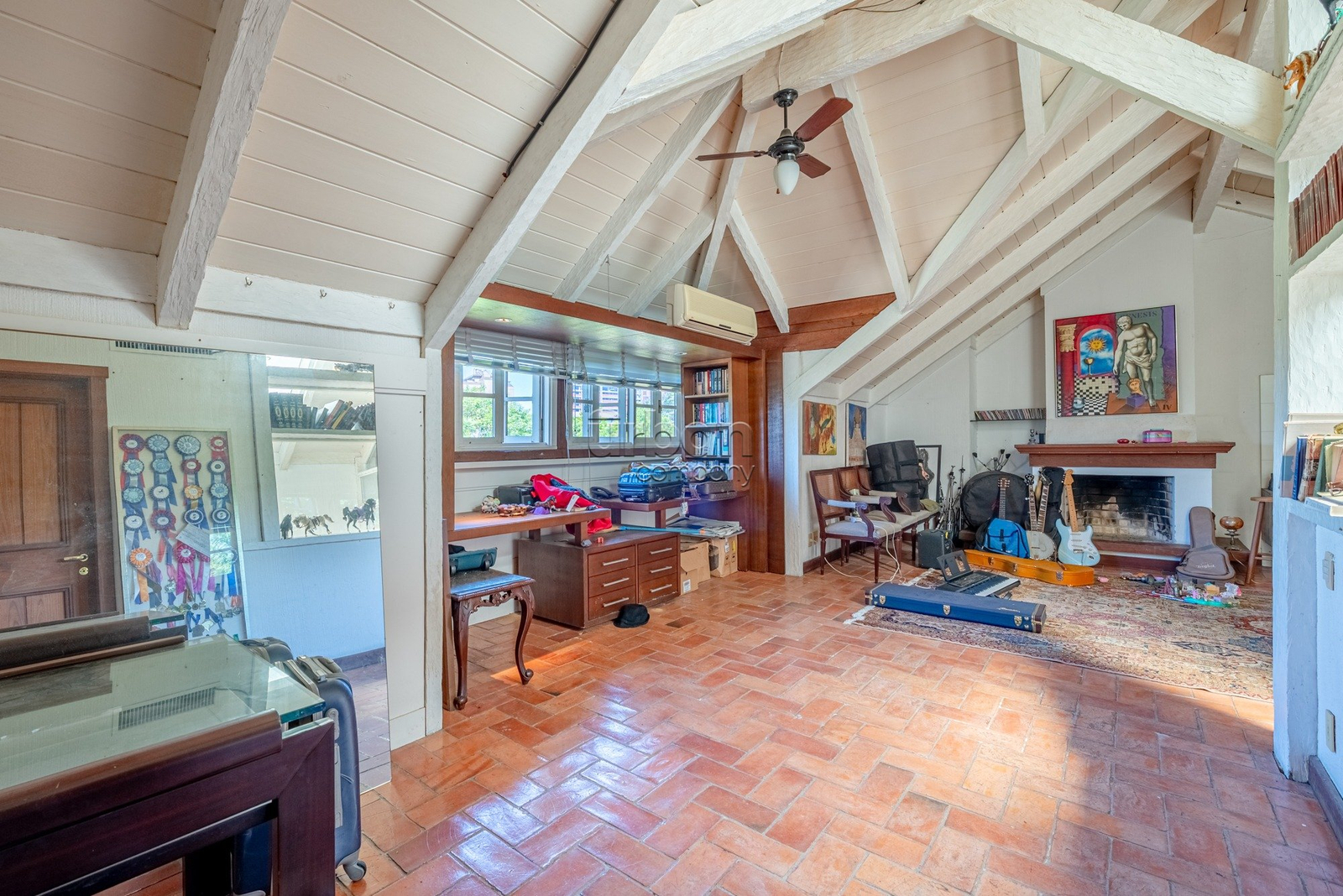 No terceiro andar, temos sótão com sala em "L" com lareira, banheiro e 03 depósitos.
