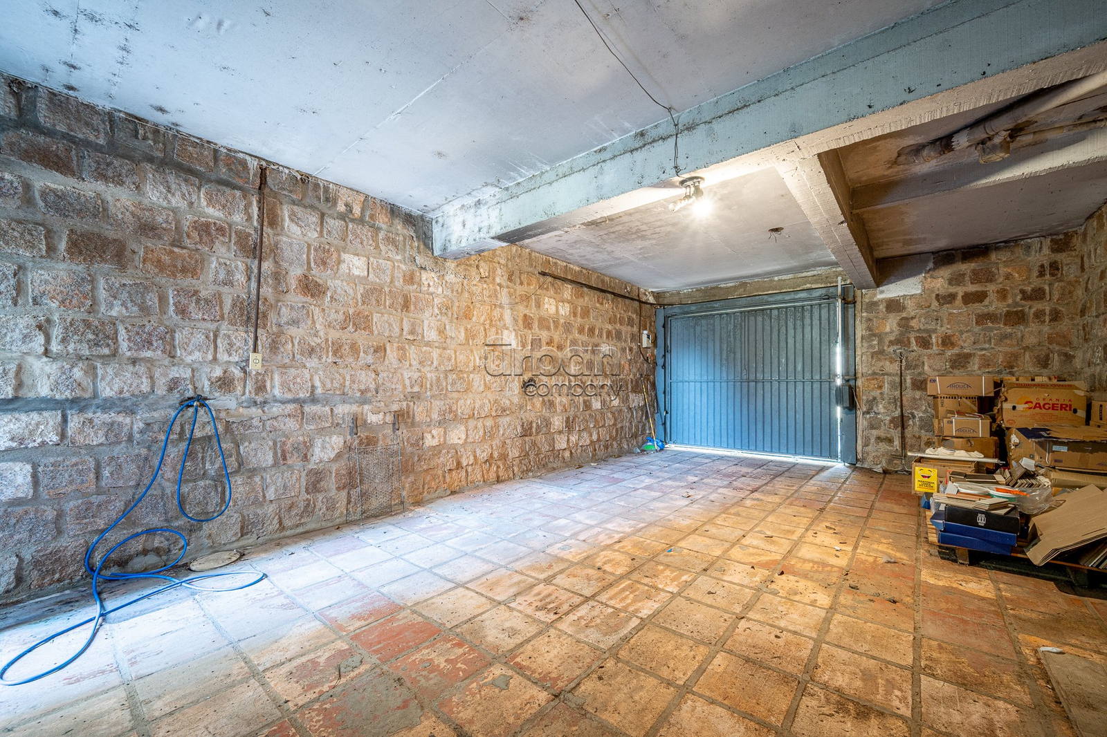 A garagem coberta comporta dois veículos grandes.