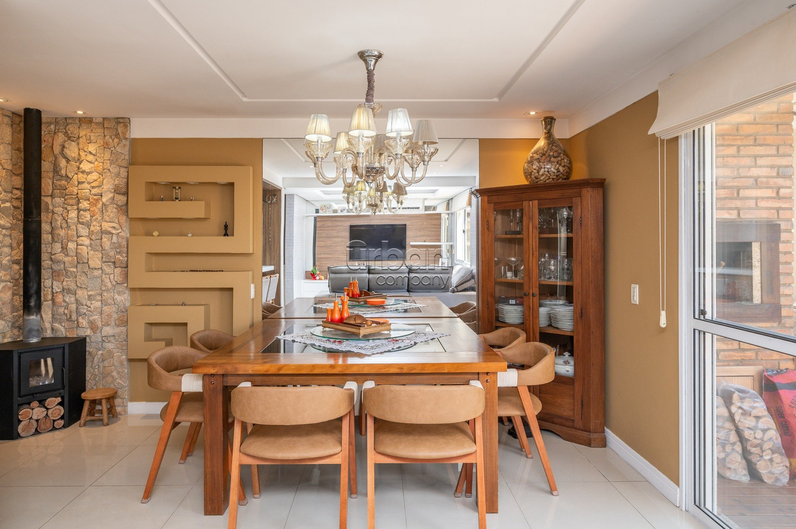 A reforma inclui hidráulica e elétrica novas, móveis e revestimentos de alto padrão e ar-condicionado split. A área social conta com lareira, cozinha gourmet integrada com bancada em mármore, espaço com churrasqueira e jacuzzi.