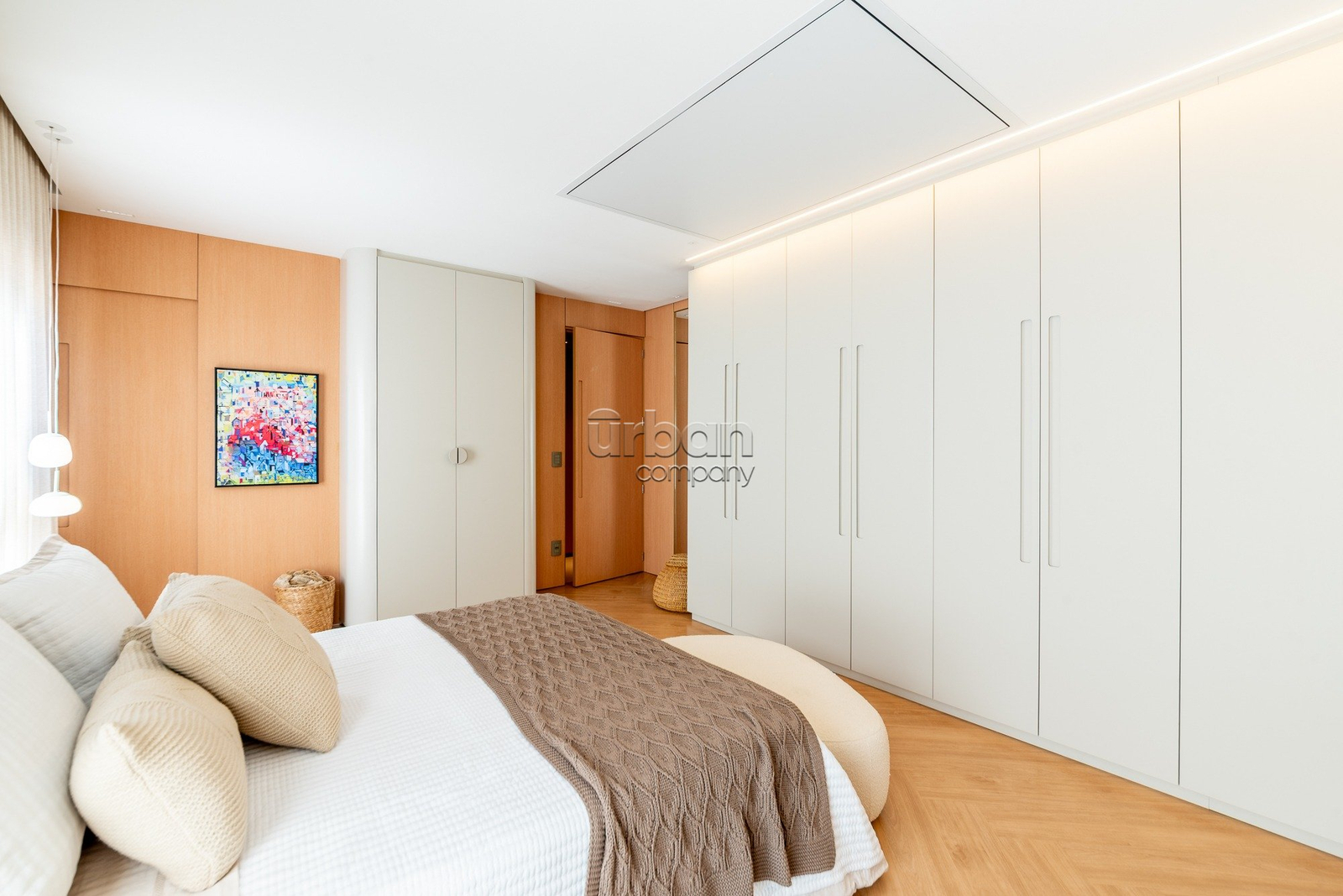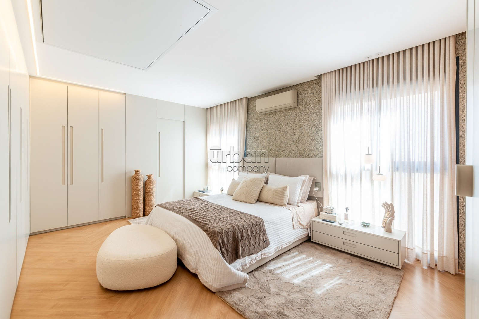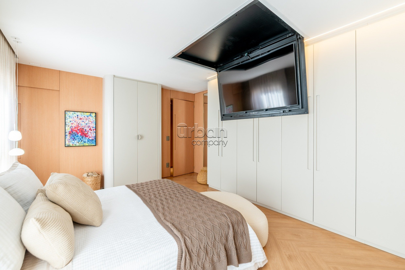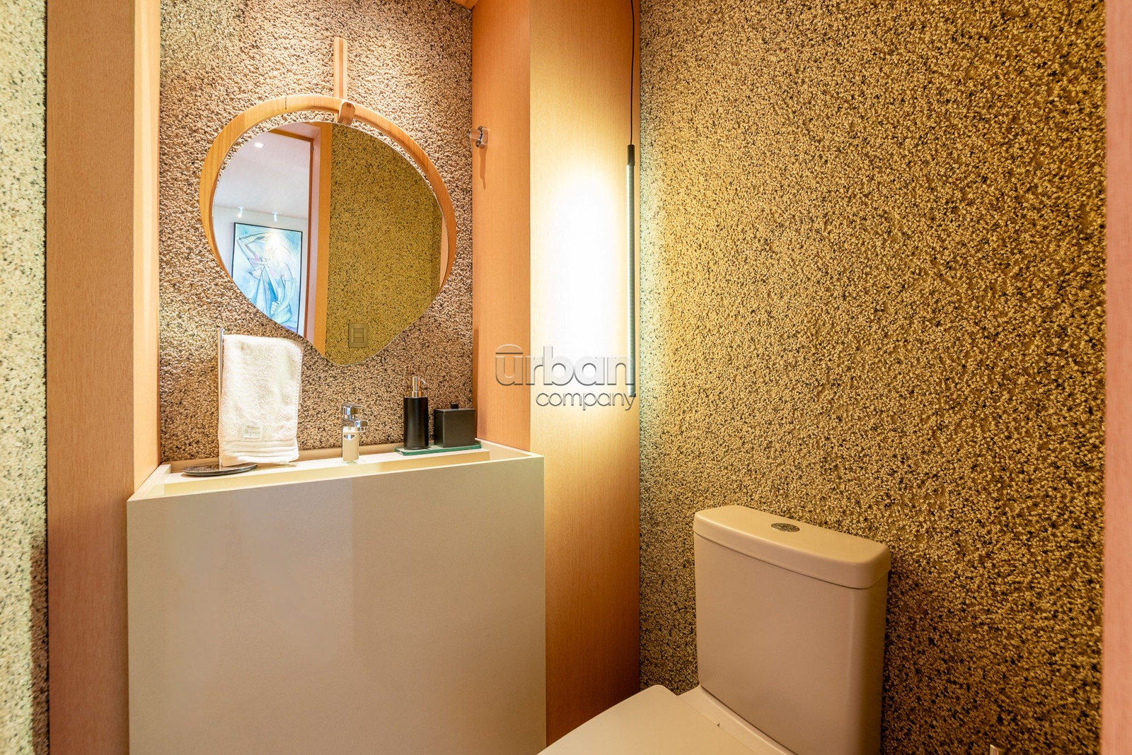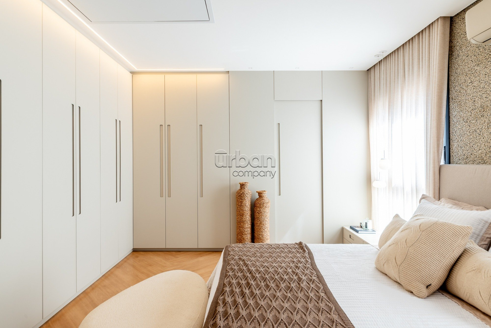 A suíte master se destaca pela amplitude, elegância e por contar com closet exclusivo para calçados. O imóvel dispõe ainda de lavabo, área de serviço separada e vaga dupla de garagem.