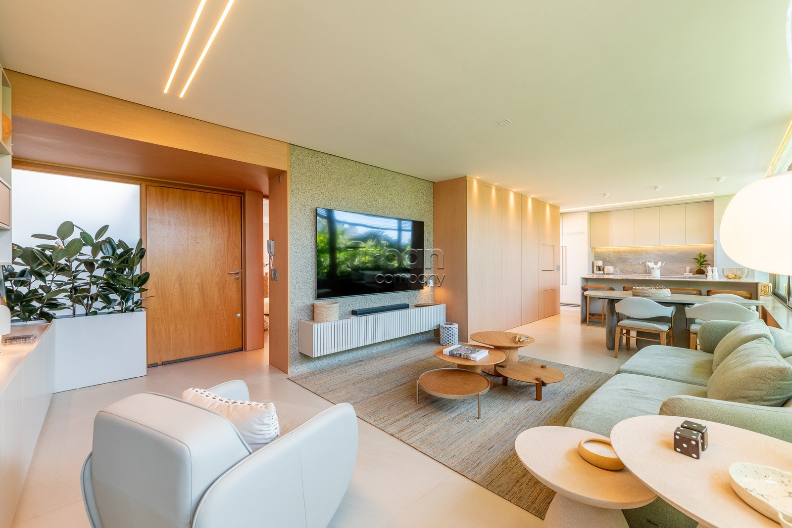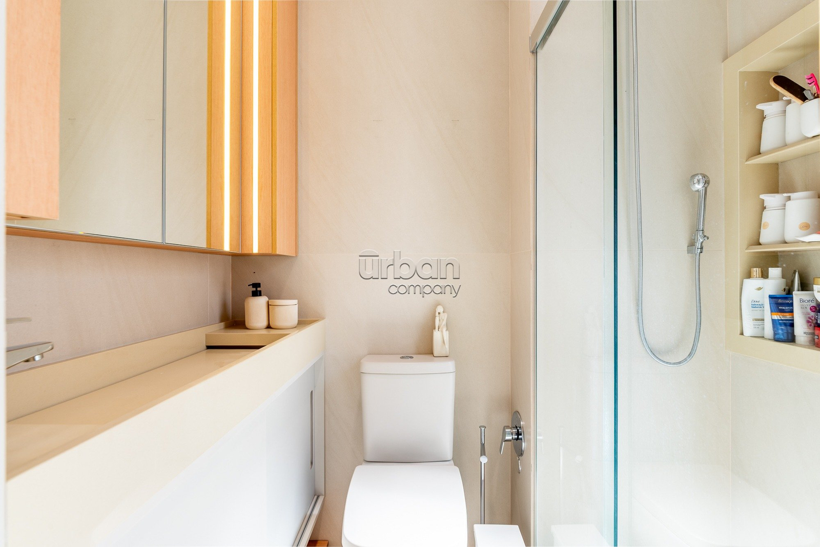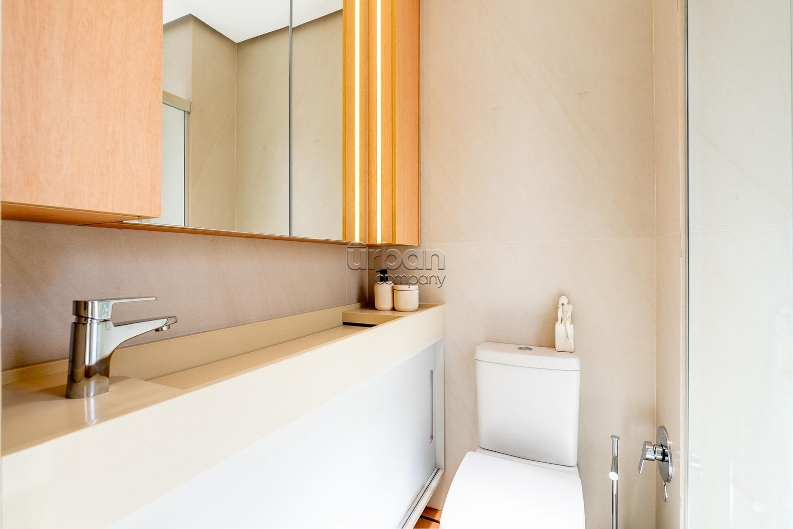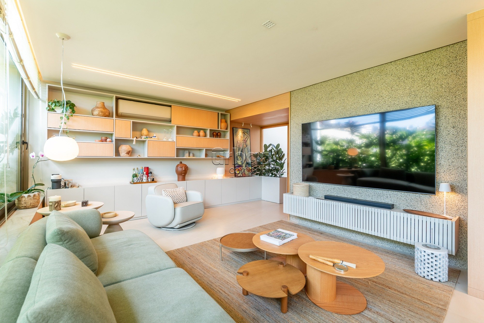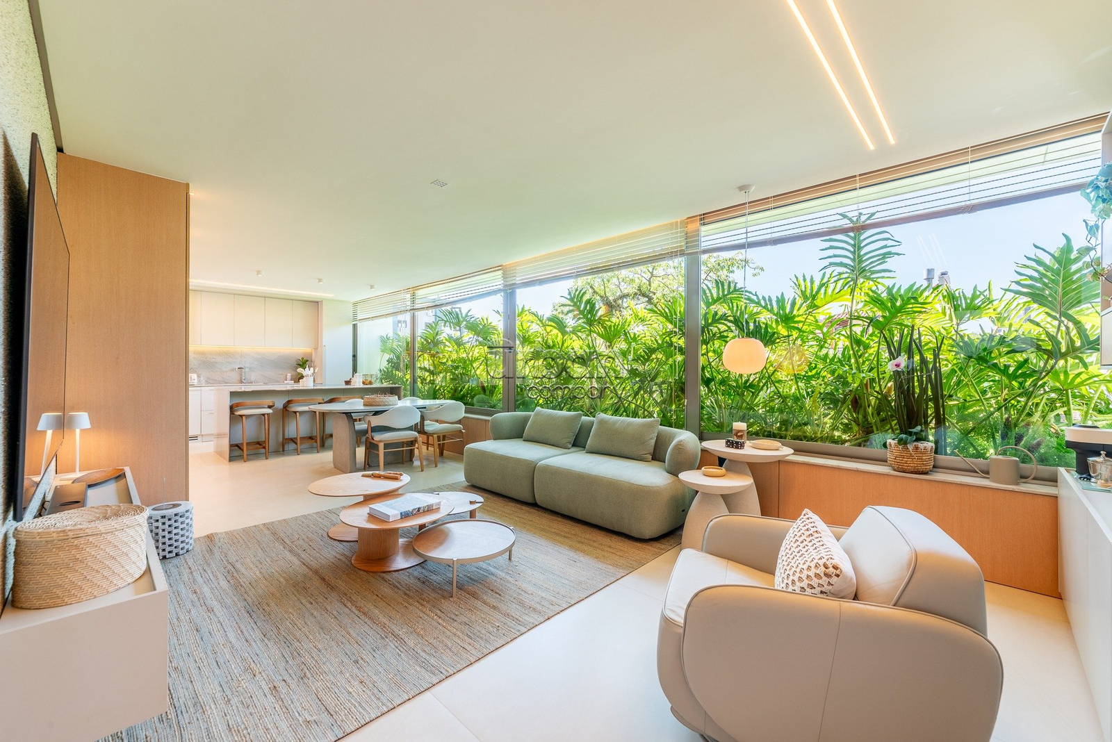 A suíte master se destaca pela amplitude, elegância e por contar com closet exclusivo para calçados. O imóvel dispõe ainda de lavabo, área de serviço separada e vaga dupla de garagem.