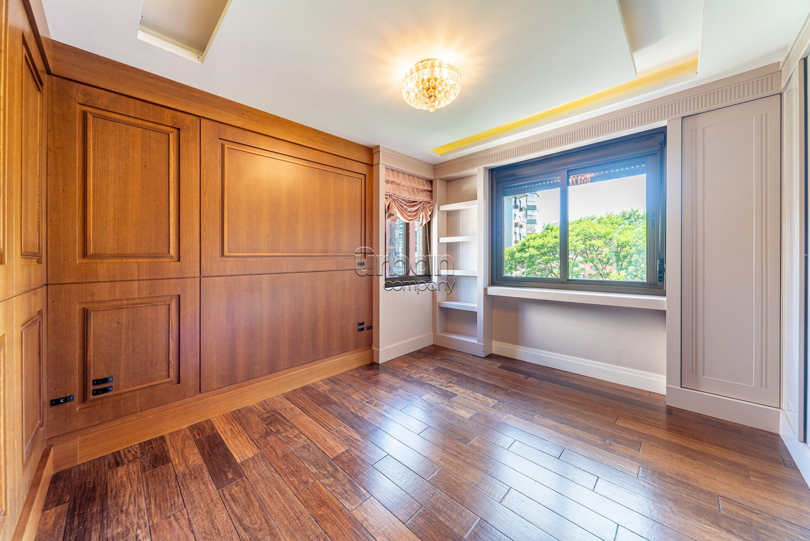 São 3 vagas cobertas e escrituradas, além de 2 depósitos privativos. A entrada social é compartilhada com apenas um vizinho, servida por 3 elevadores, reforçando o clima de privacidade.