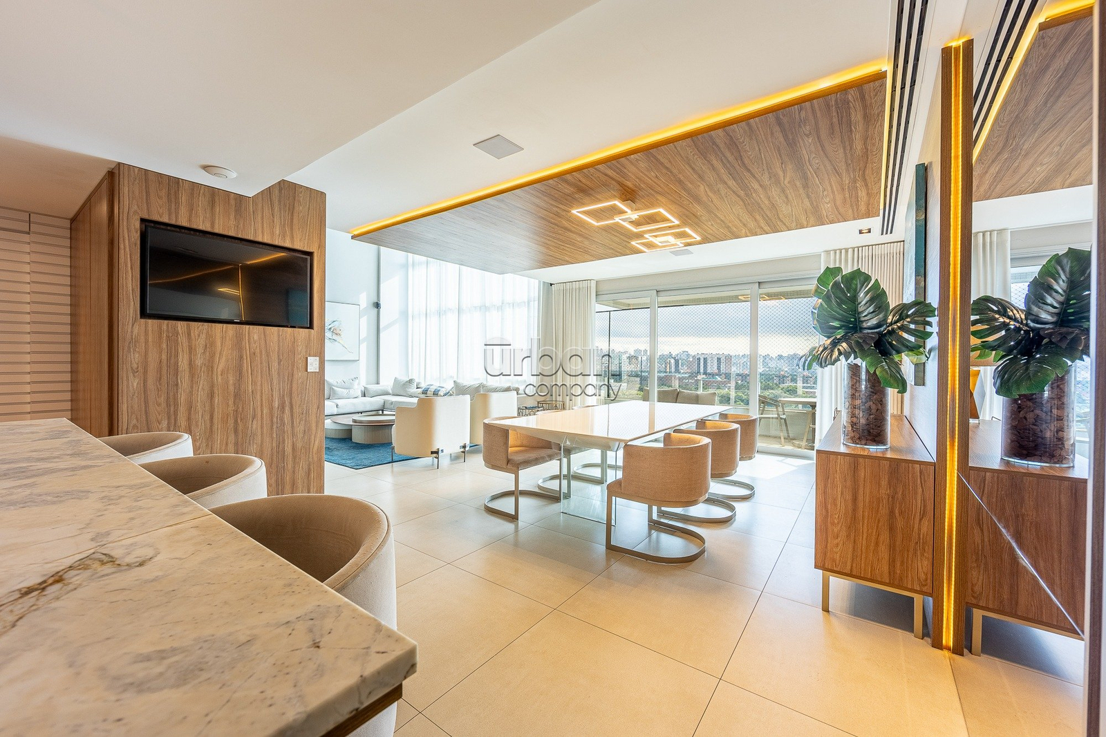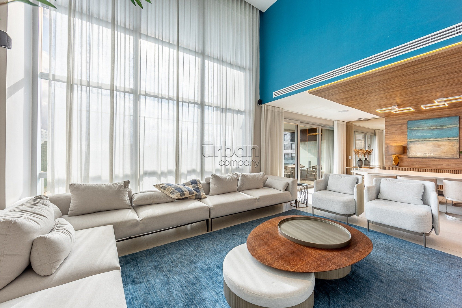 Com 226 m² de área privativa, este apartamento de 3 suites, transformado em 2 espaçosas suítes, revela uma combinação rara de amplitude, sofisticação e conforto. Logo na entrada, o hall conduz a um generoso living para dois ambientes, valorizado por uma charmosa lareira que cria o cenário perfeito para momentos de convivência. A sacada com pé-direito duplo amplia a sensação de espaço e luz natural, enquanto a piscina privativa convida a desfrutar de momentos únicos, especialmente nos dias ensolarados.