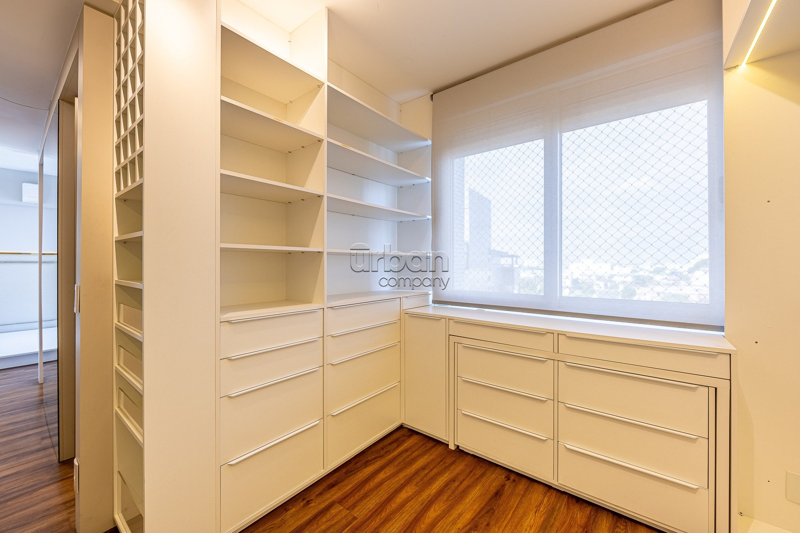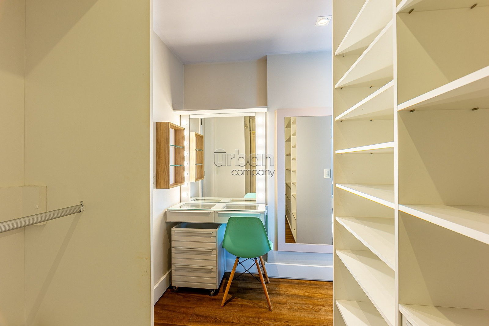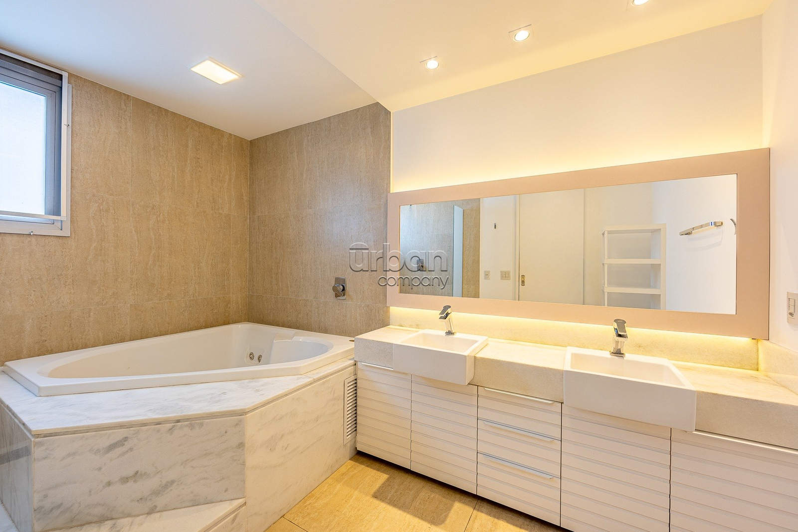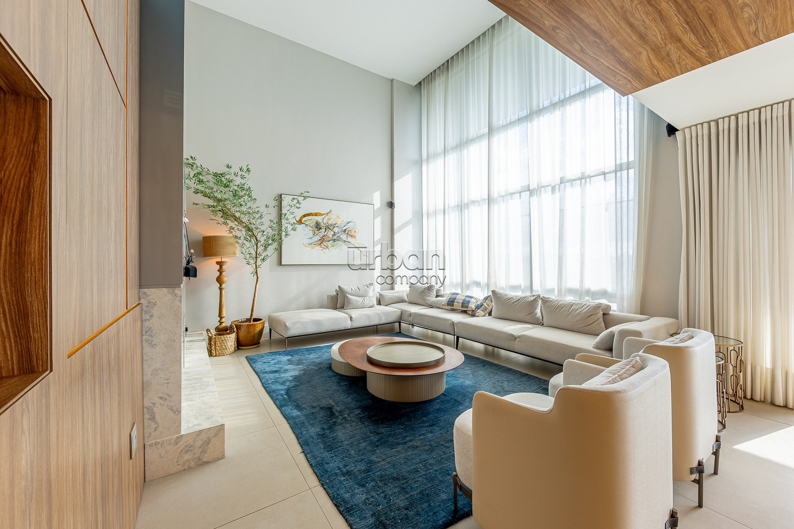 Na área íntima, duas suítes master proporcionam privacidade e conforto, ambas com closet e banheira de hidromassagem, criando verdadeiros refúgios de descanso dentro do lar. O imóvel ainda dispõe de três vagas de garagem individuais, além de depósito privativo.