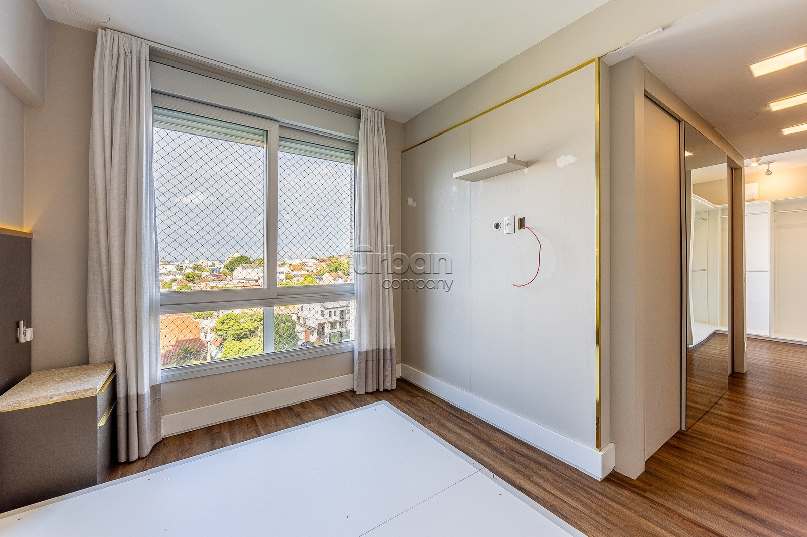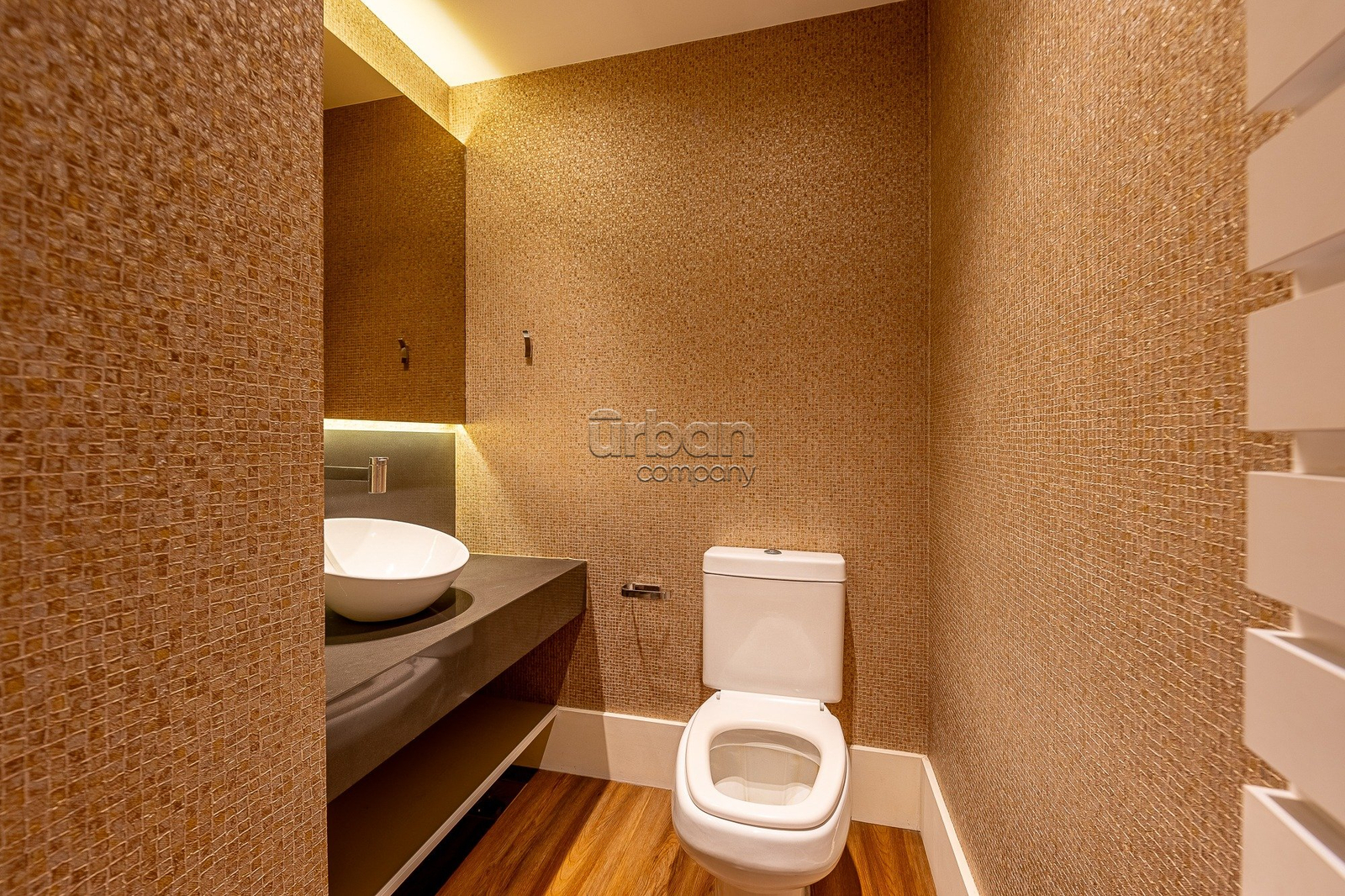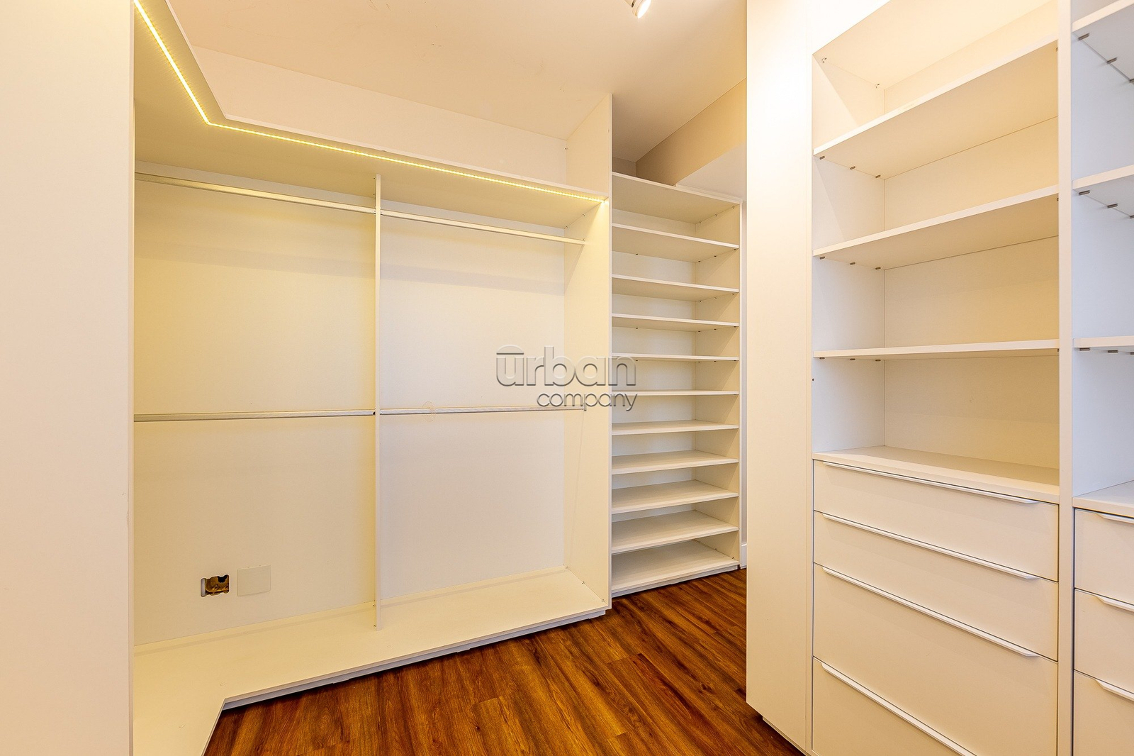 Na área íntima, duas suítes master proporcionam privacidade e conforto, ambas com closet e banheira de hidromassagem, criando verdadeiros refúgios de descanso dentro do lar. O imóvel ainda dispõe de três vagas de garagem individuais, além de depósito privativo.