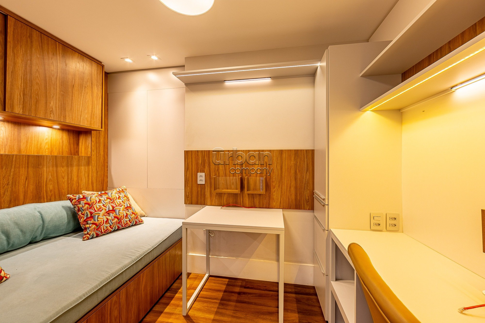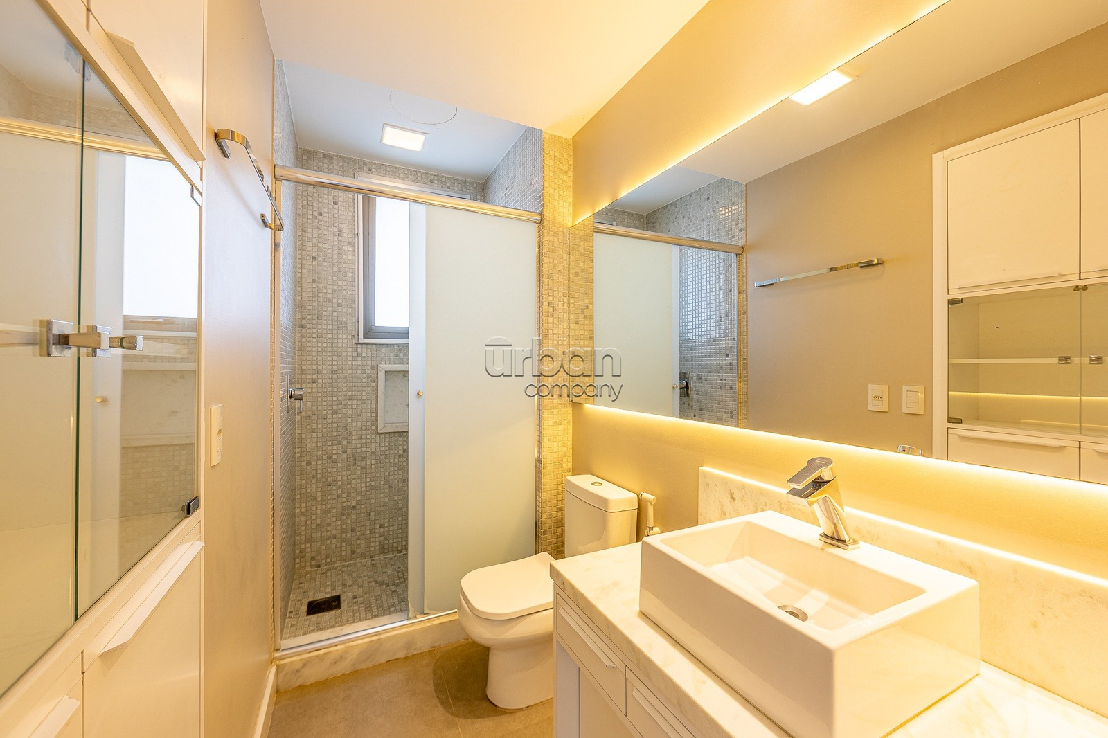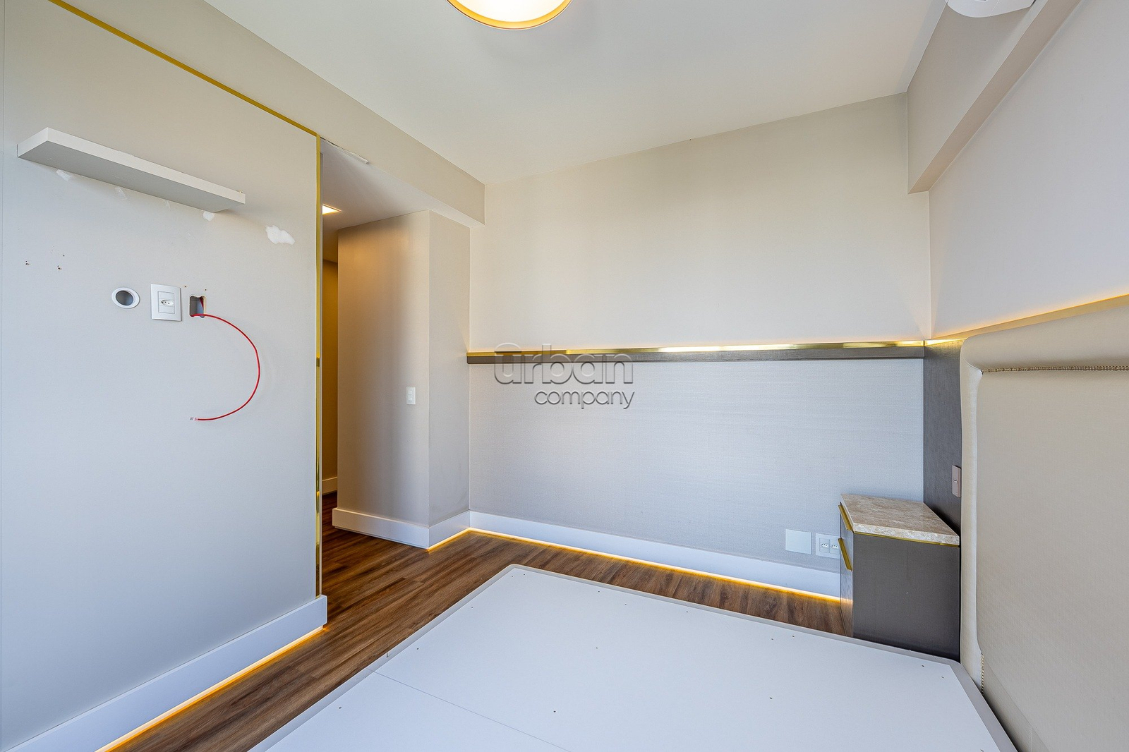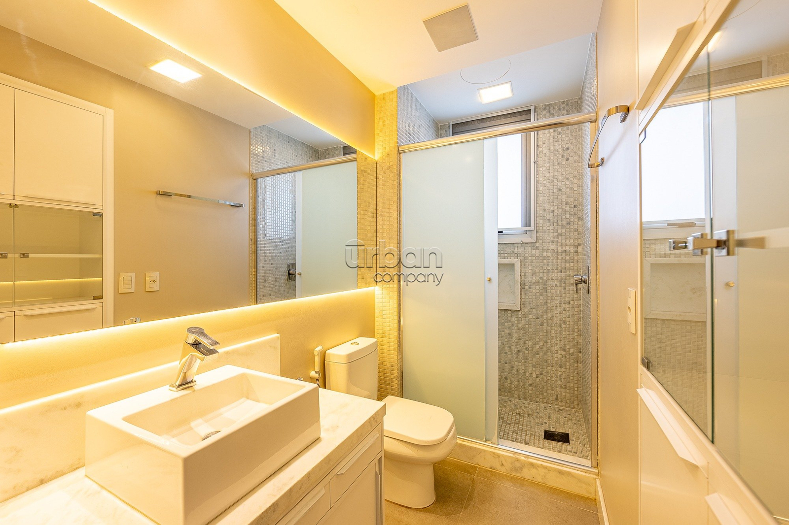 Na área íntima, duas suítes master proporcionam privacidade e conforto, ambas com closet e banheira de hidromassagem, criando verdadeiros refúgios de descanso dentro do lar. O imóvel ainda dispõe de três vagas de garagem individuais, além de depósito privativo.