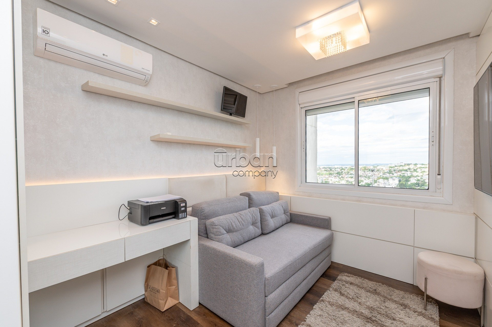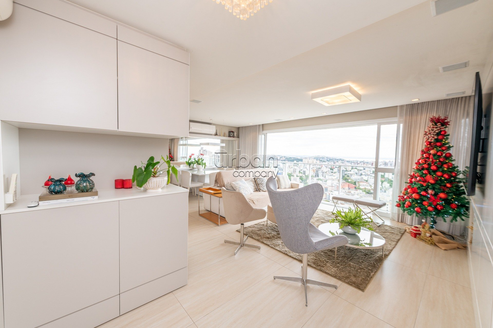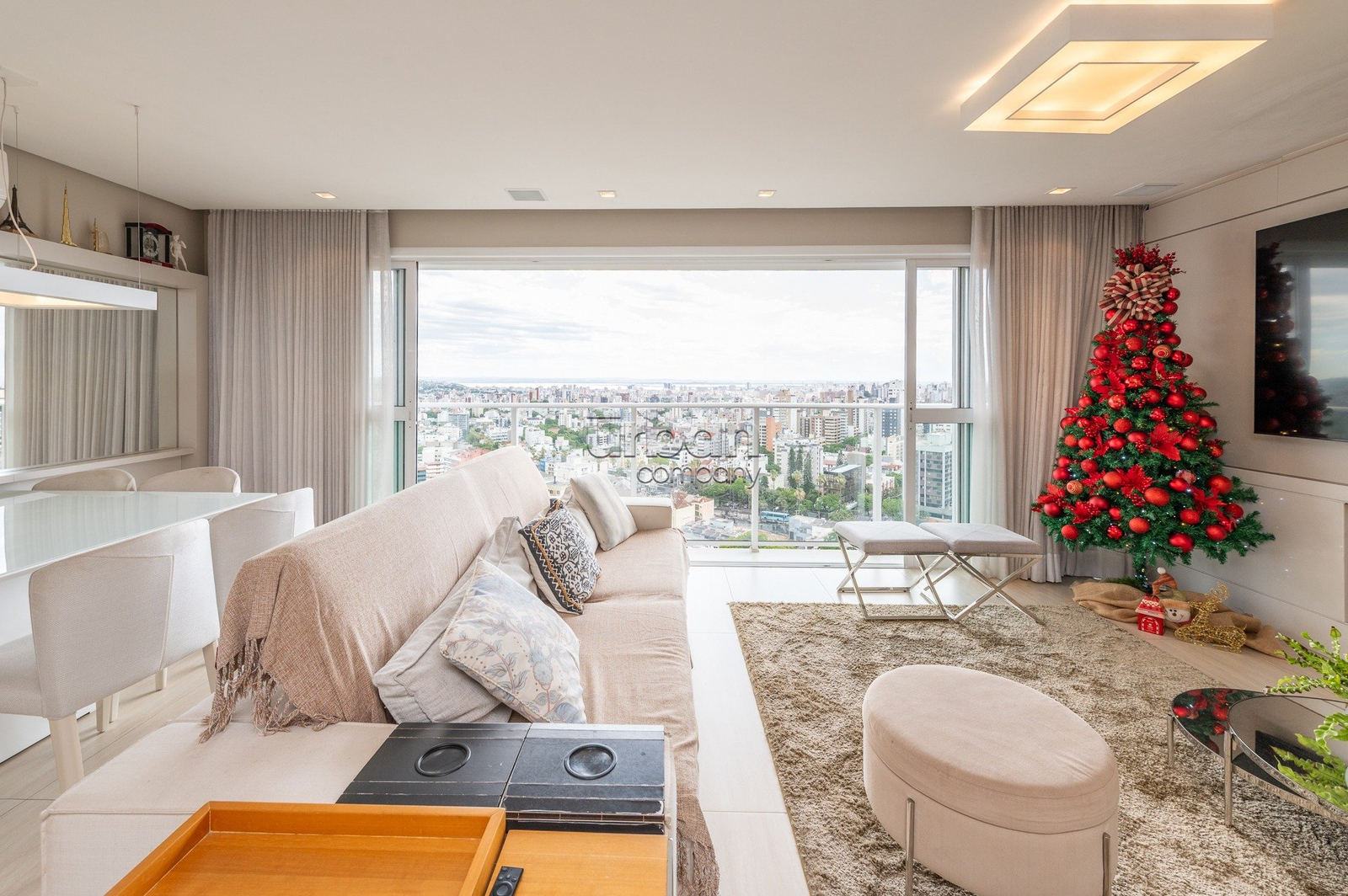 O imóvel conta com 126 m² privativos muito bem distribuídos, incluindo amplo living para dois ambientes com lareira e churrasqueira, lavabo, cozinha planejada e área de serviço independente. Localizado em andar alto, desfruta de excelente posição solar e iluminação natural em todos os cômodos.