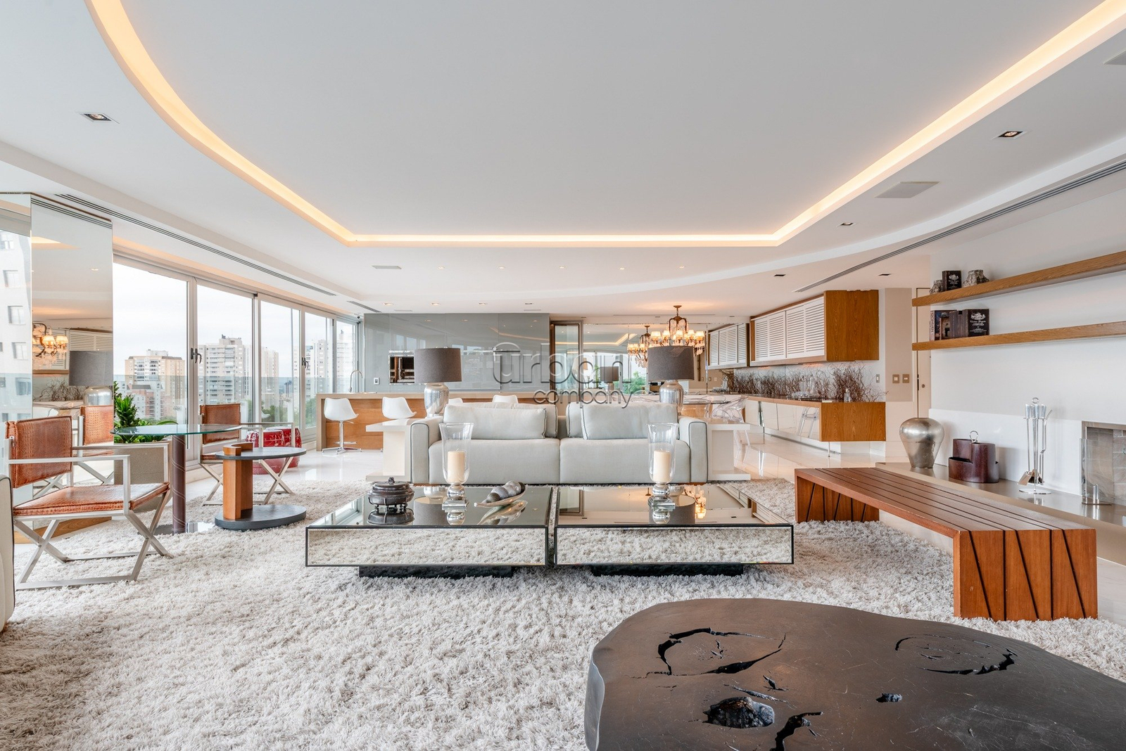 Imovel com hall de entrada privativo, elevador codificado. Living de 120m distribuidos em area de estar com lareira convencional sistema de sonorizacao iluminacao, mobilia Gobbi Novelle, estofados Natuzzi, espaço jantar com mesa redonda tampo em livro e pes em madeira nobre, bancada buffet em laca com nichos decorativos, paineis em espelhos refletindo luz natural, lustres, iluminacao dimada, espaço goumet com bancada em silestone, adega, cervejeira, churrasqueira parrilla, com acabamento em silestone, adega climatizada. Sala intima, com 19m, dando acesso as 3 suites, secundarias com 19m² e master com 35m² com closet ele e ela e banheiros individuais. Cozinha separada com eletrodomeesticos embutidos, area de serviço separada e dependencia completa, com entrada de serviço.