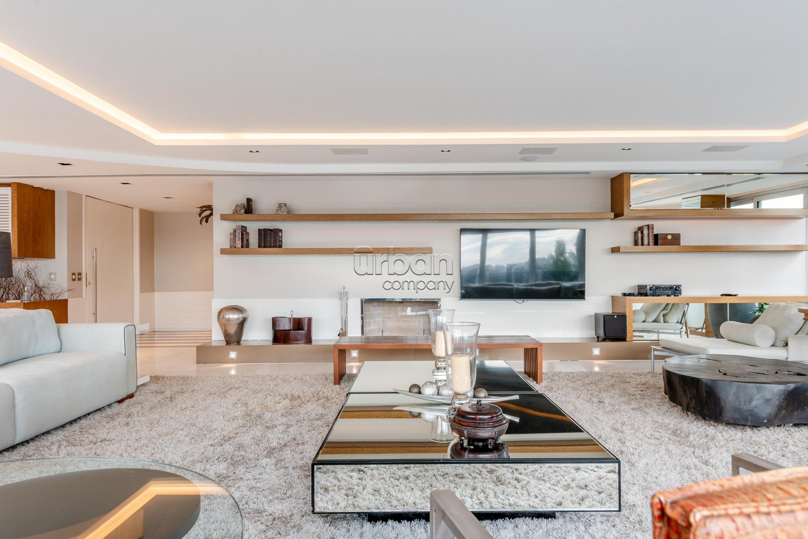 Imovel com hall de entrada privativo, elevador codificado. Living de 120m distribuidos em area de estar com lareira convencional sistema de sonorizacao iluminacao, mobilia Gobbi Novelle, estofados Natuzzi, espaço jantar com mesa redonda tampo em livro e pes em madeira nobre, bancada buffet em laca com nichos decorativos, paineis em espelhos refletindo luz natural, lustres, iluminacao dimada, espaço goumet com bancada em silestone, adega, cervejeira, churrasqueira parrilla, com acabamento em silestone, adega climatizada. Sala intima, com 19m, dando acesso as 3 suites, secundarias com 19m e master com 35m com closet ele e ela e banheiros individuais. Cozinha separada com eletrodomeesticos embutidos, area de serviço separada e dependencia completa, com entrada de serviço.