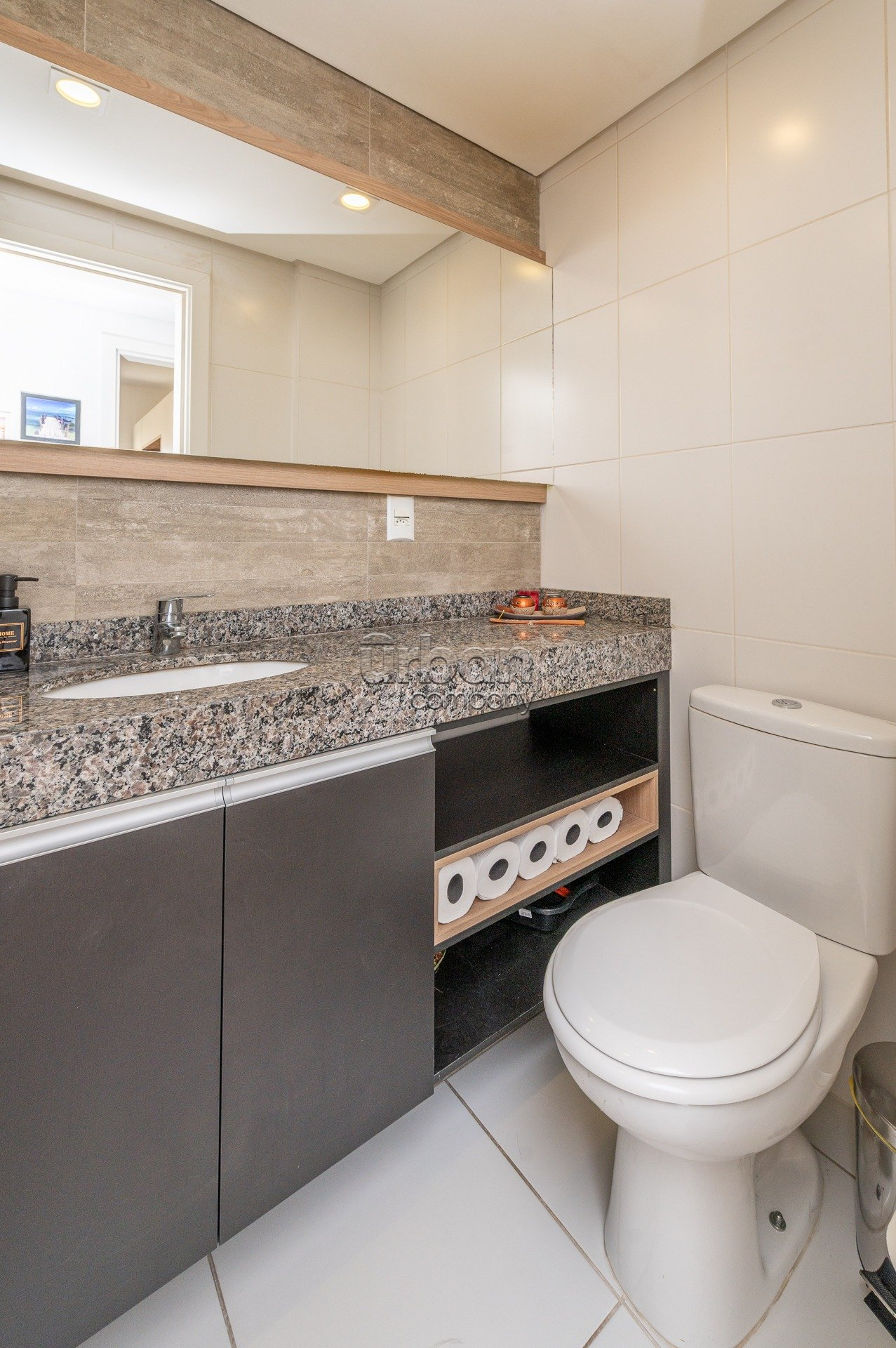 São 58,65 m² privativos com churrasqueira e 2 vagas de garagem escrituradas e cobertas.