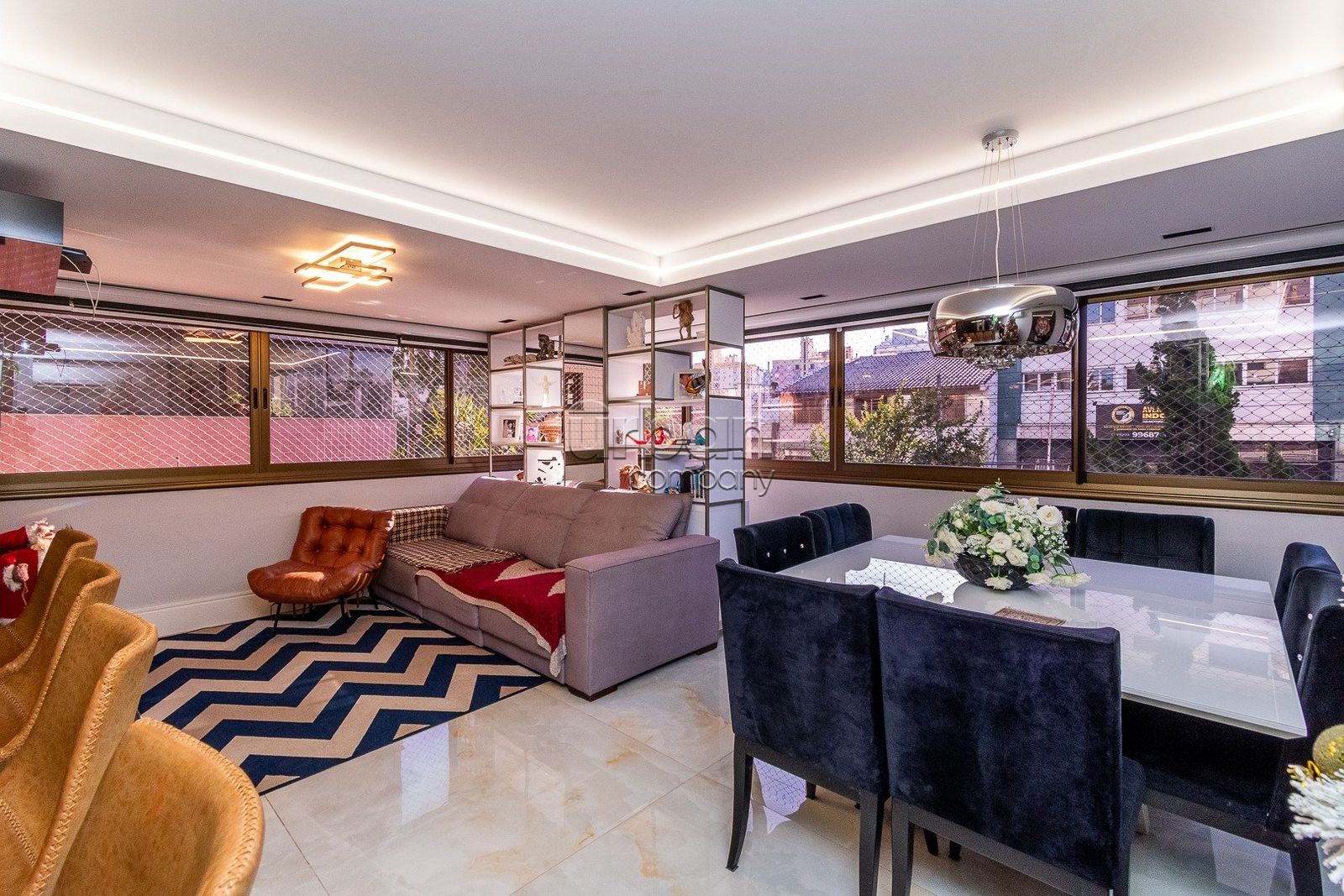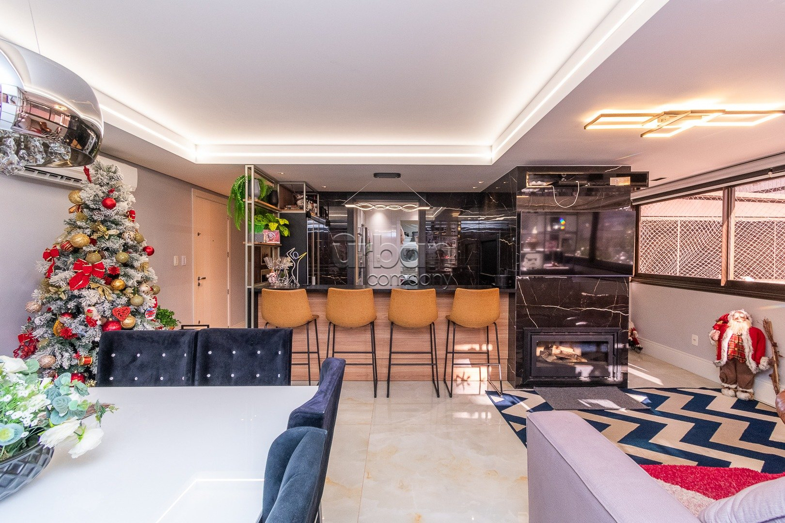 O imóvel conta com 3 dormitórios, sendo uma suíte master com closet, além de um living integrado que proporciona excelente convivência. Dispõe ainda de espaço gourmet com churrasqueira, cozinha planejada, sala de TV, lareira, academia privativa e área de serviço independente.