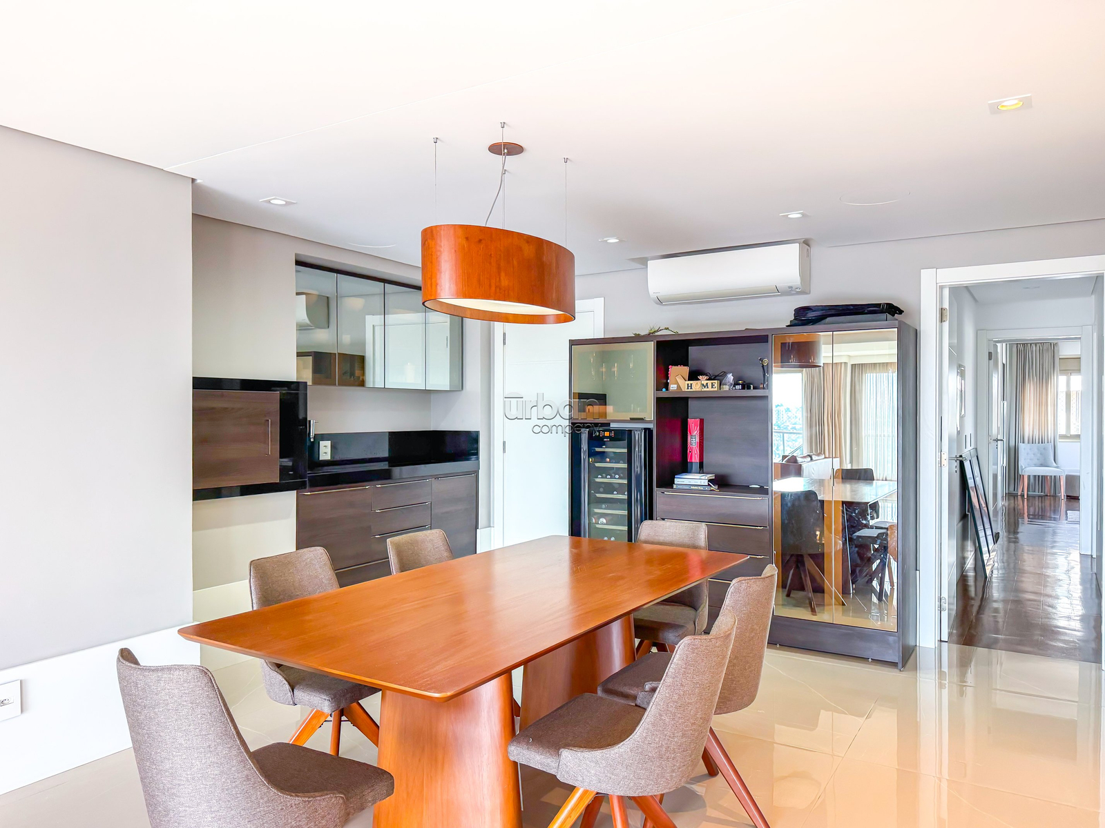 O imóvel conta com três suítes, com possibilidade de adaptação para quatro, além de um amplo living integrado em três ambientes distintos, equipado com lareira para maior aconchego. O espaço gourmet com churrasqueira e a sacada com vista proporcionam momentos de lazer diferenciados.