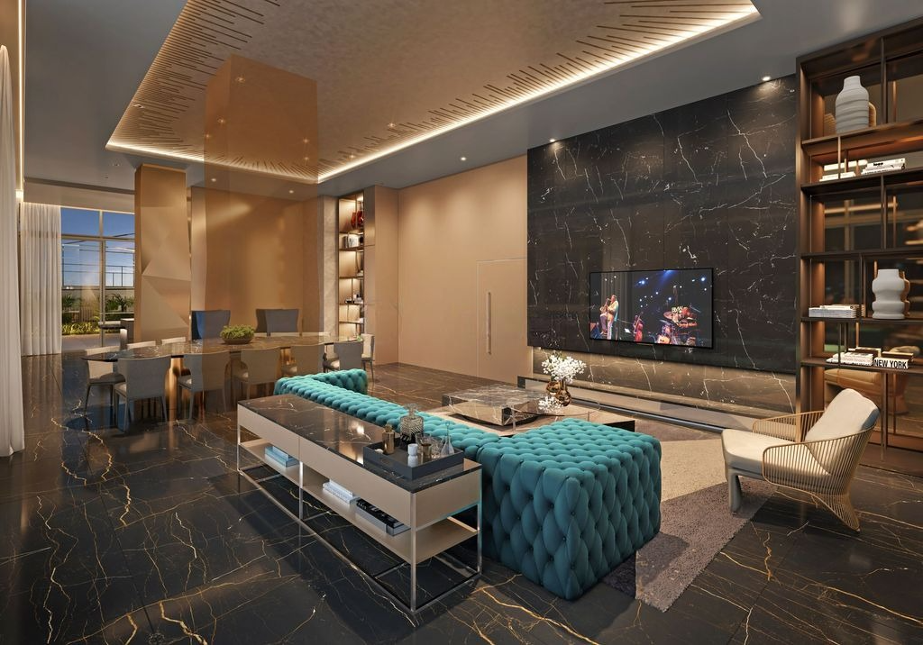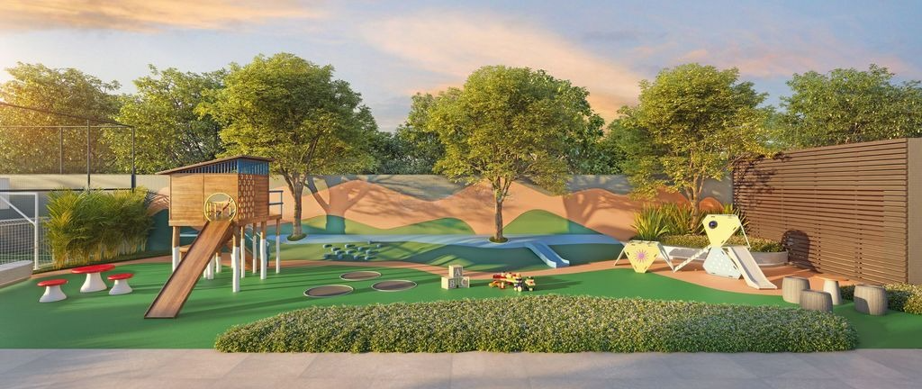 O terraço tem 93m2 com espera para deck e piscina. São 4 vagas de garagem com carregador para carro elétrico já instalado.