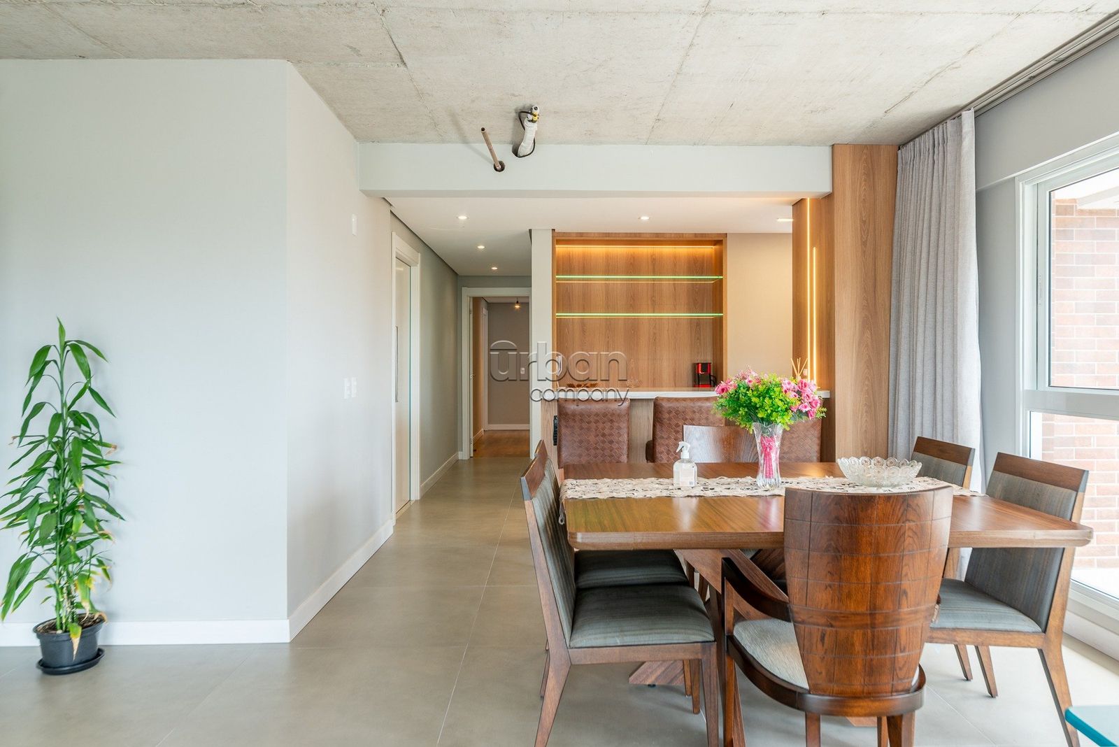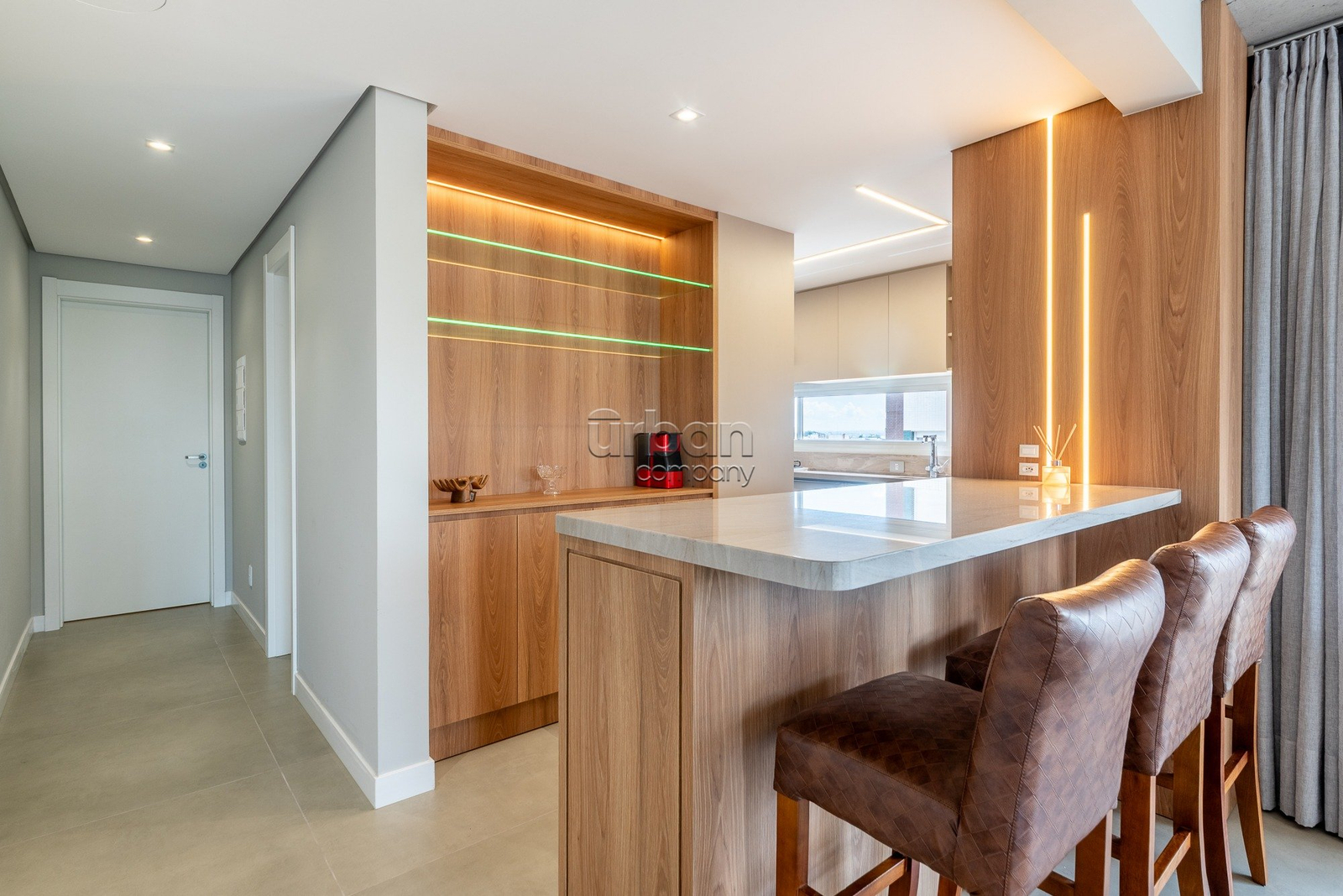 O living conta com amplas esquadrias em ?L?, que proporcionam excelente iluminação natural e ventilação cruzada, integrando sala de estar, sala de jantar e cozinha. A cozinha e a lavanderia estão totalmente equipadas com eletrodomésticos. Imóvel recém-entregue, decorado com acabamentos de alto padrão, móveis planejados e pedras nobres. O apartamento dispõe ainda de lavabo e banheiro de serviço.