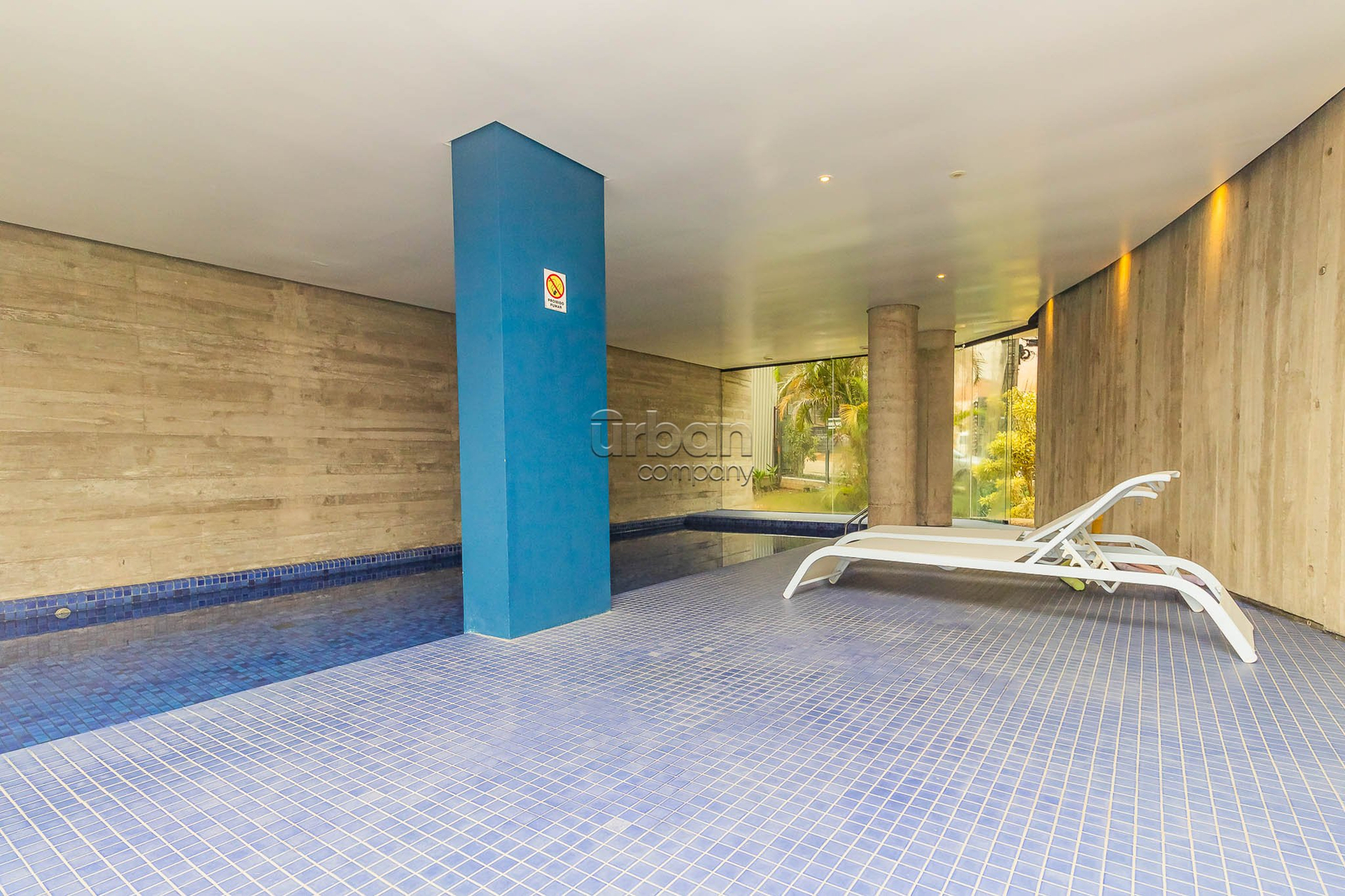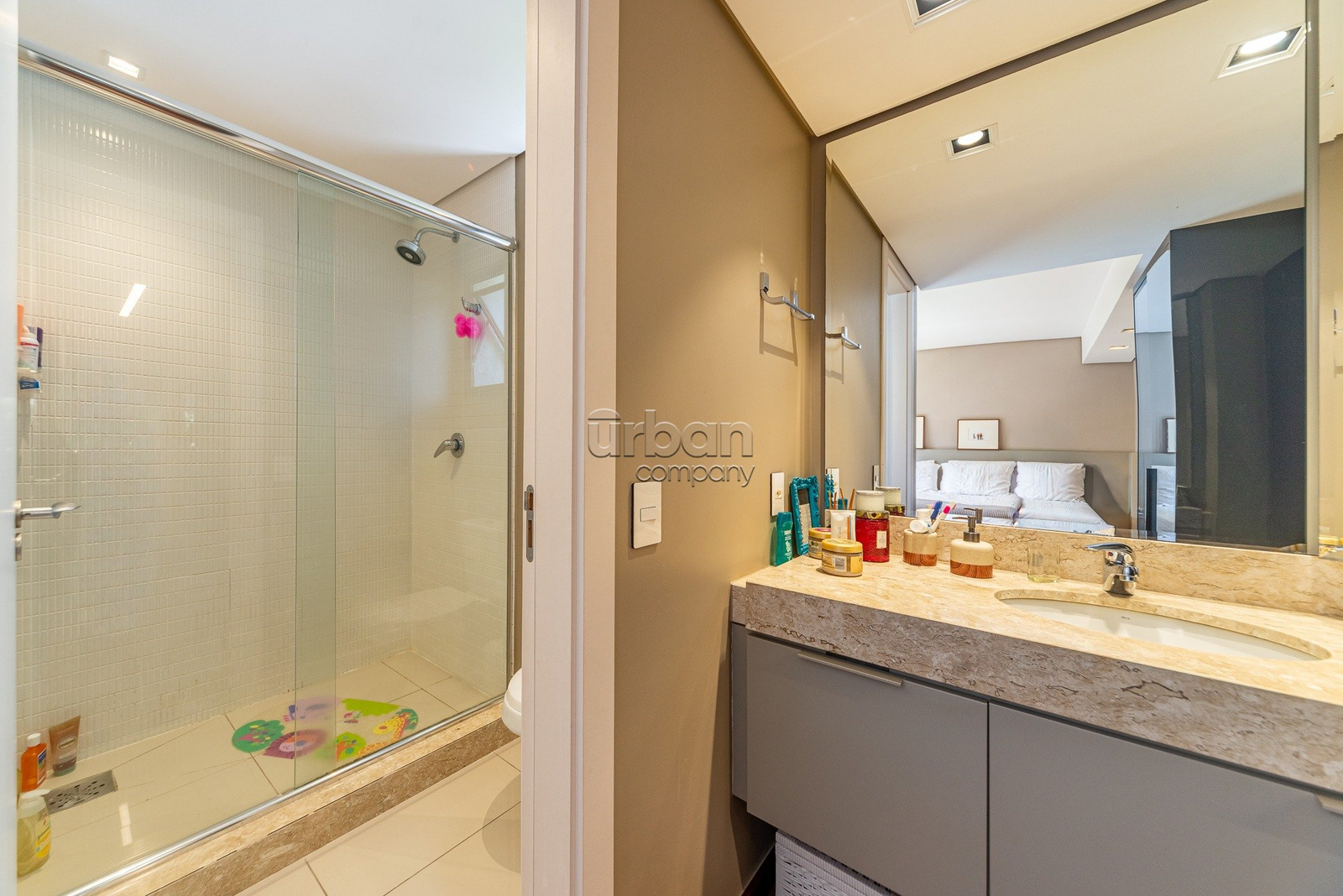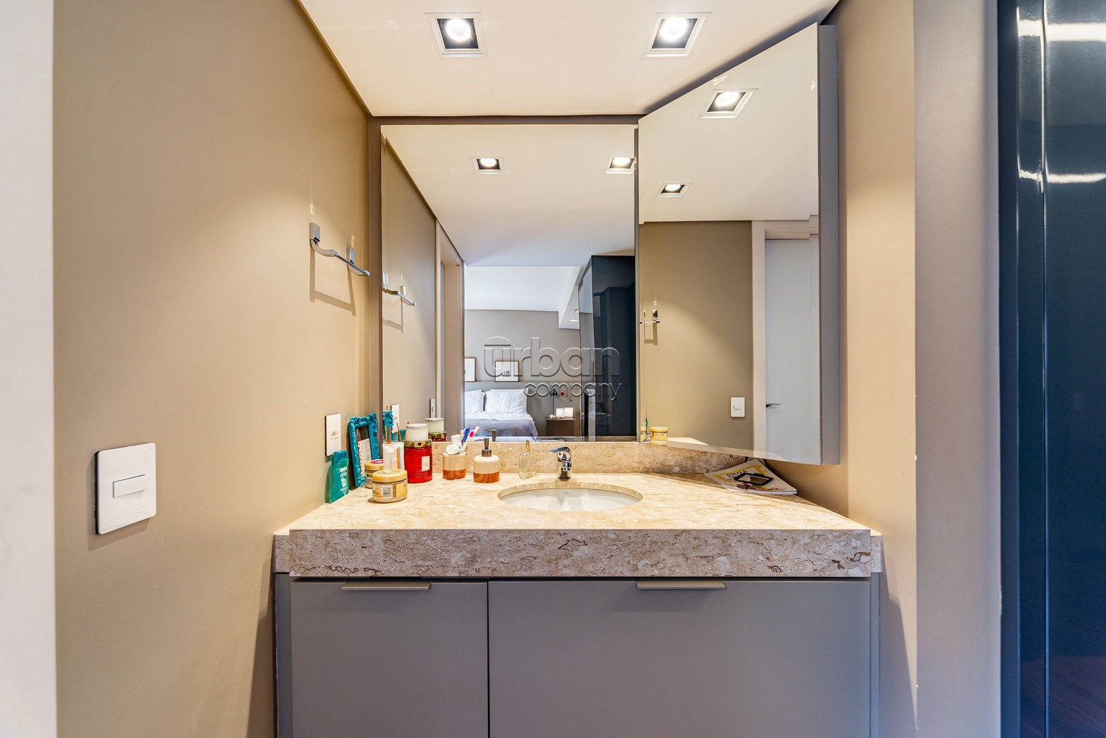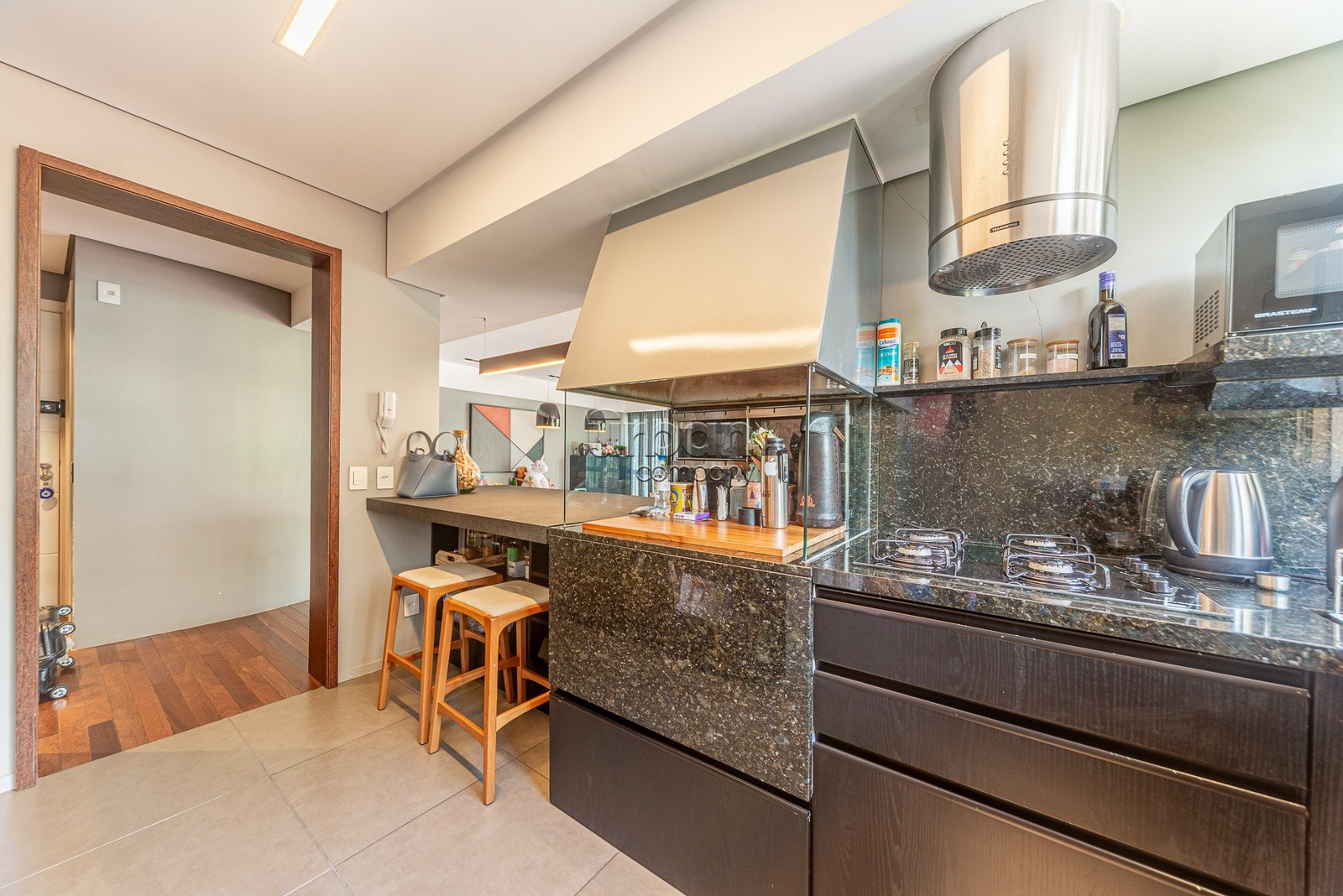 Condomínio de alto padrão construtivo com portaria física 24h, dois elevadores, salão de festas e piscina térmica. A área externa conta com espaço gourmet com churrasqueira, lareira e banheira de hidromassagem.