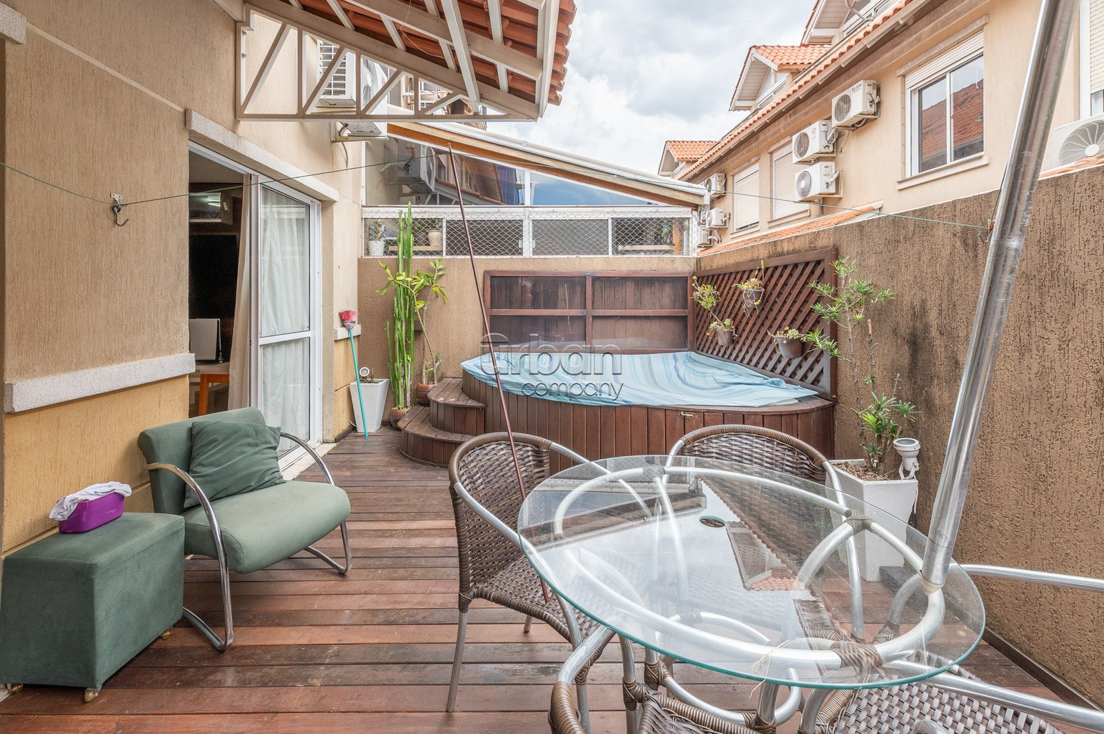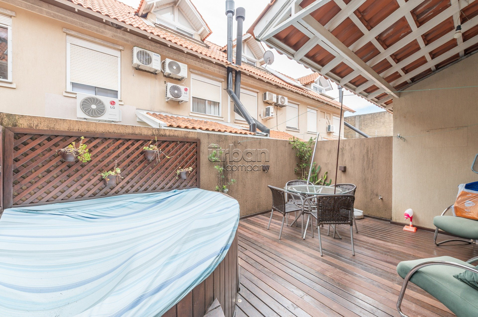 No andar térreo está o living com 2 ambientes, lavabo, cozinha, área de serviço e um aconchegante pátio com uma jacuzzi.
