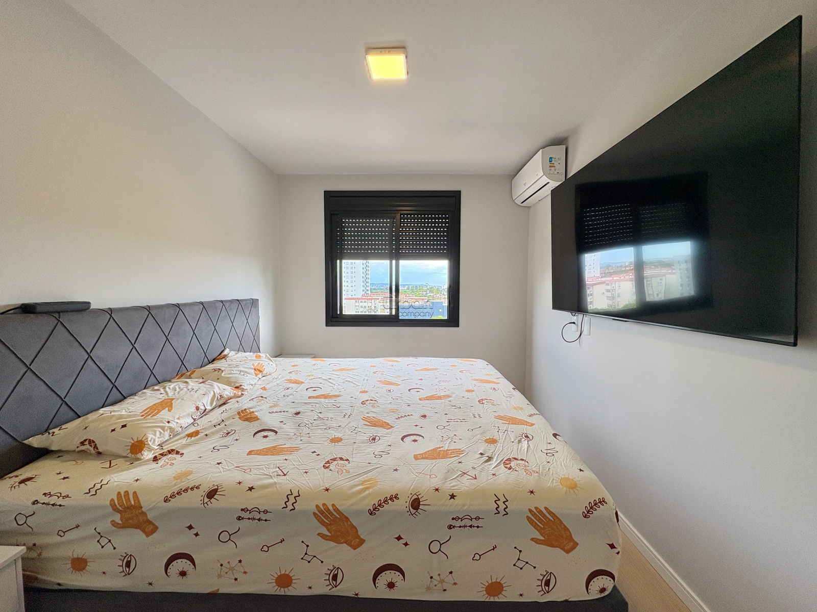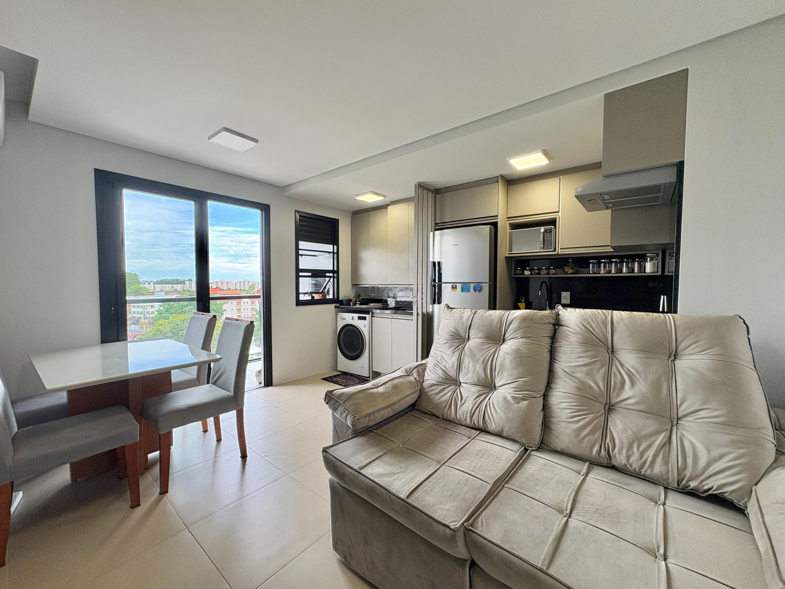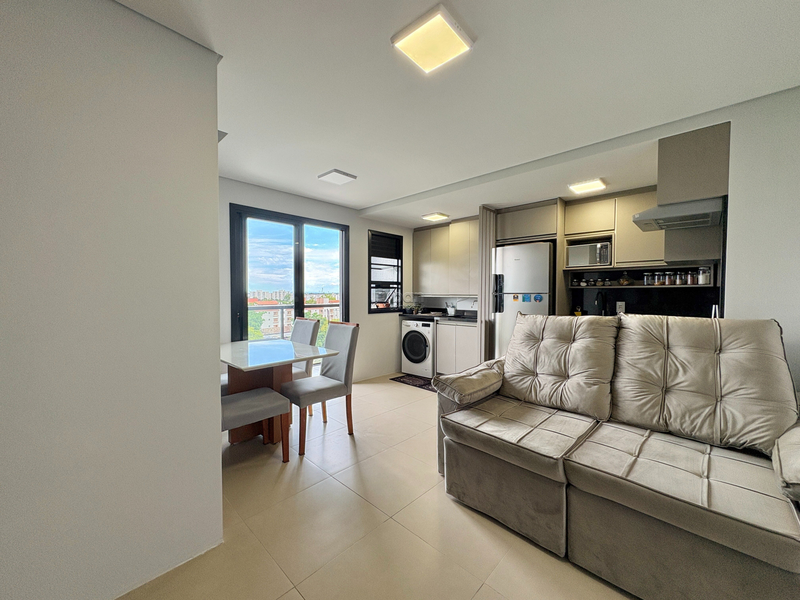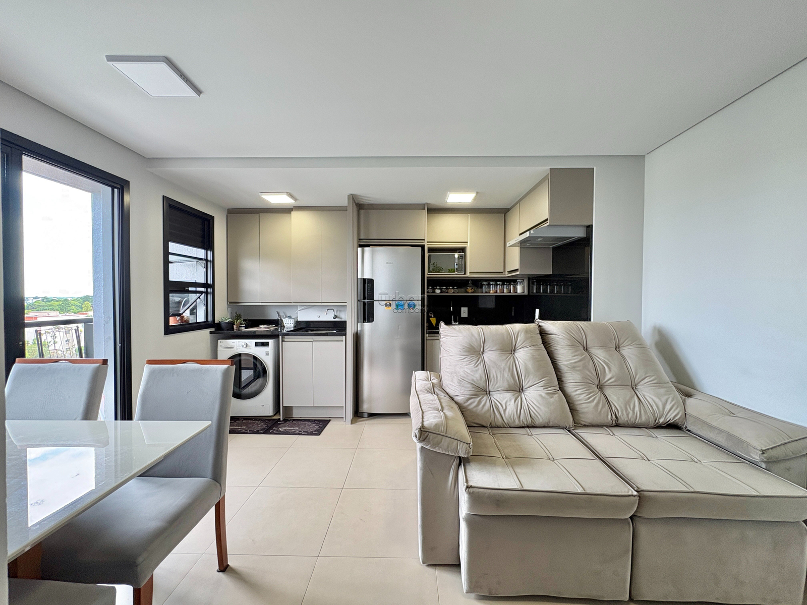 O imóvel conta com 2 dormitórios, sala de estar e jantar integradas, sacada com churrasqueira e vaga de garagem coberta, ampla e ao lado do elevador, com espaço para PCD, oferecendo conforto e praticidade no dia a dia.