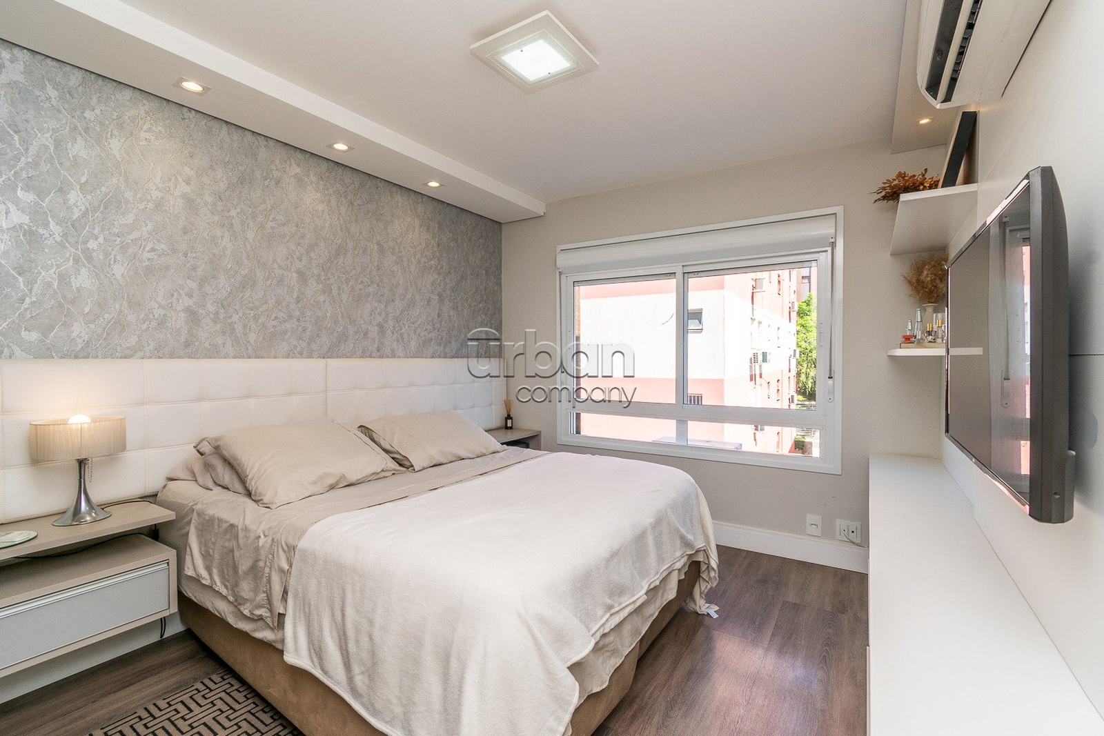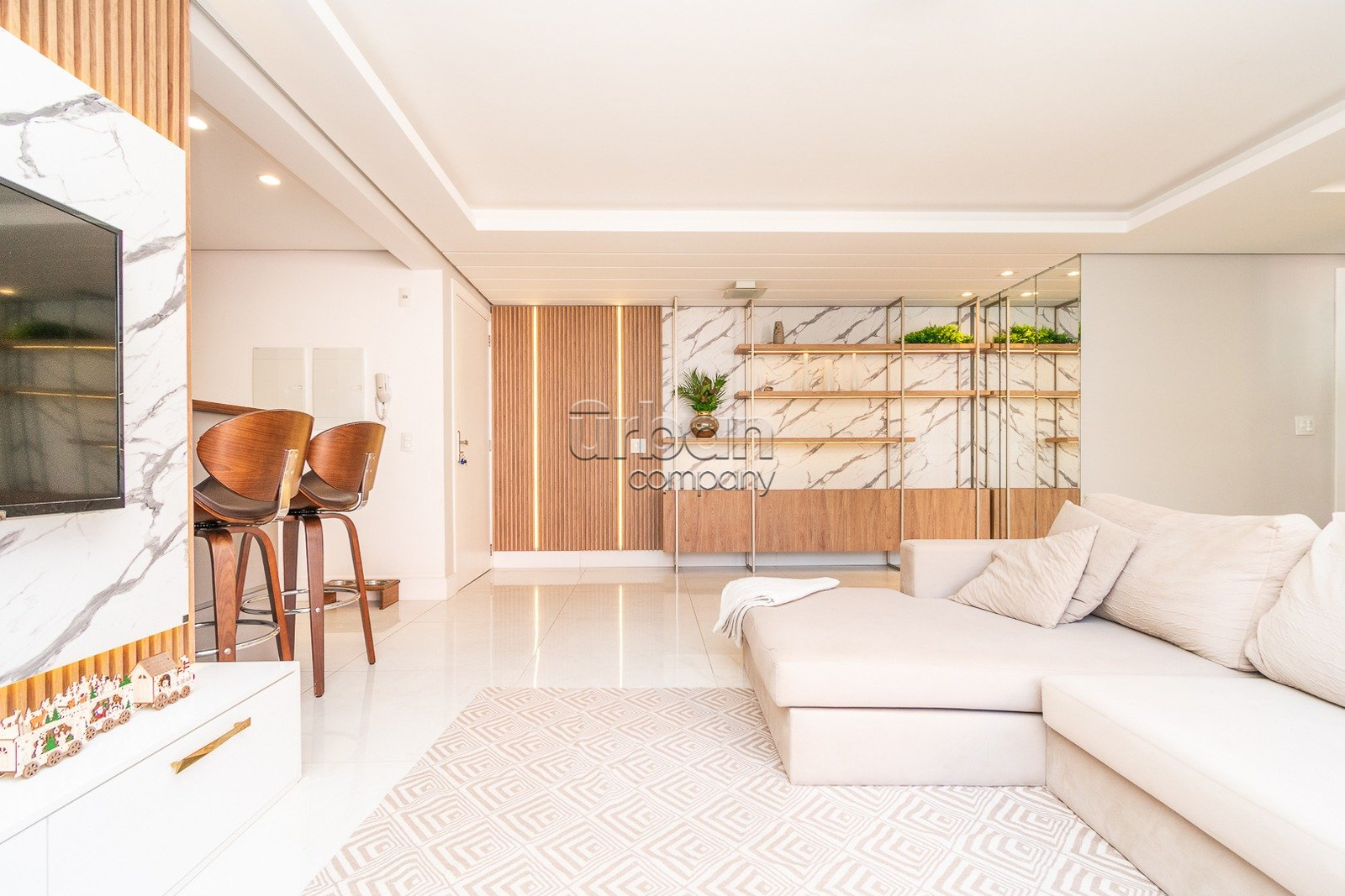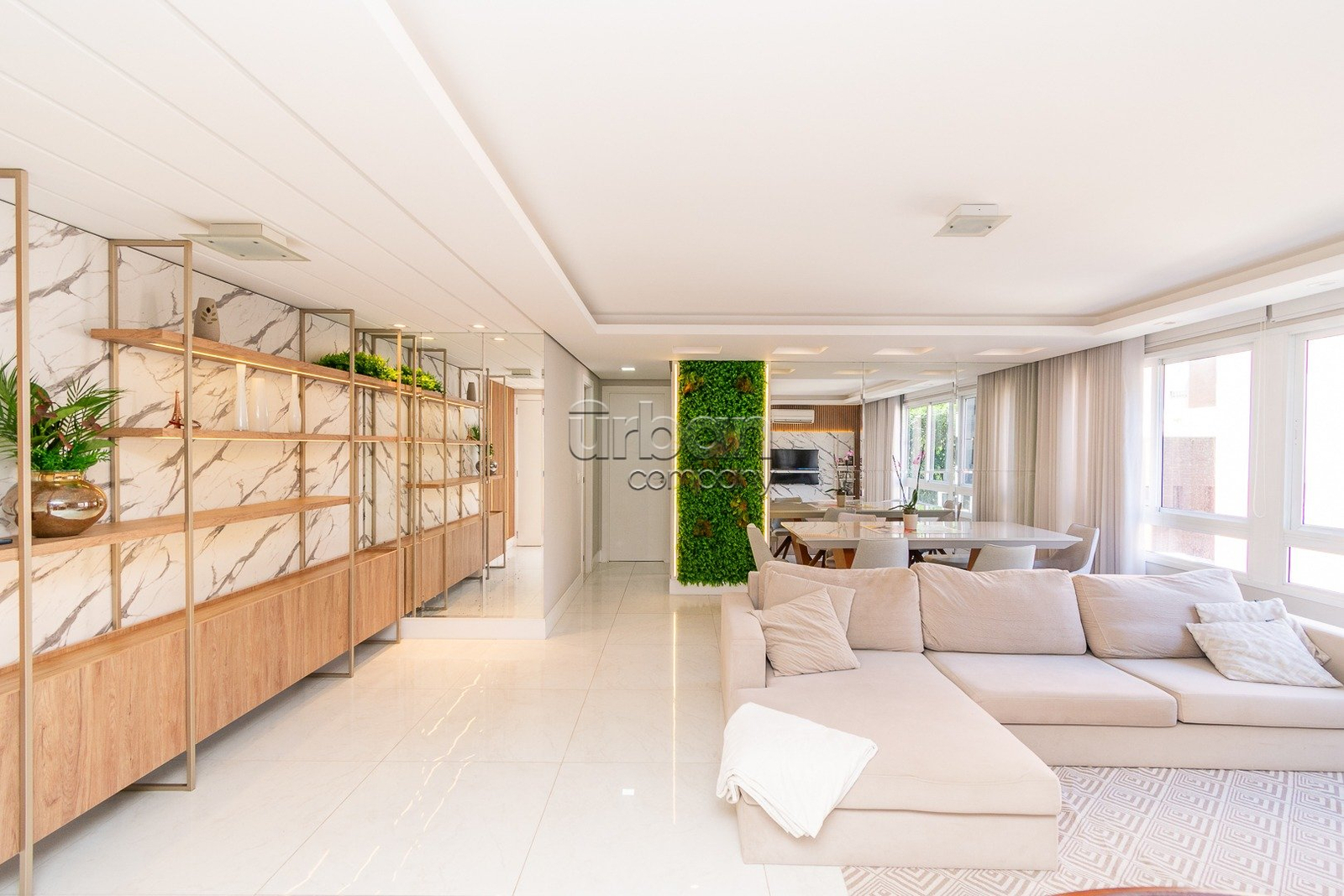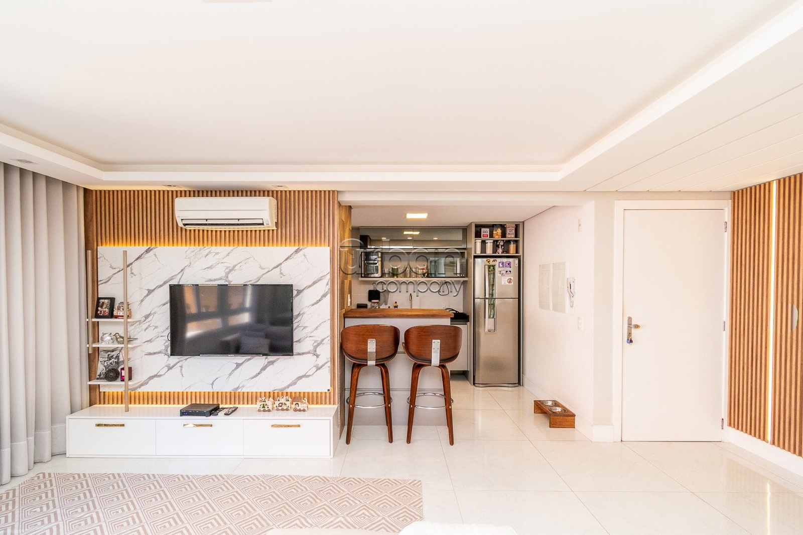 Apartamento semi-mobiliado com 90m² de área privativa, decorado por arquiteto. Planta originalmente de 3 dormitórios, foi inteligentemente adaptada para 2 dormitórios, ampliando o living e proporcionando uma área social mais integrada e confortável, com fácil reversão para a configuração.