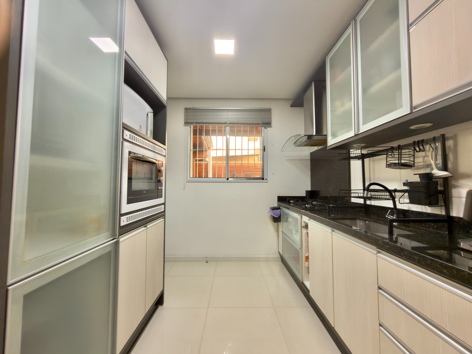 Possui pergolado com cobertura para as vagas de garagem e é entregue bem equipada, conforme as fotos, pronta para morar.