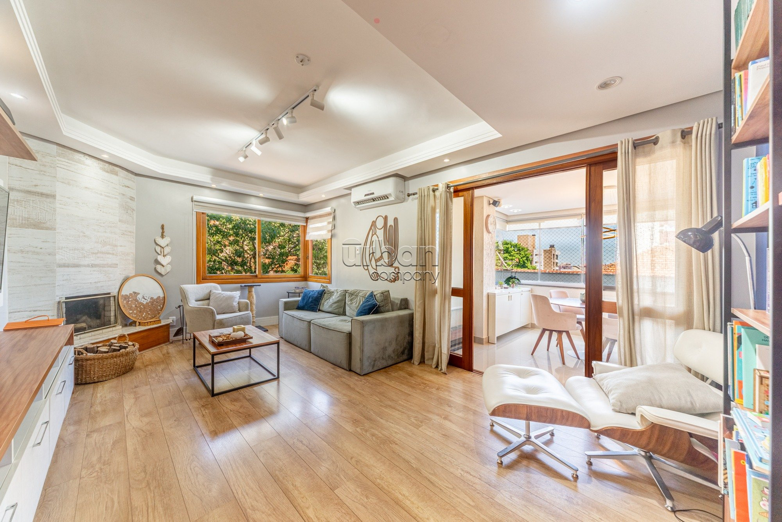 O imóvel conta com living para dois ambientes, lareira, sacada com churrasqueira, lavabo, cozinha montada e área de serviço separada; na área íntima, dispõe de 3 dormitórios, sendo 1 suíte, além de banheiro social.