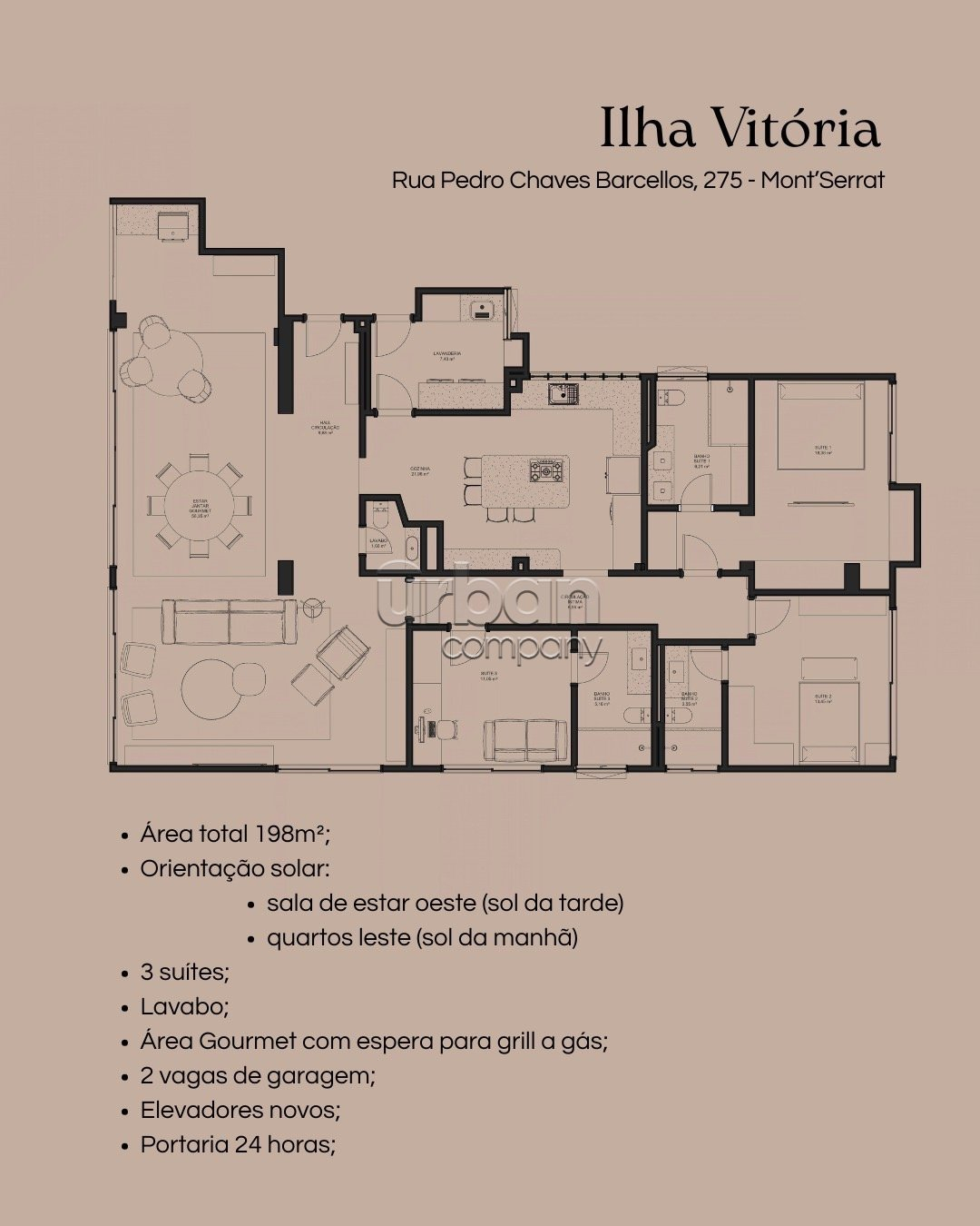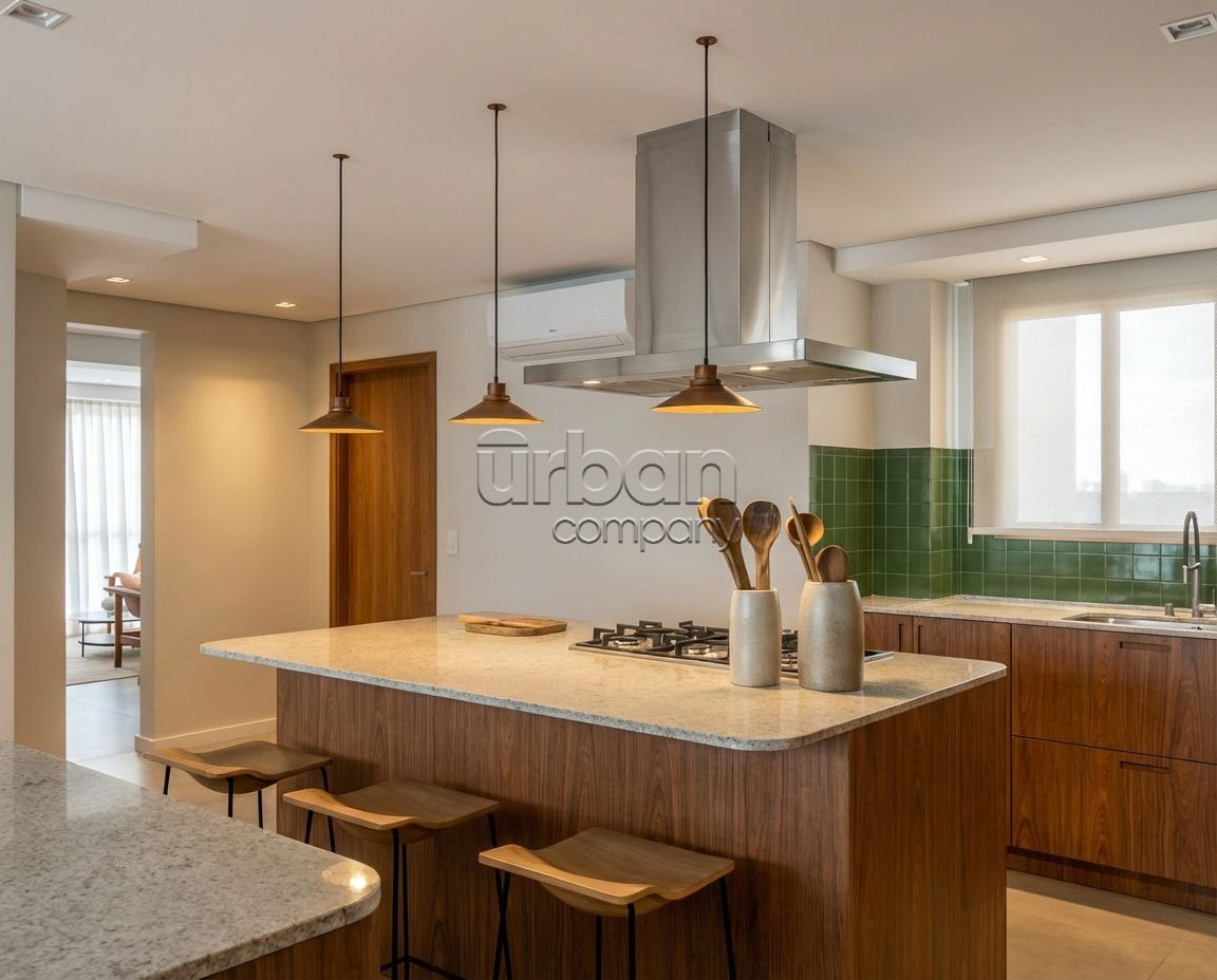 Apartamento com 198m2 de área privativa, distribuídos em 3 suítes, lavabo, área gourmet com espera para grill a gás, cozinha ampla e separada e lavanderia individualizada.