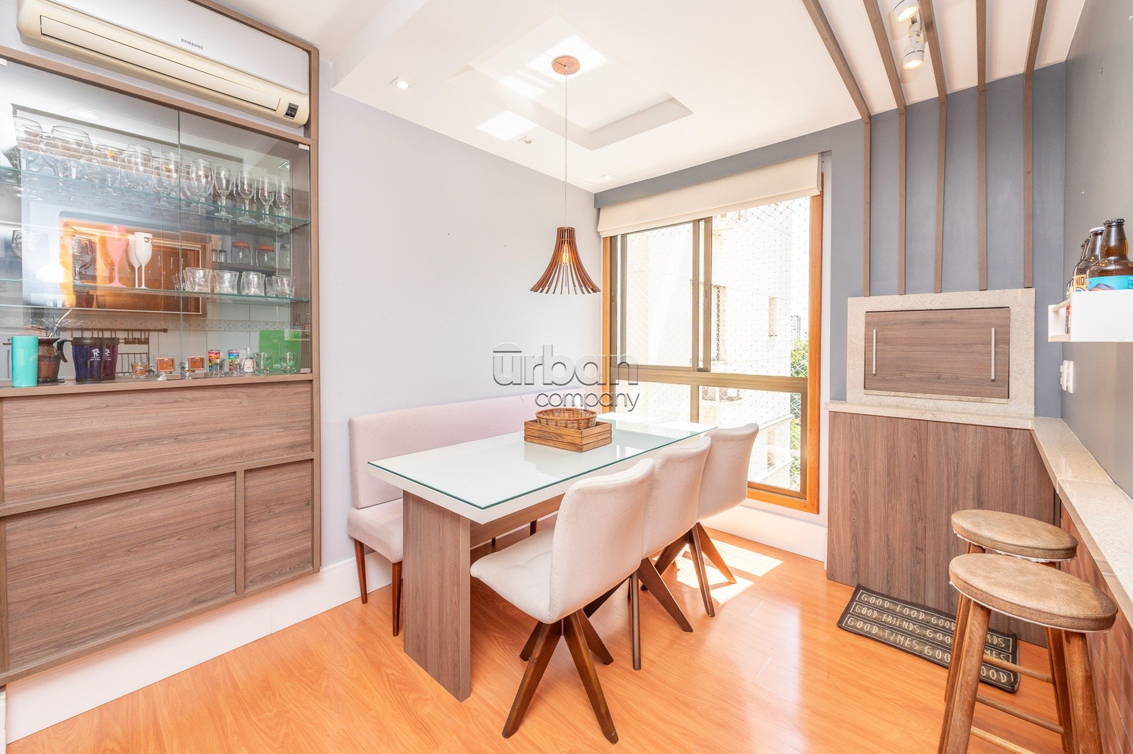 Com 77m² de área privativa, cozinha americana, sala de jantar integrada com sala de estar. Totalmente mobiliado, apartamento com churrasqueira, ótima posição solar. Recebe o sol da tarde manhã e da tarde.