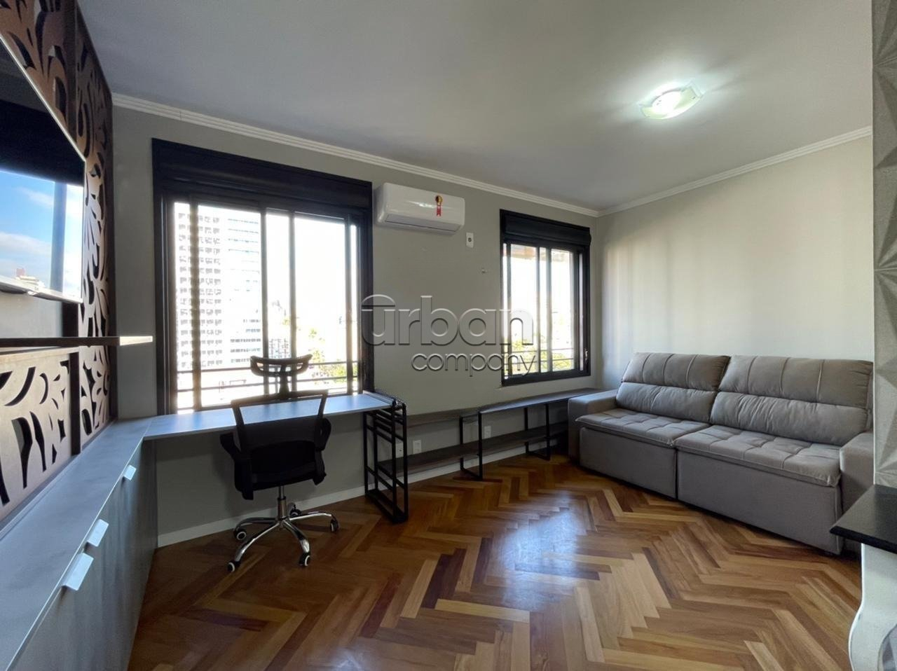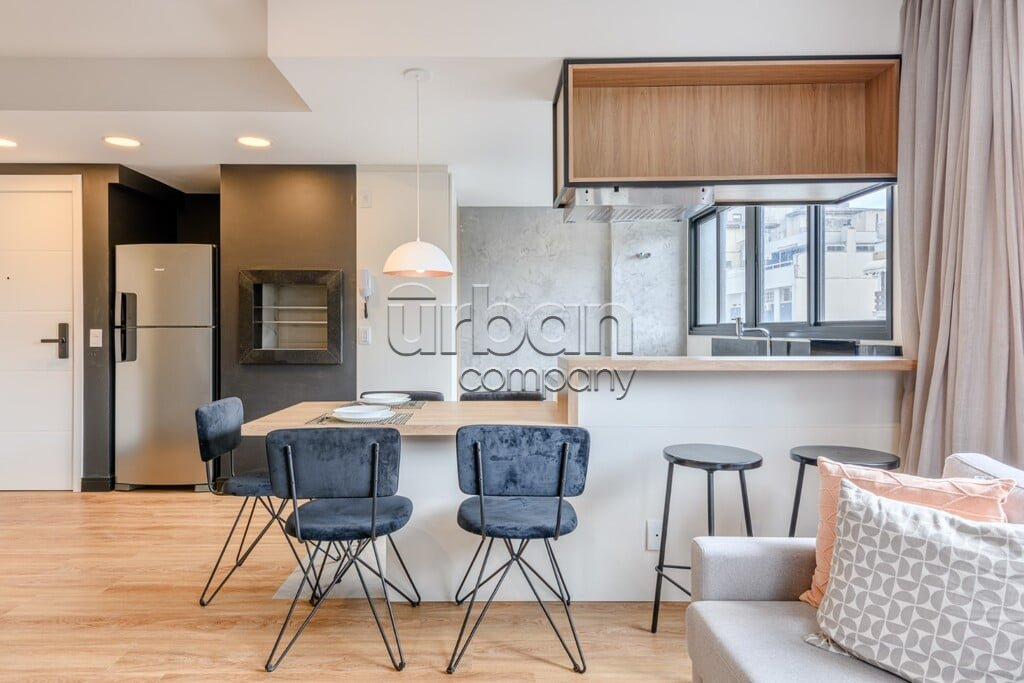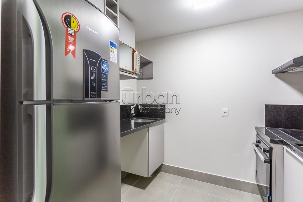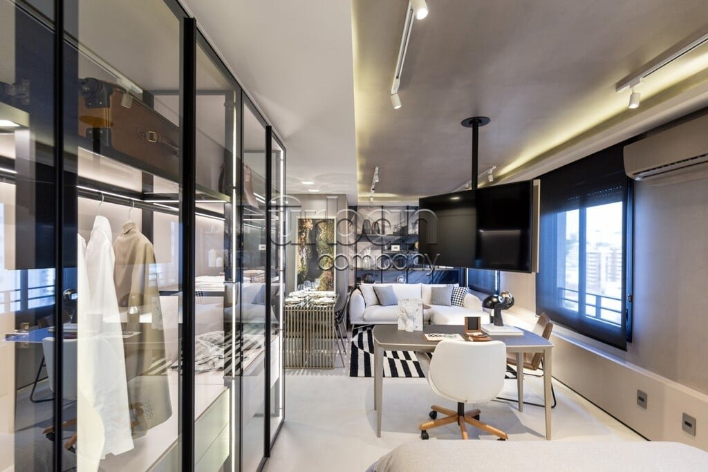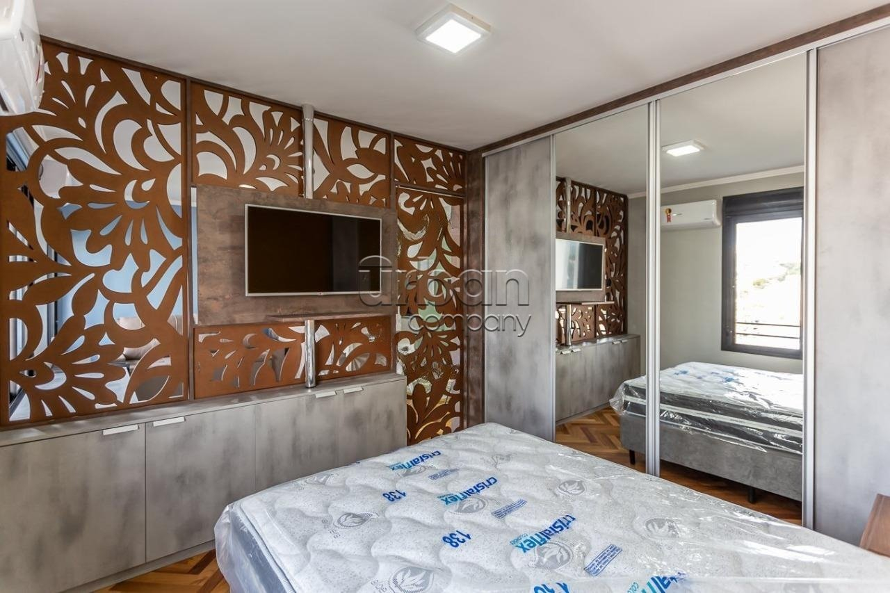 Apartamento studio; mobiliado; com 43m² de área privativa; andar alto; vista livre; no melhor do bairro de Porto Alegre.