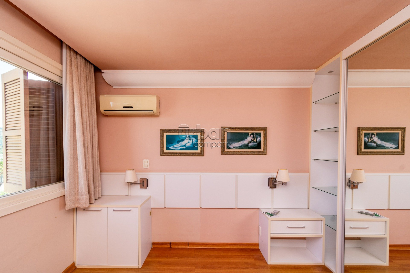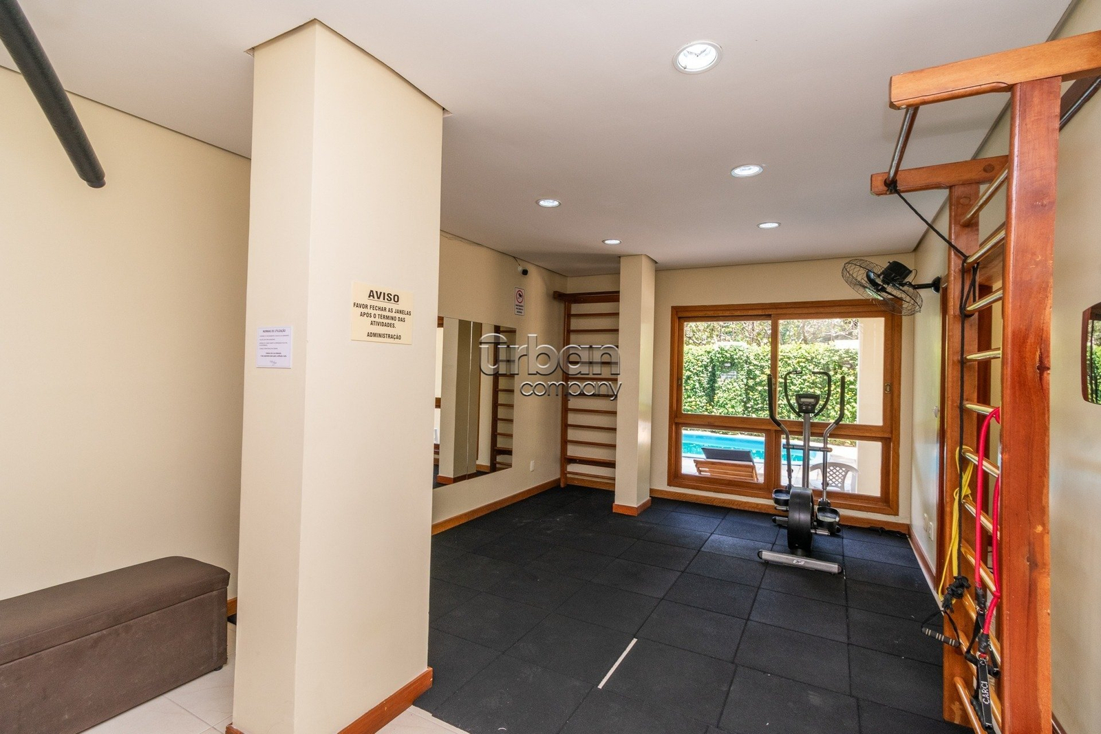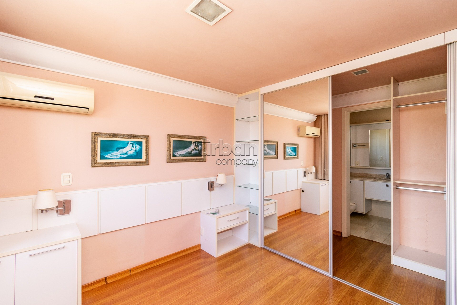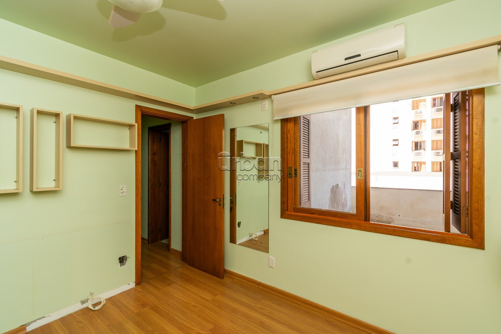 Apartamento semi-mobiliado com móveis planejados, 3 aparelhos de ar condicionado split e banheiros com ventilação natural.
