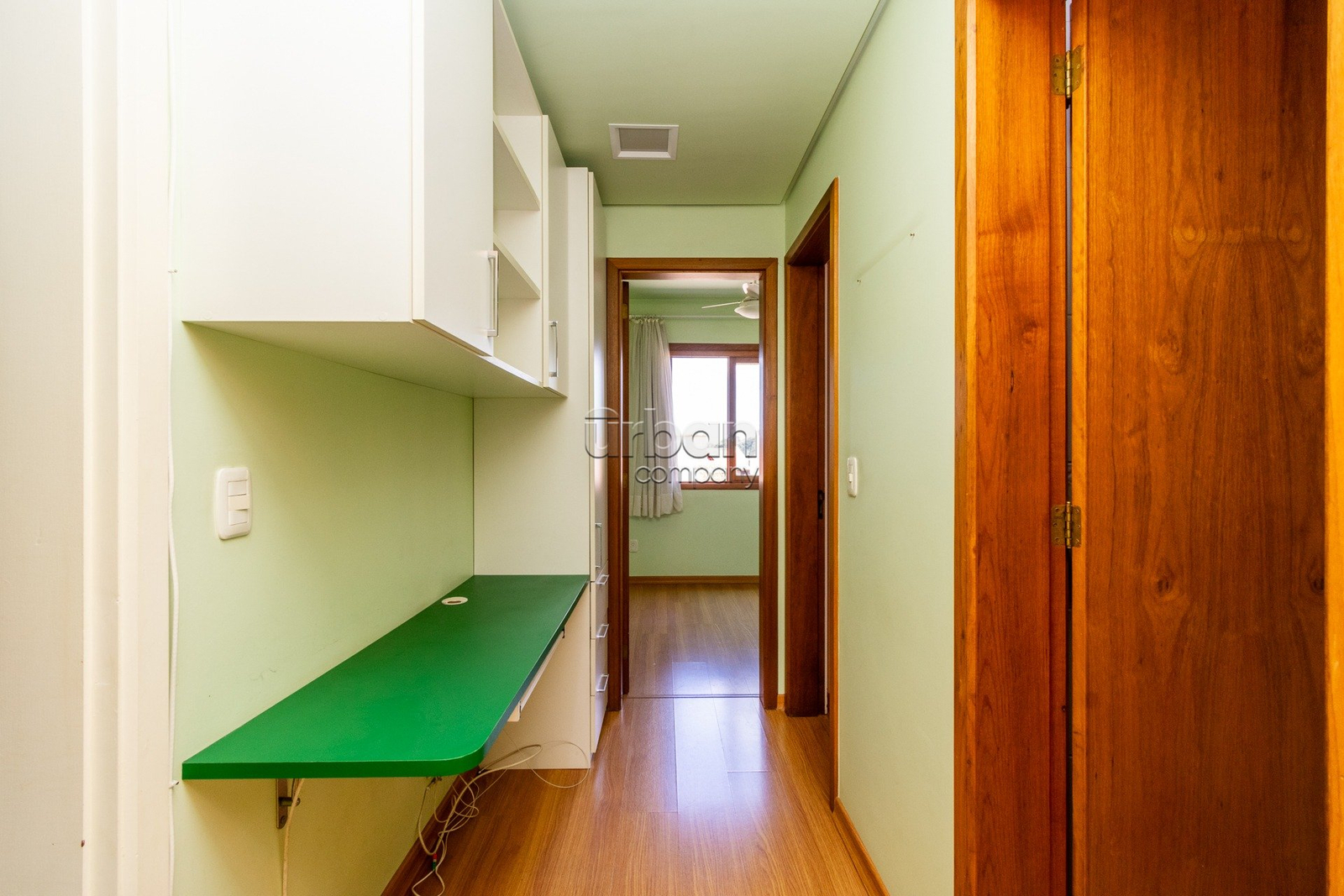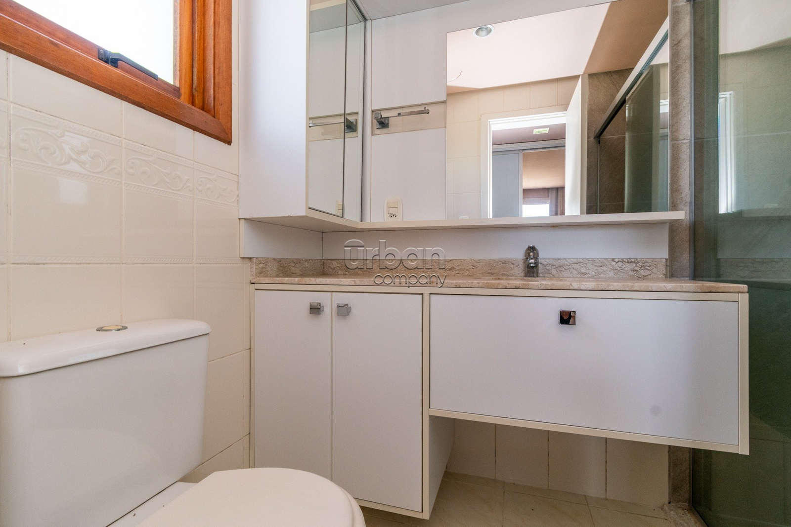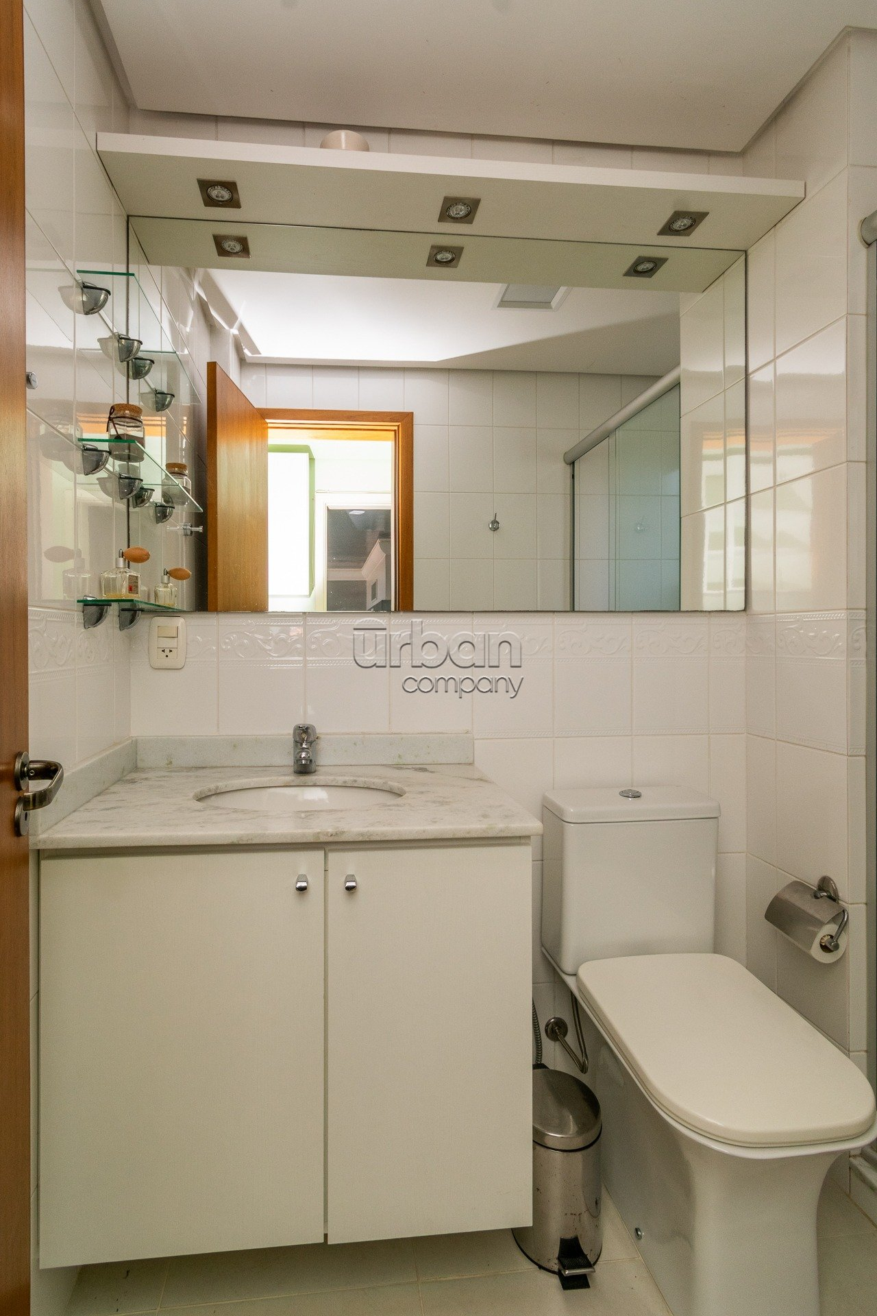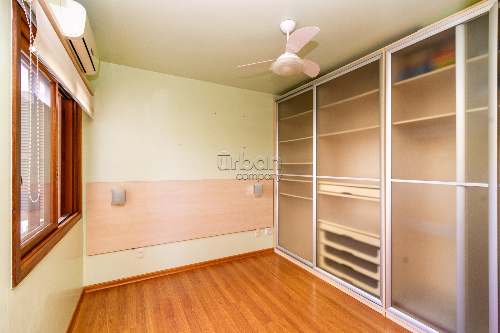 Apartamento semi-mobiliado com móveis planejados, 3 aparelhos de ar condicionado split e banheiros com ventilação natural.