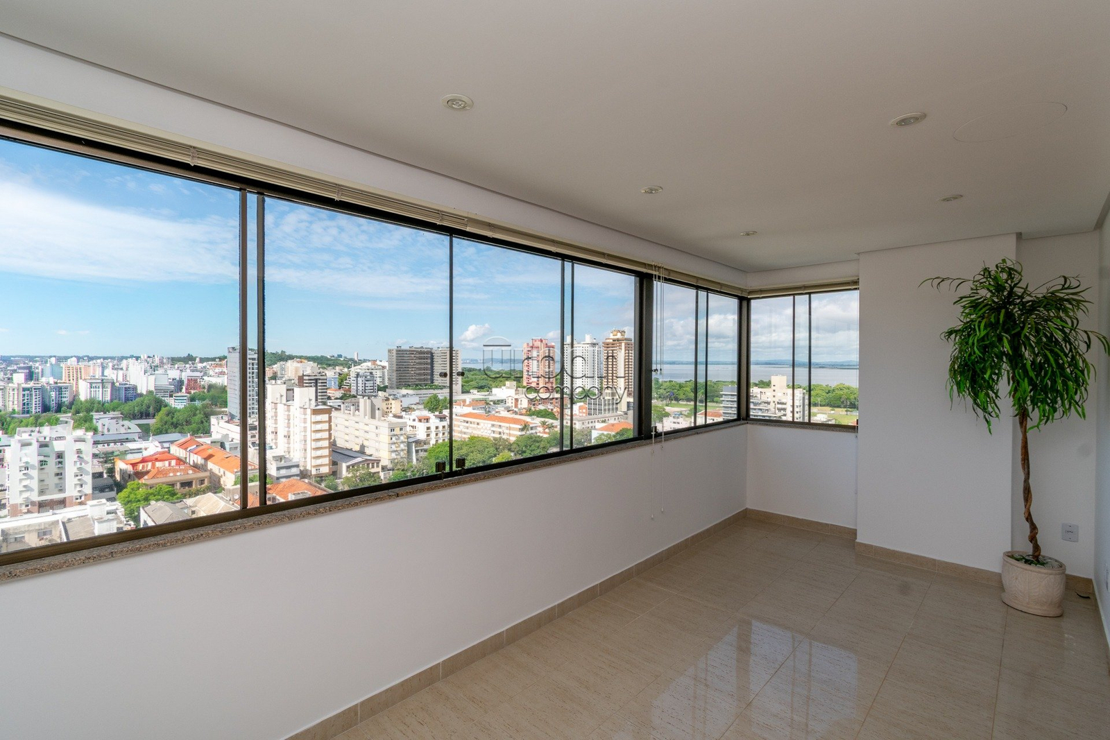 Originalmente com 3 dormitórios, o imóvel foi transformado em 2 dormitórios, proporcionando a ampliação do living e deixando o ambiente social ainda mais espaçoso, confortável e integrado. A sacada com churrasqueira é um dos grandes destaques, oferecendo vista livre e panorâmica para o Guaíba, perfeita para momentos de lazer e contemplação.