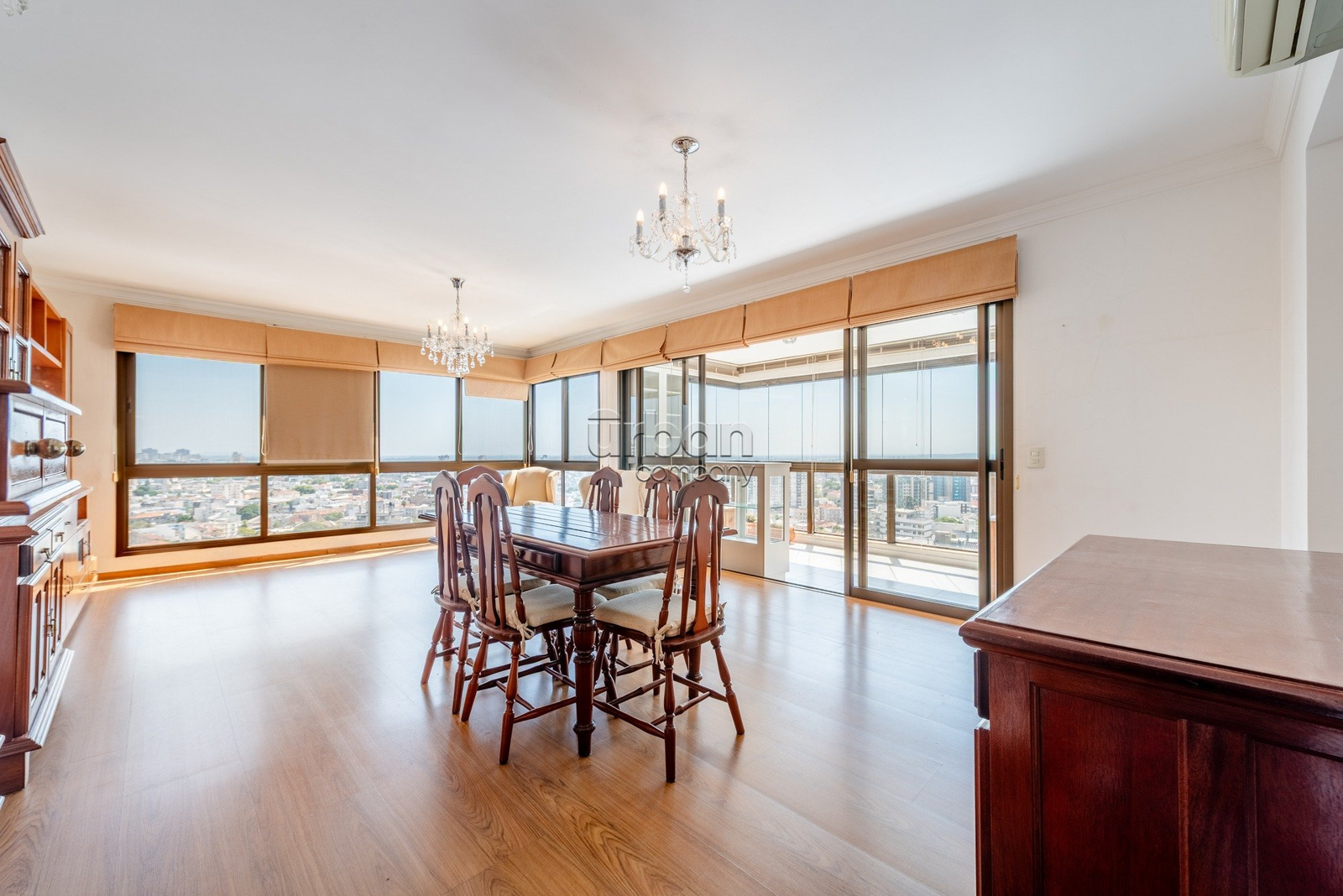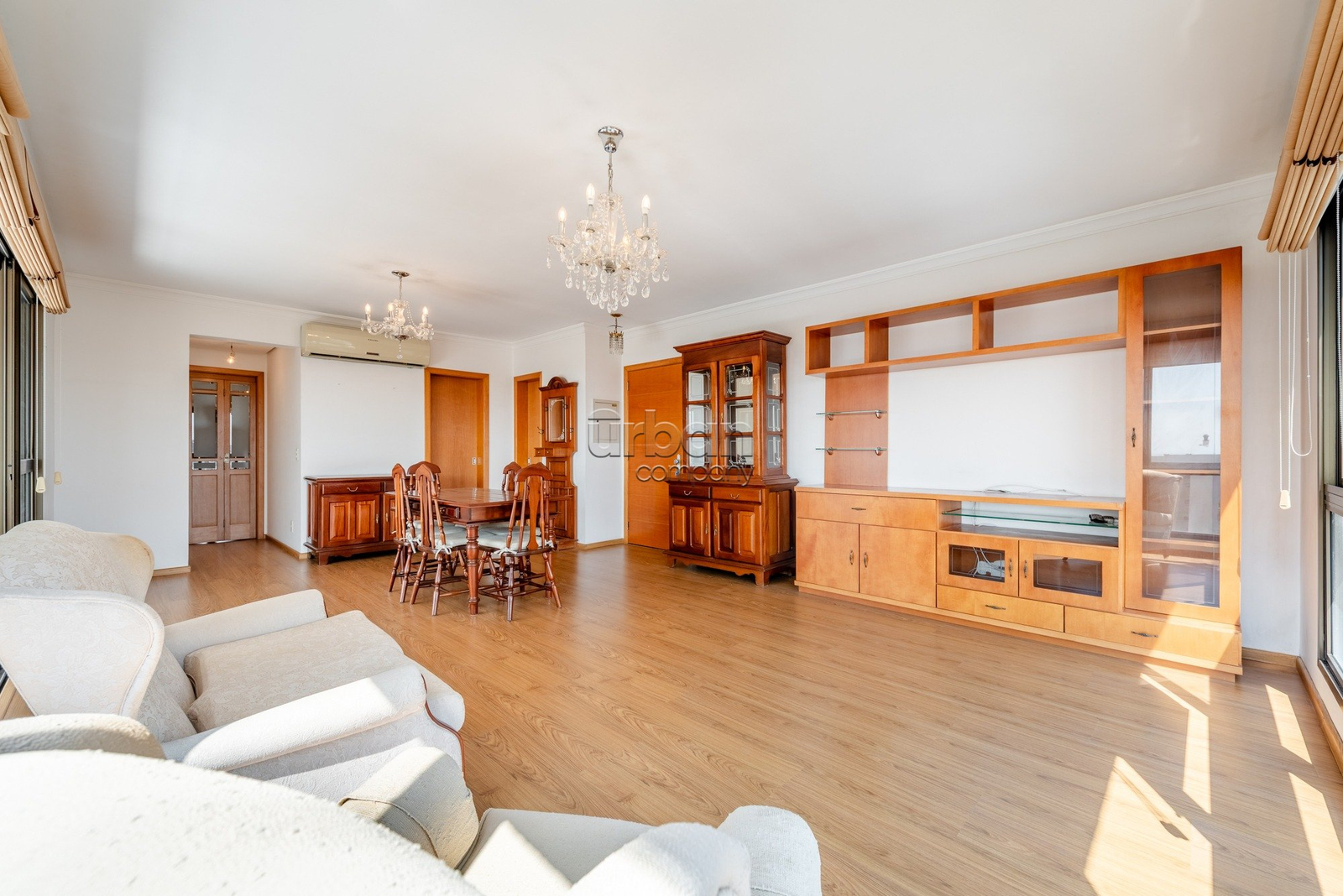 Localizado em andar alto, o apartamento proporciona uma vista definida e excelente incidência solar. Conta com 3 vagas de garagem cobertas.