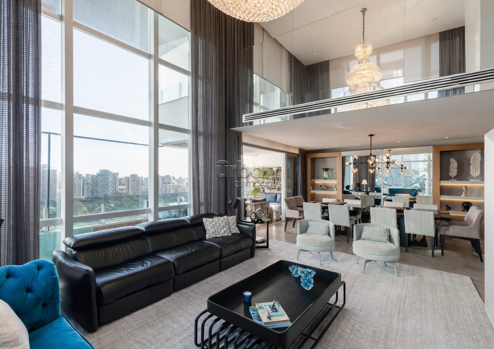 Apartamento com 227m² privativos, totalmente mobiliado e equipado, com projeto assinado e composição harmônica de ambientes. O living, generoso e bem distribuído, integra estar, jantar e convivência, com adega, lareira e lavabo, além de sacada aberta que amplia a luminosidade natural e valoriza a vista.